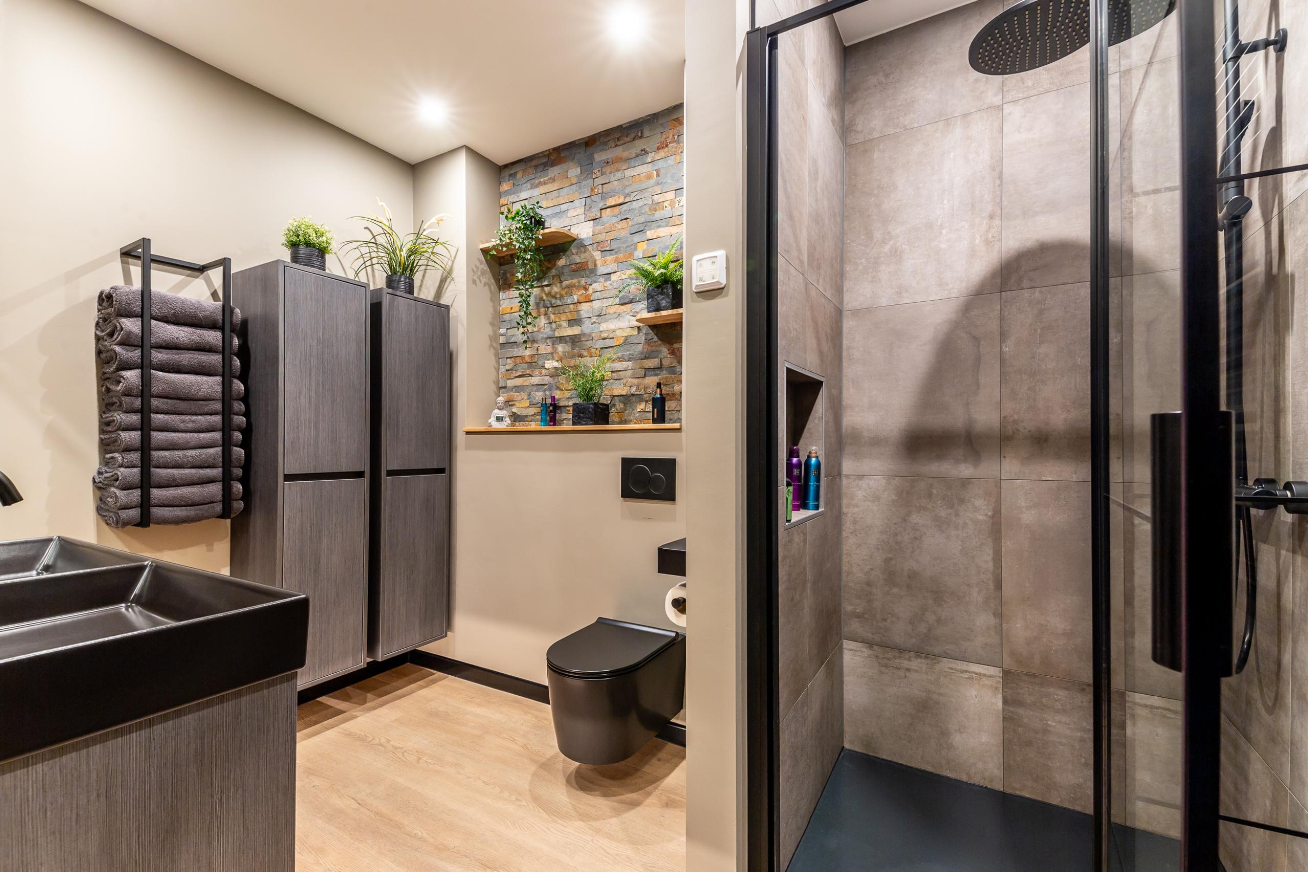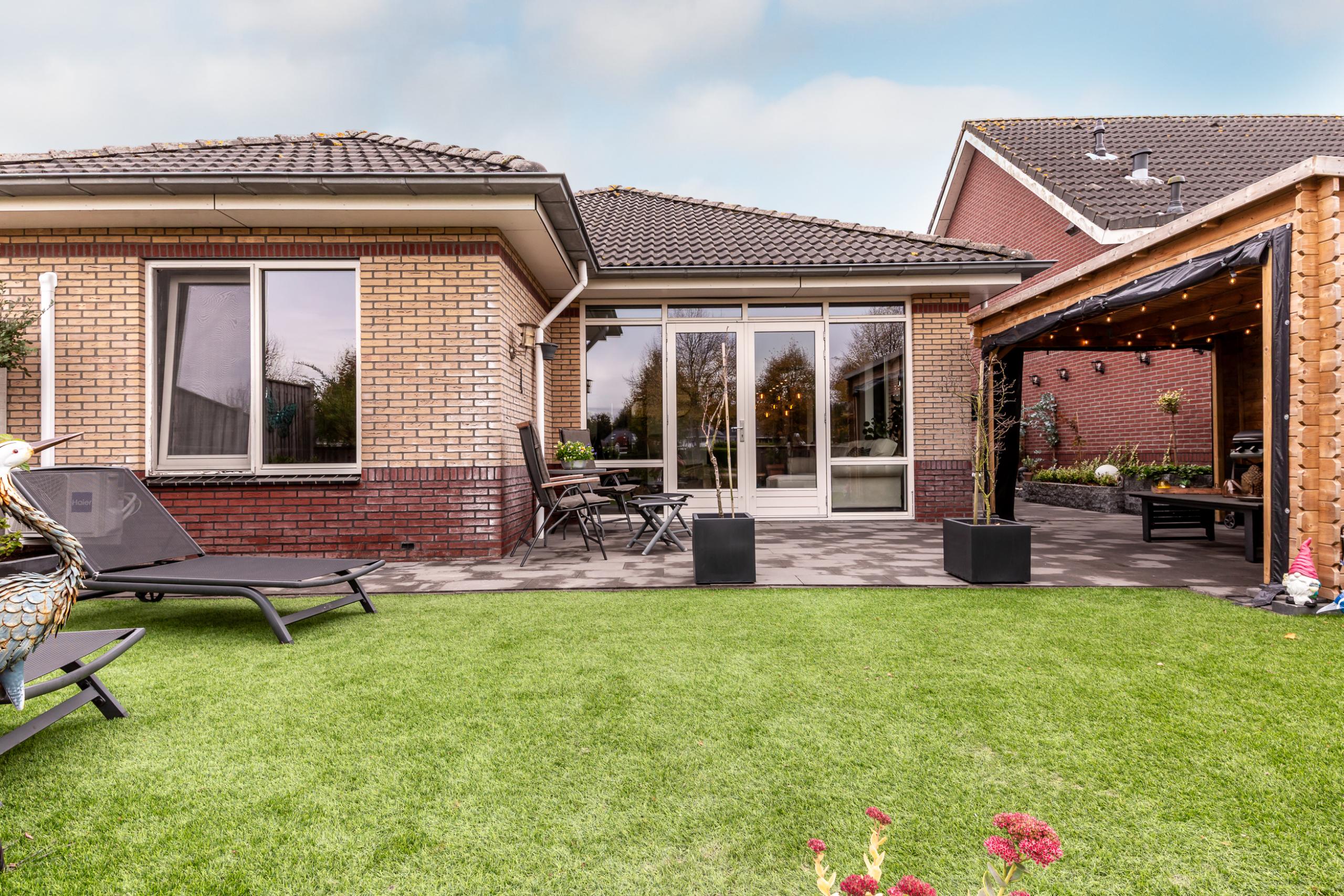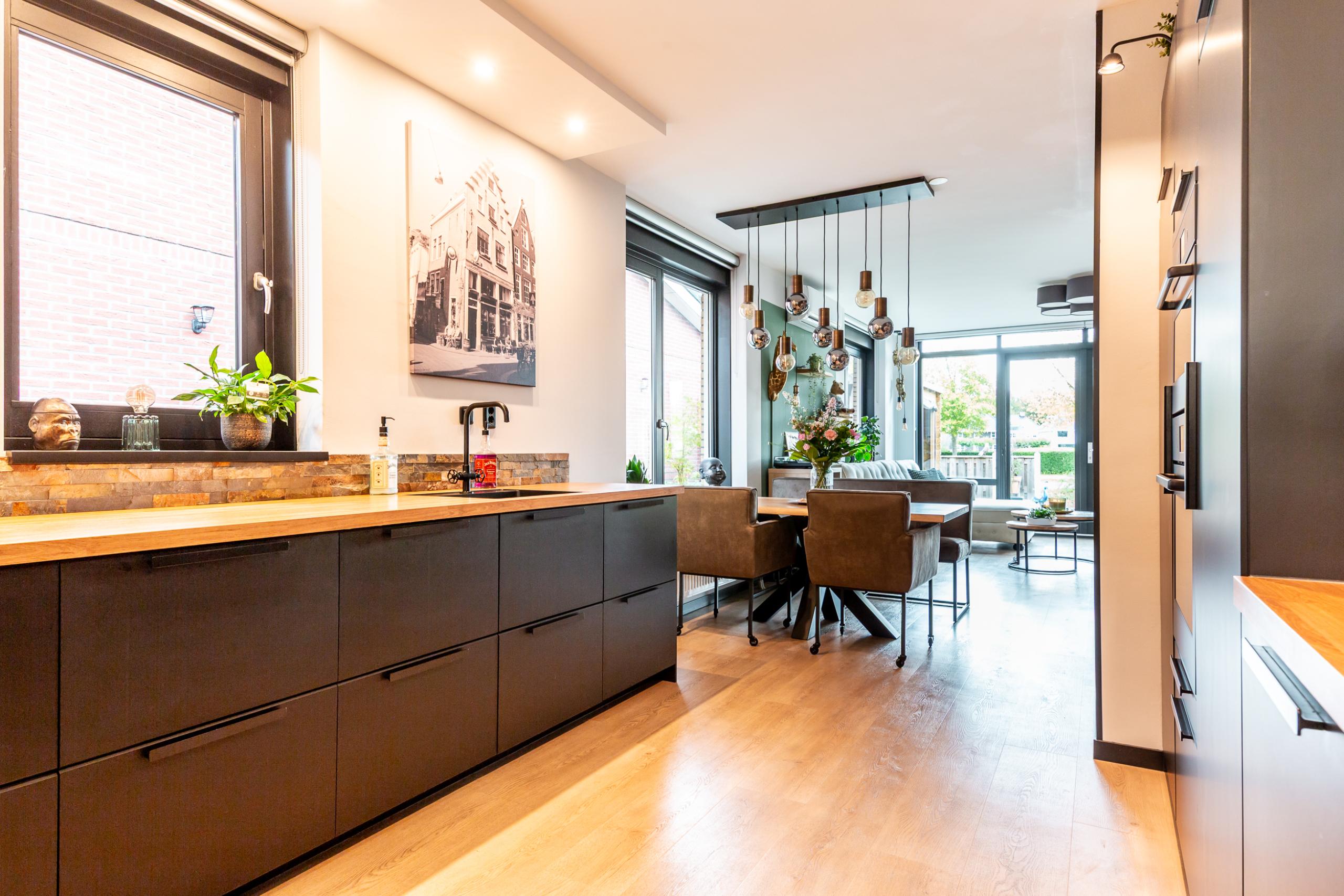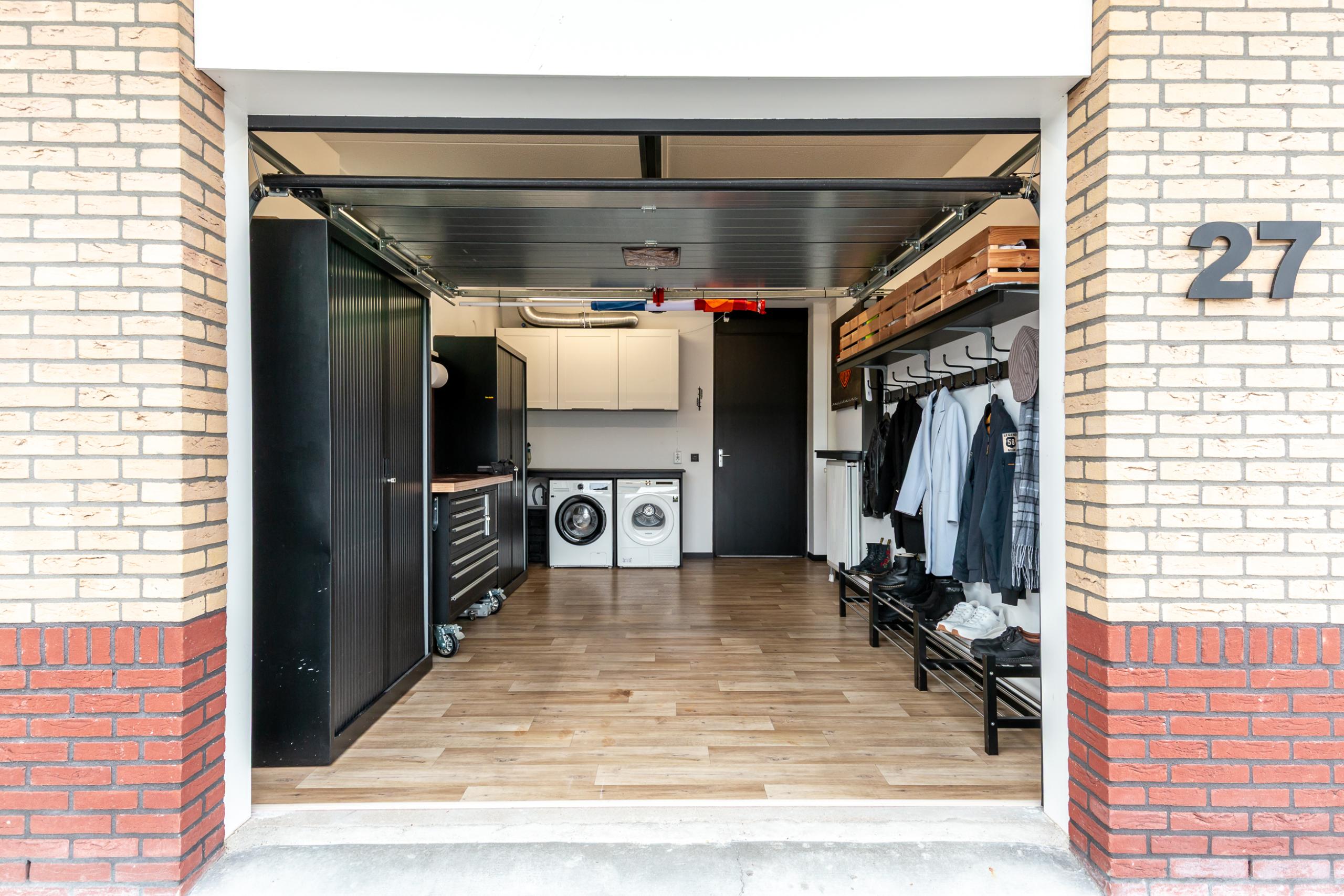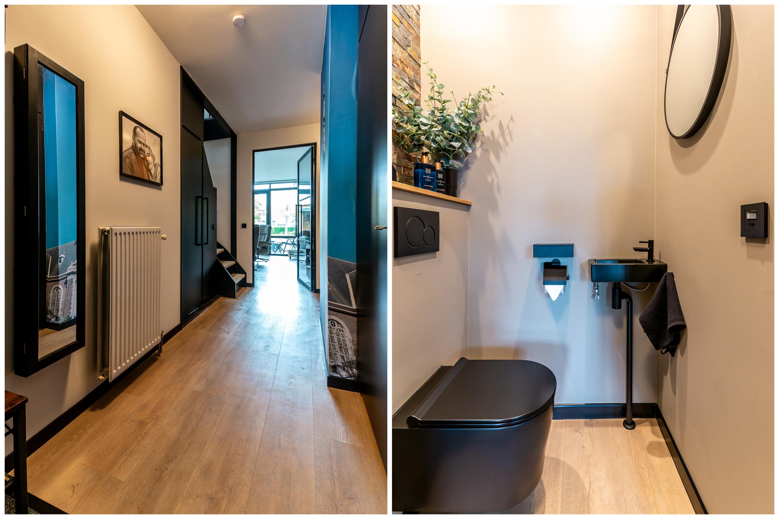 Begane grond: Overdekte entree; hal met meterkast, toegang tot het kantoor/slaapkamer, toilet met vrij hangend toilet en fonteintje en toegang tot het kantoor, de slaapkamer, badkamer en woonkamer; kantoor/slaapkamer aan de voorzijde van de woning van 11,6m² met vaste bergkast; deze ruimte is tevens te gebruiken als extra slaapkamer; heerlijk ruime slaapkamer van 16,9m² met airco en zicht op de tuin; luxe en in 2020 verbouwde badkamer met deels tegel- en deels stucwerk, een hangend toilet, inloopdouche, designradiator en een dubbele wastafel met spiegel en kastruimte; zeer lichte en tuingerichte woonkamer van 29,1m² met airco, openslaande deuren naar de tuin en aangrenzend de moderne en luxe keuken met inbouwapparatuur; de keuken uit 2020 in een rechte en hoekopstelling is uitgevoerd in modern zwart en voorzien van een inductieplaat, afzuigkap, oven, combi-magnetron, koelkast, vriezer, vaatwasser en kastruimte; via de keuken is de garage bereikbaar met daarin tevens de witgoedaansluitingen.