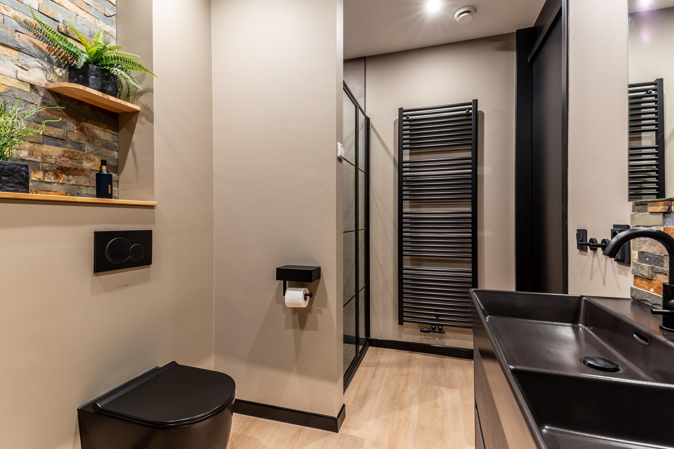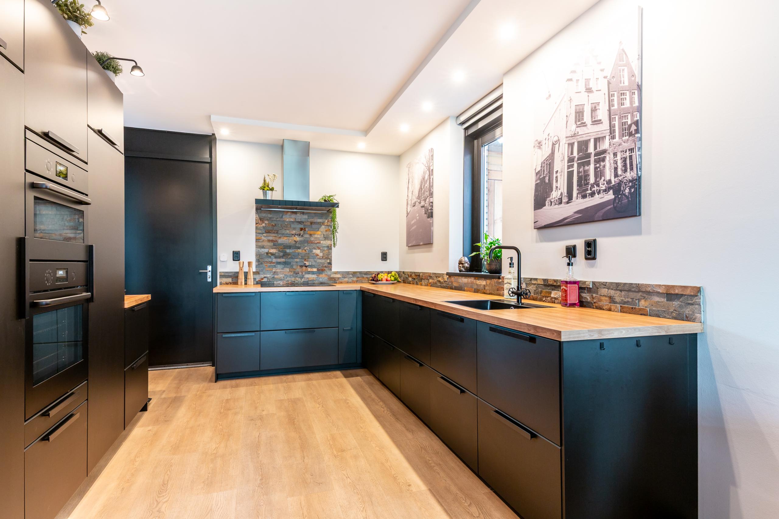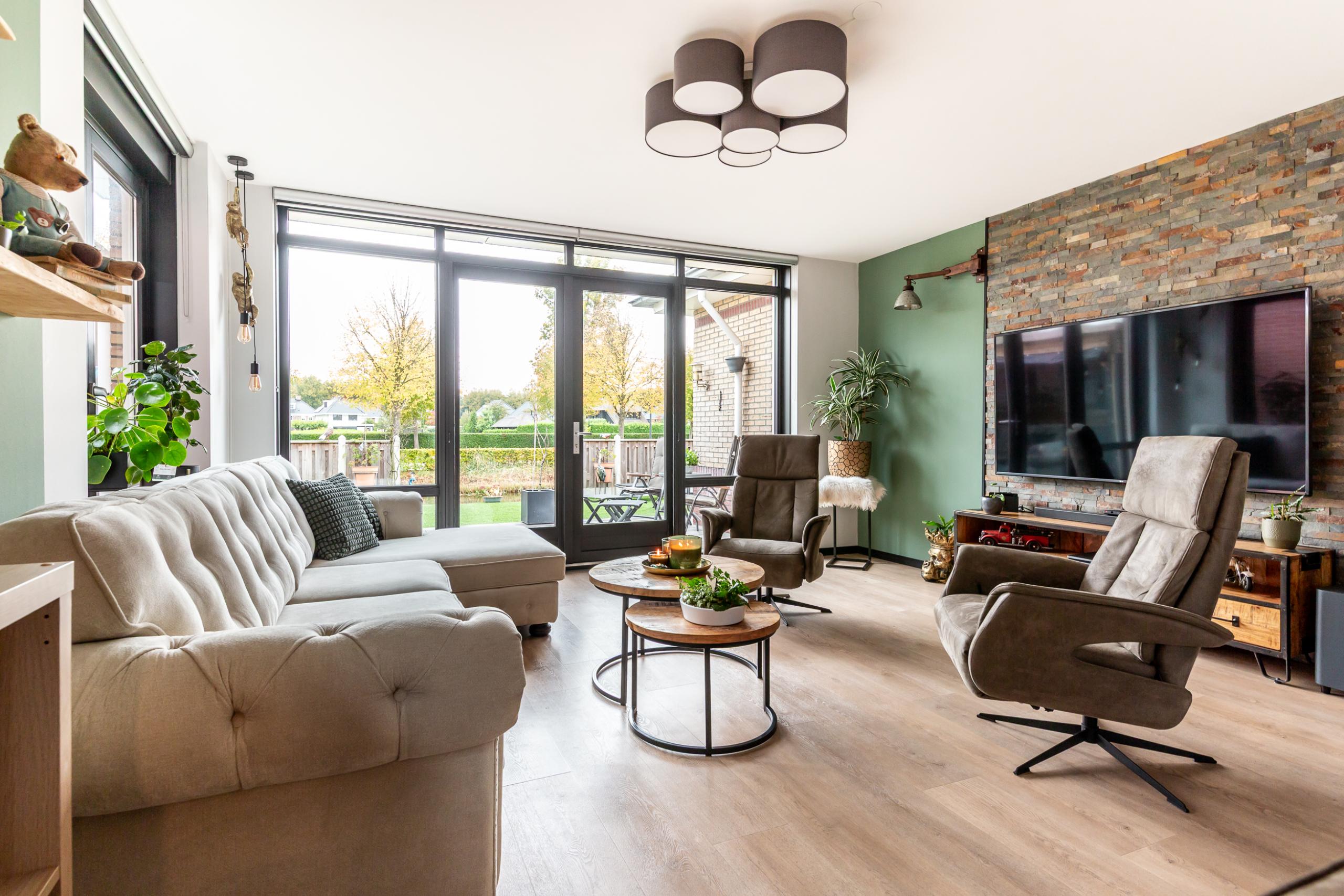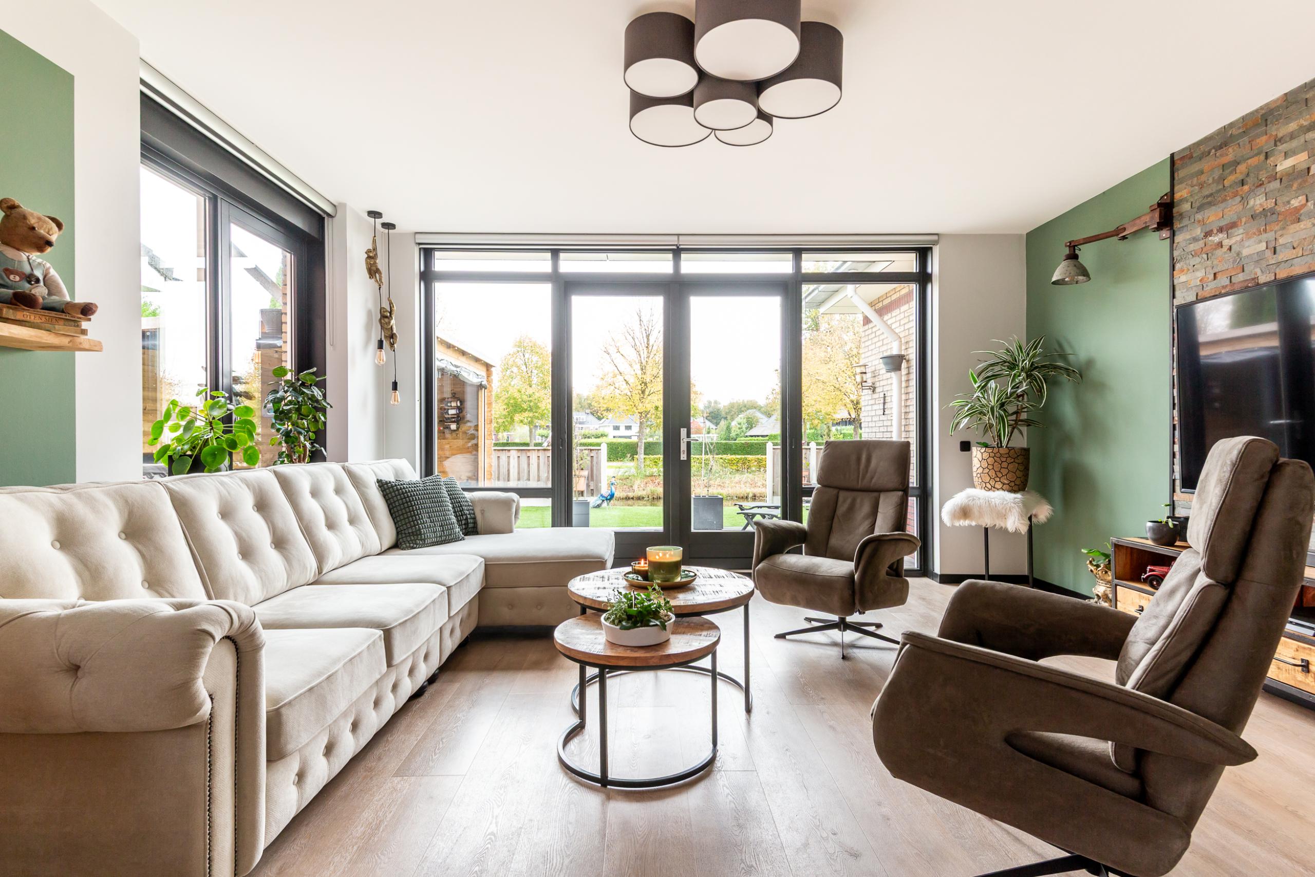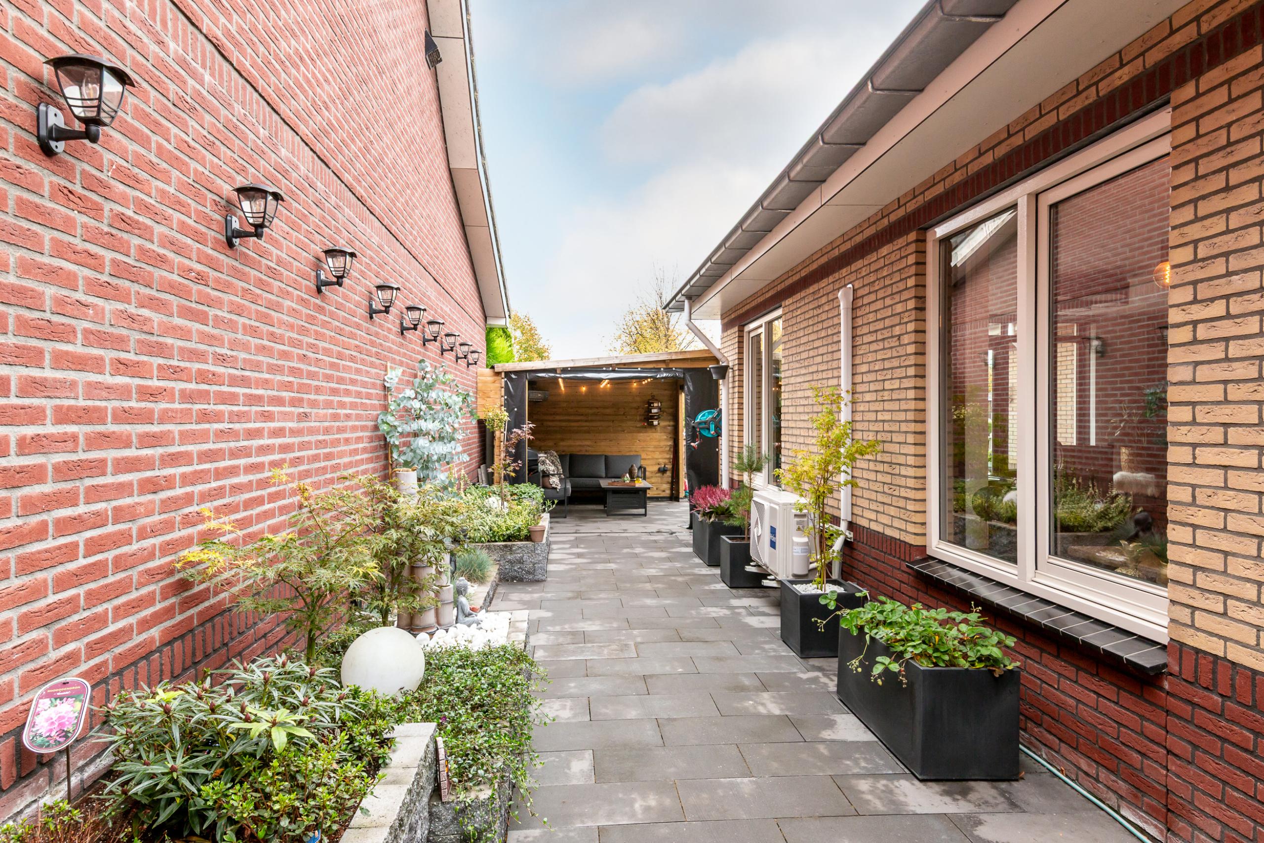 Begane grond: Overdekte entree; hal met meterkast, toegang tot het kantoor/slaapkamer, toilet met vrij hangend toilet en fonteintje en toegang tot het kantoor, de slaapkamer, badkamer en woonkamer; kantoor/slaapkamer aan de voorzijde van de woning van 11,6m² met vaste bergkast; deze ruimte is tevens te gebruiken als extra slaapkamer; heerlijk ruime slaapkamer van 16,9m² met airco en zicht op de tuin; luxe en in 2020 verbouwde badkamer met deels tegel- en deels stucwerk, een hangend toilet, inloopdouche, designradiator en een dubbele wastafel met spiegel en kastruimte; zeer lichte en tuingerichte woonkamer van 29,1m² met airco, openslaande deuren naar de tuin en aangrenzend de moderne en luxe keuken met inbouwapparatuur; de keuken uit 2020 in een rechte en hoekopstelling is uitgevoerd in modern zwart en voorzien van een inductieplaat, afzuigkap, oven, combi-magnetron, koelkast, vriezer, vaatwasser en kastruimte; via de keuken is de garage bereikbaar met daarin tevens de witgoedaansluitingen.