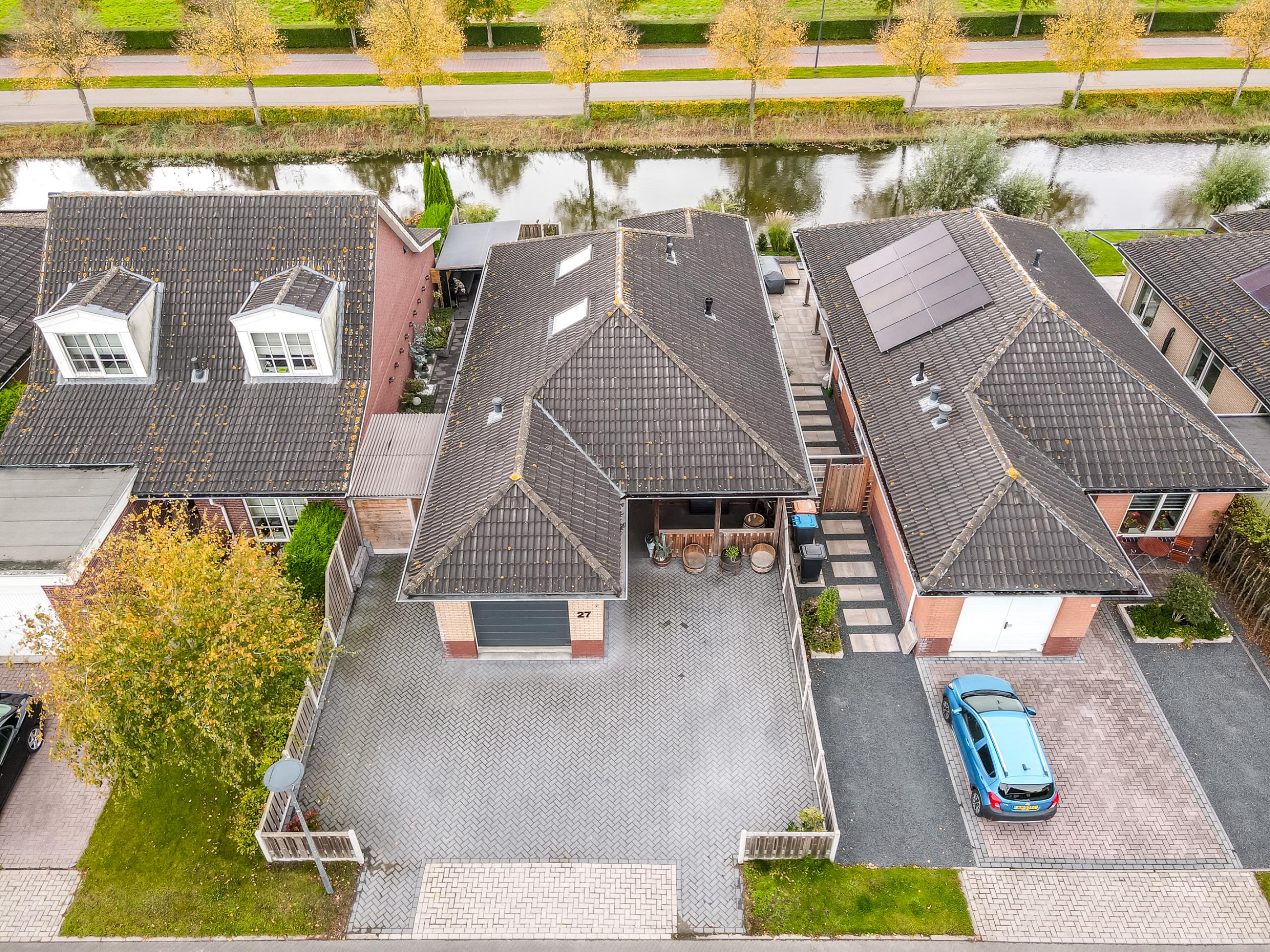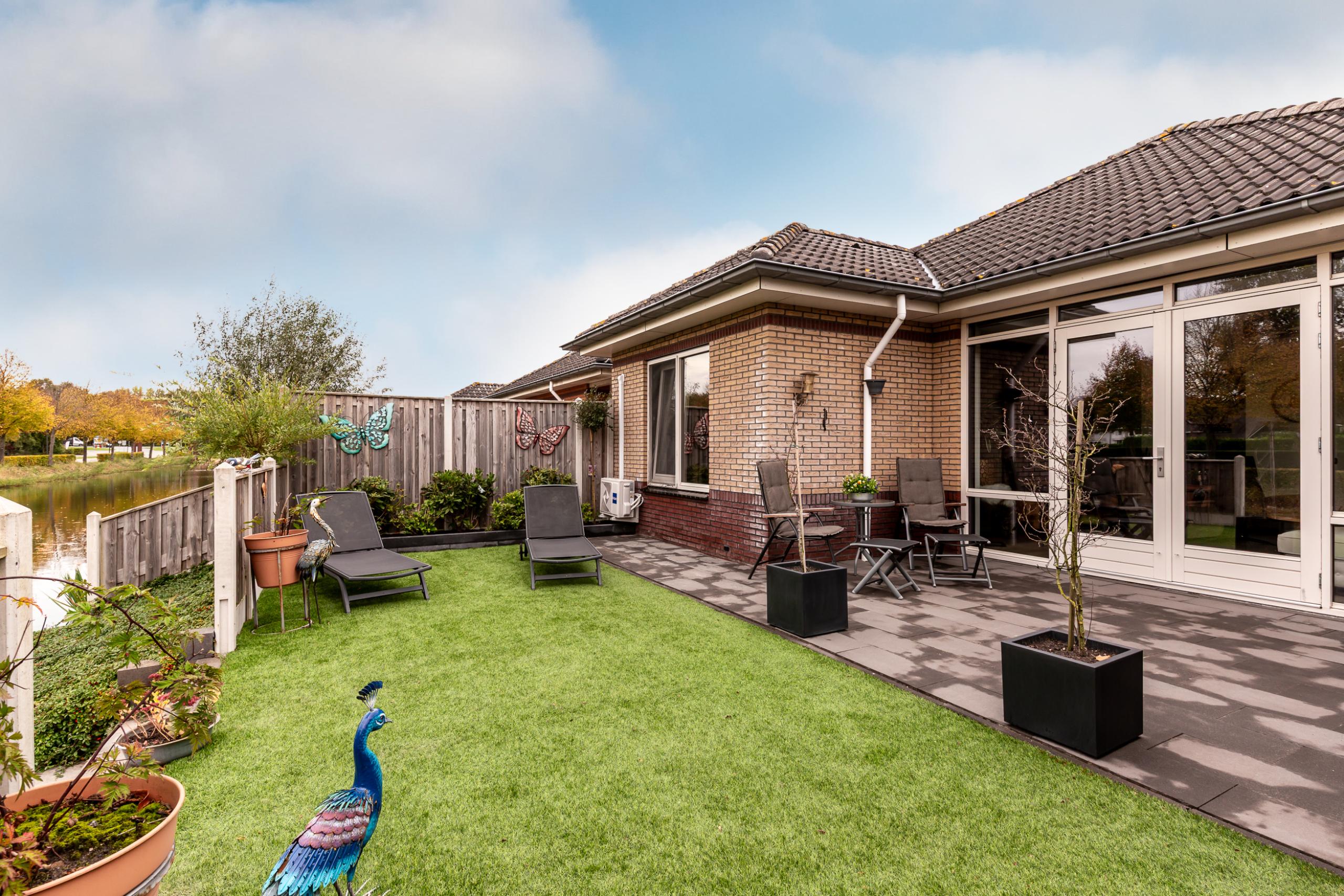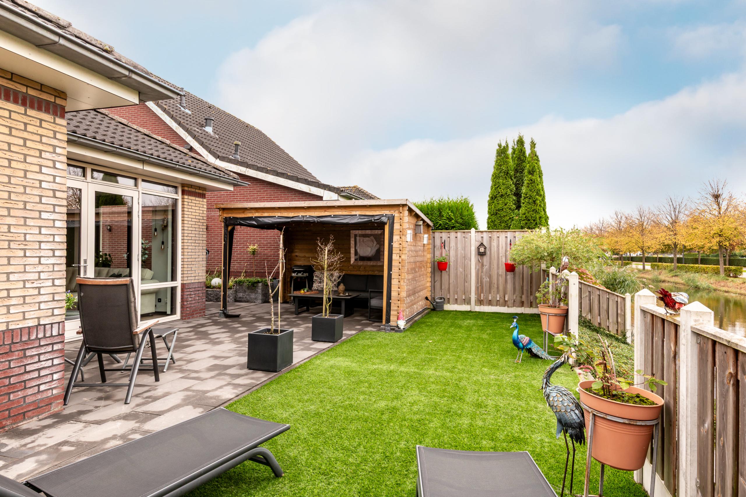 De tuin is op het westen gelegen, grenst direct aan het water en beschikt over een vrijstaande houten berging en een vrijstaande overkapping. Het gehele jaar wonen met een vakantiegevoel? Het kan!