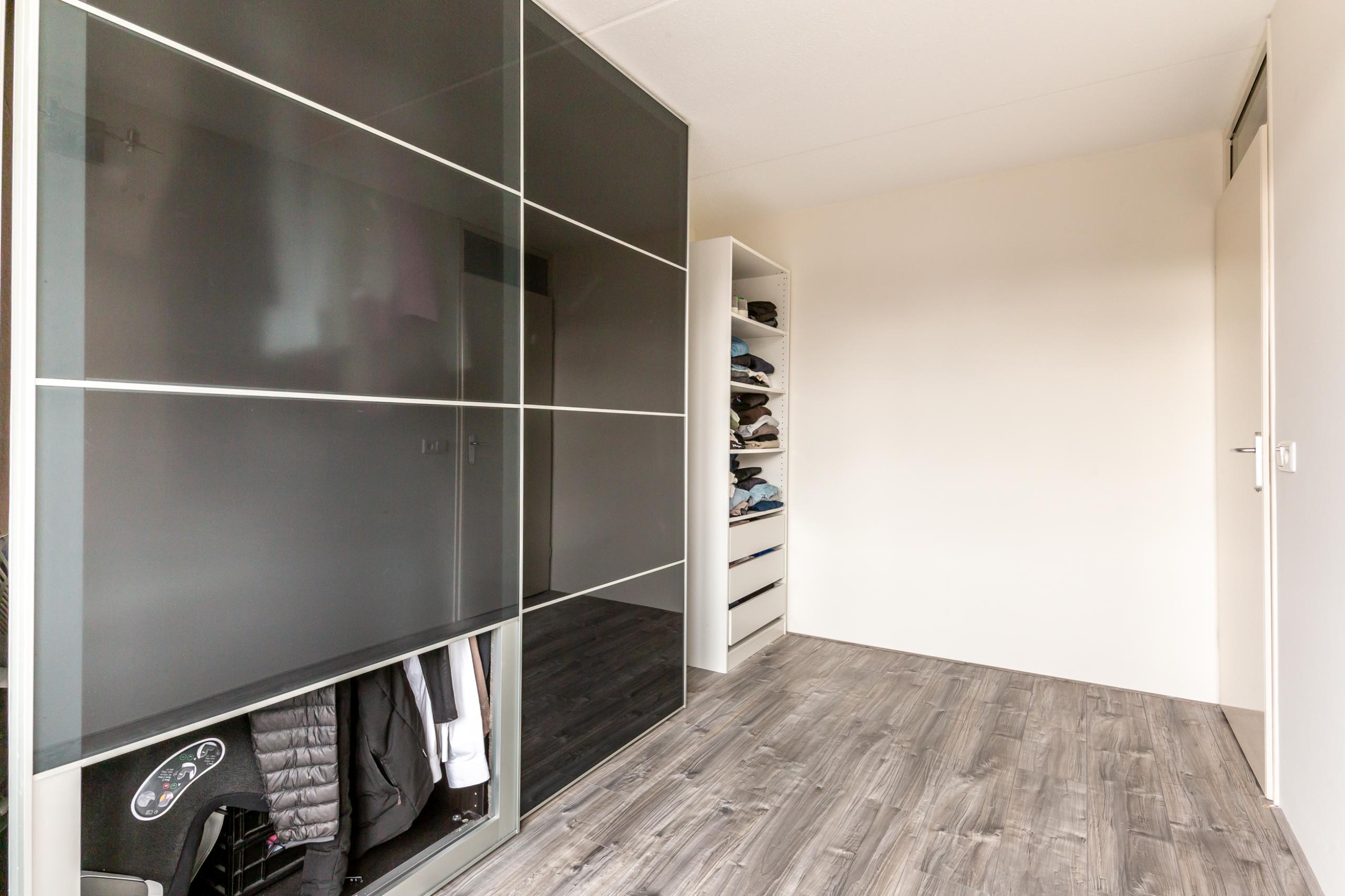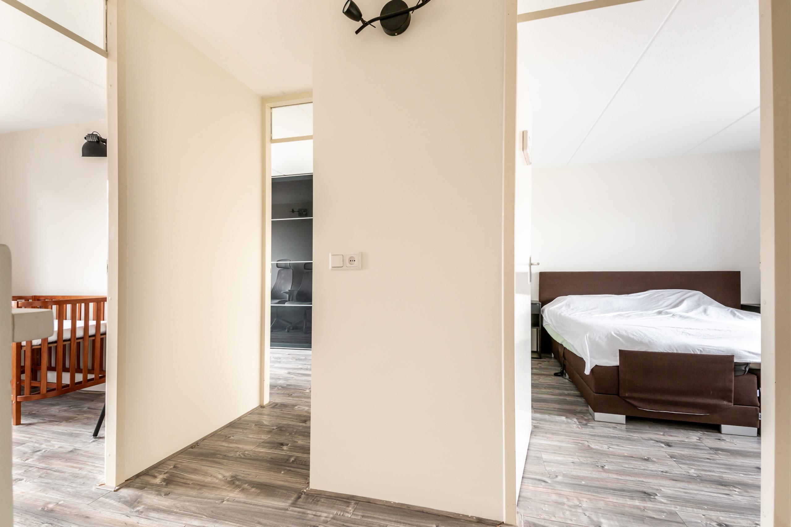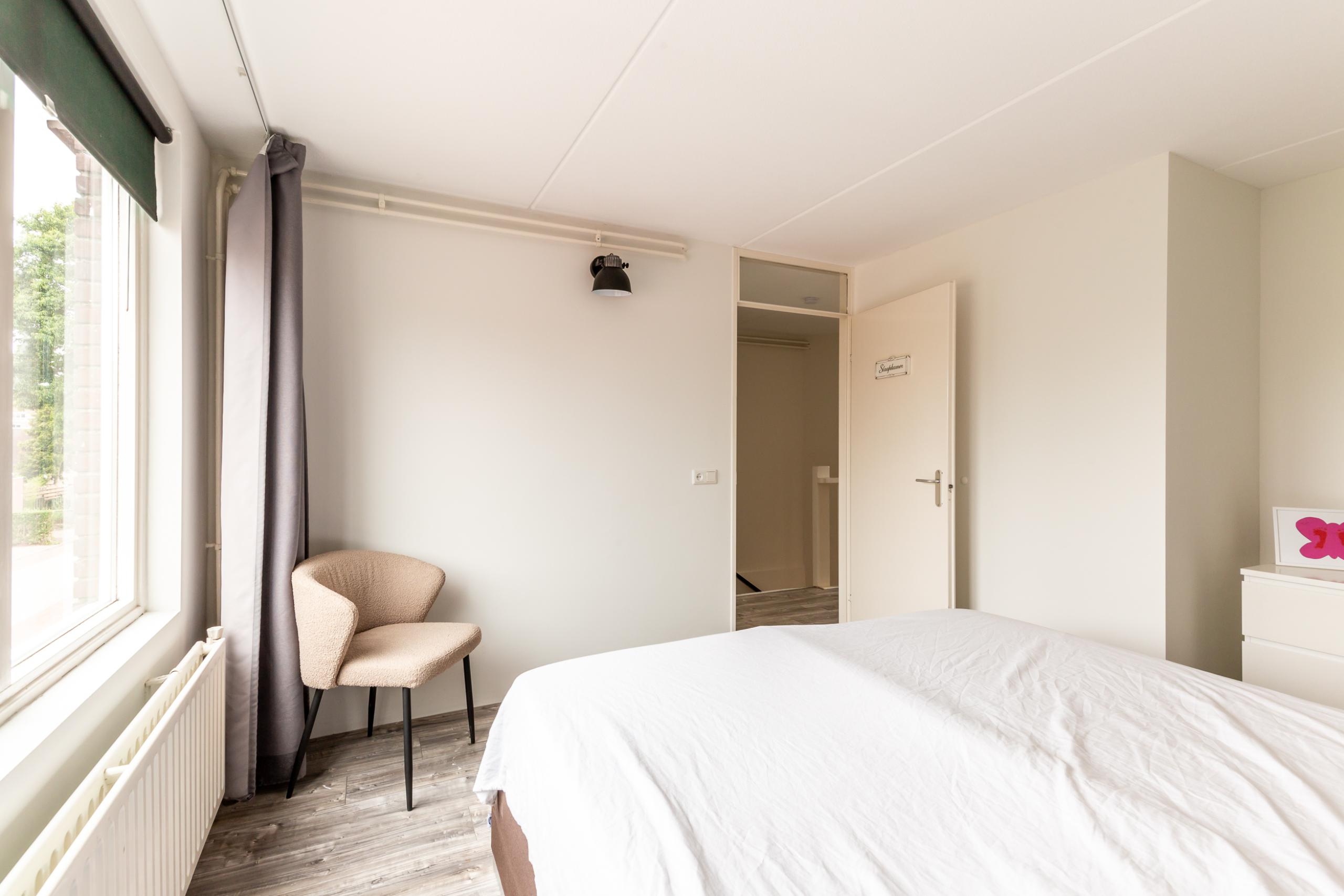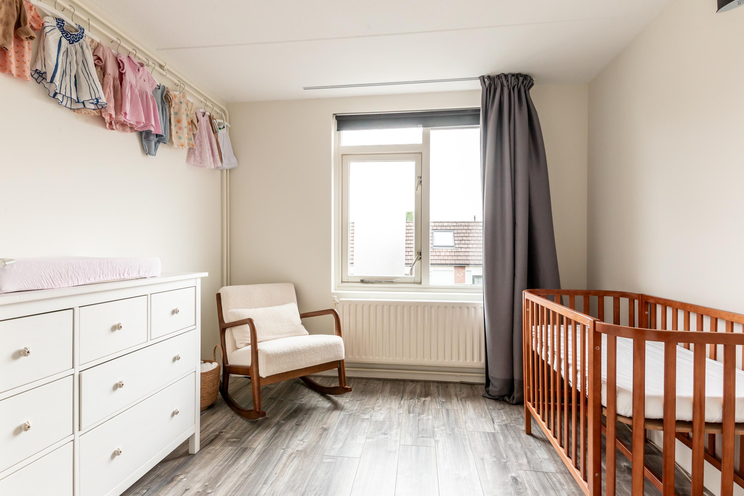 Eerste verdieping: Overloop met bergkast en een aparte ruimte met de CV- ketel (Intergas HR-e uit 2020) en de witgoedaansluitingen; drie slaapkamers van respectievelijk 8,9-, 9,8- en 11,8m²; in lichte kleurstelling uitgevoerde moderne badkamer uit 2019 met een douchehoek, badkamermeubel, tweede (hangend) toilet, designradiator en een raam voor natuurlijk lichtinval en ventilatie.