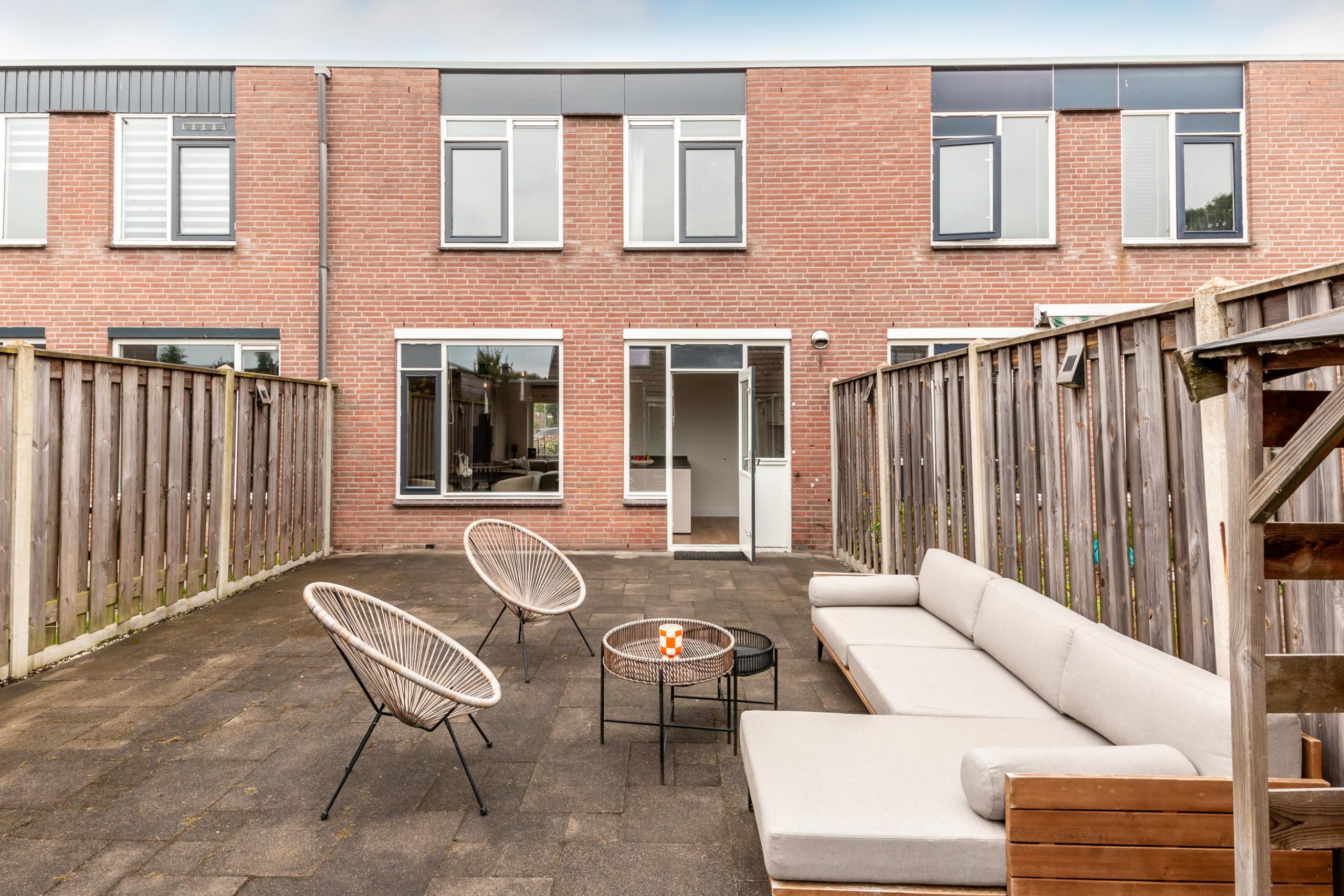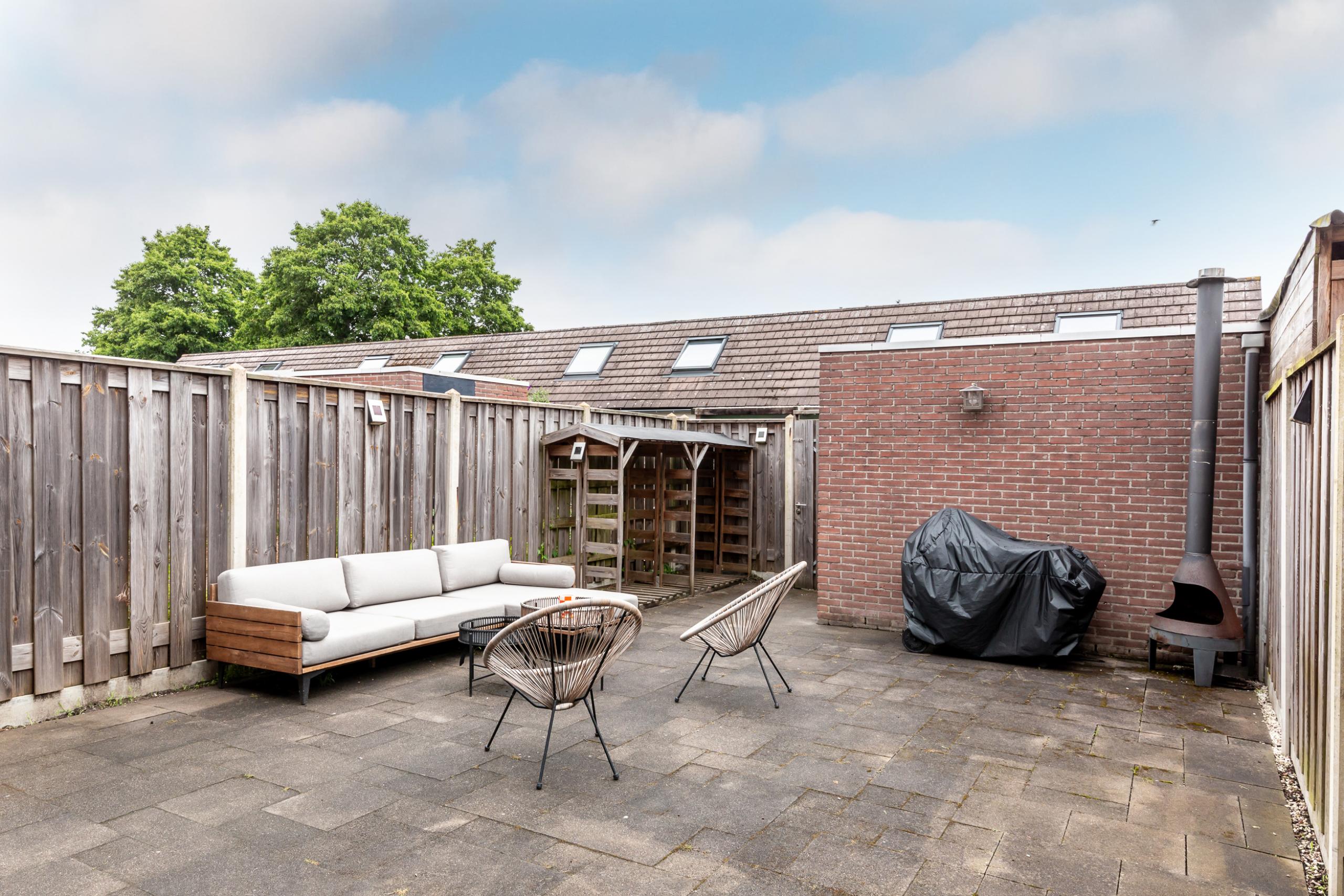 • Volledig bestraatte achtertuin op het (zuid)oosten