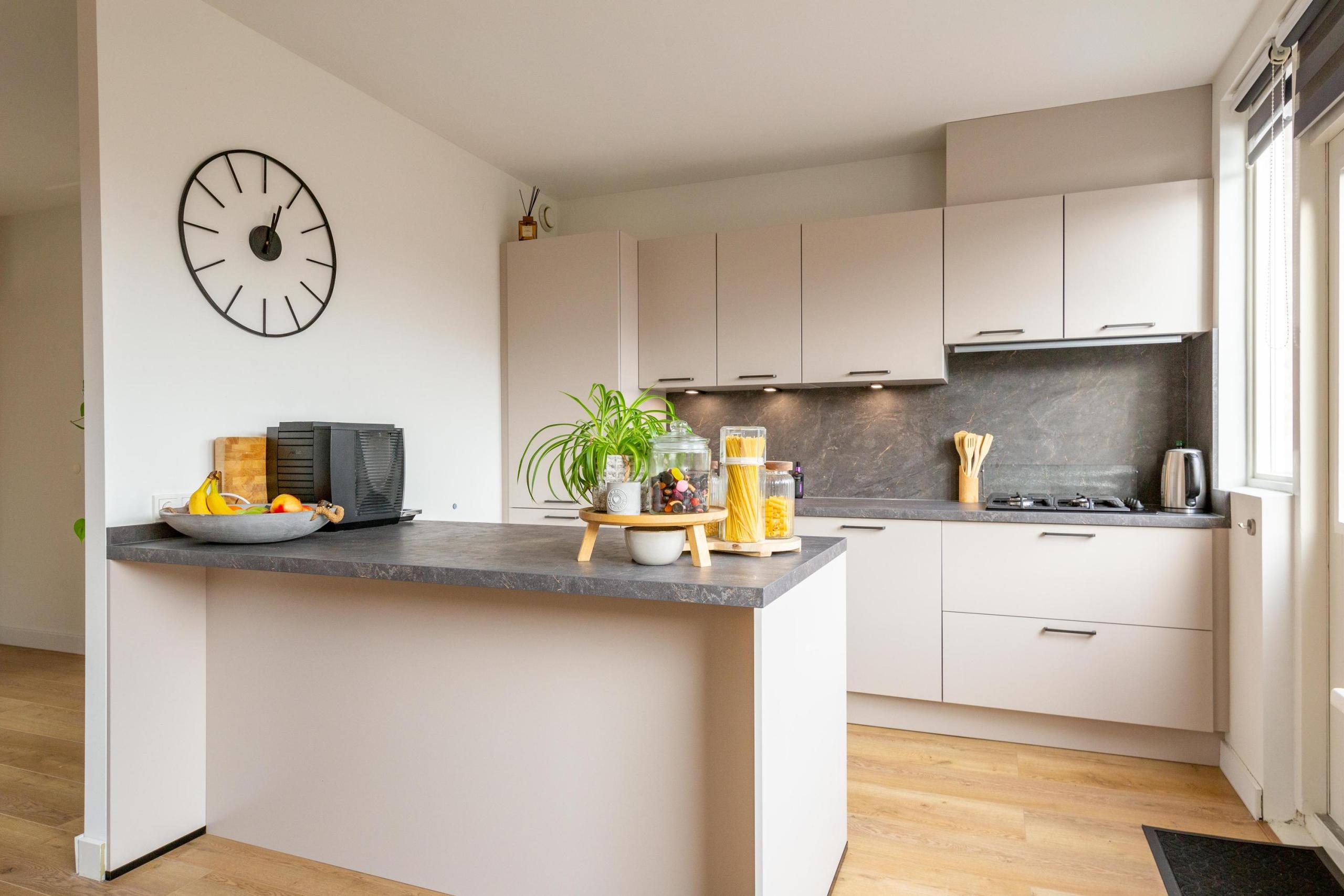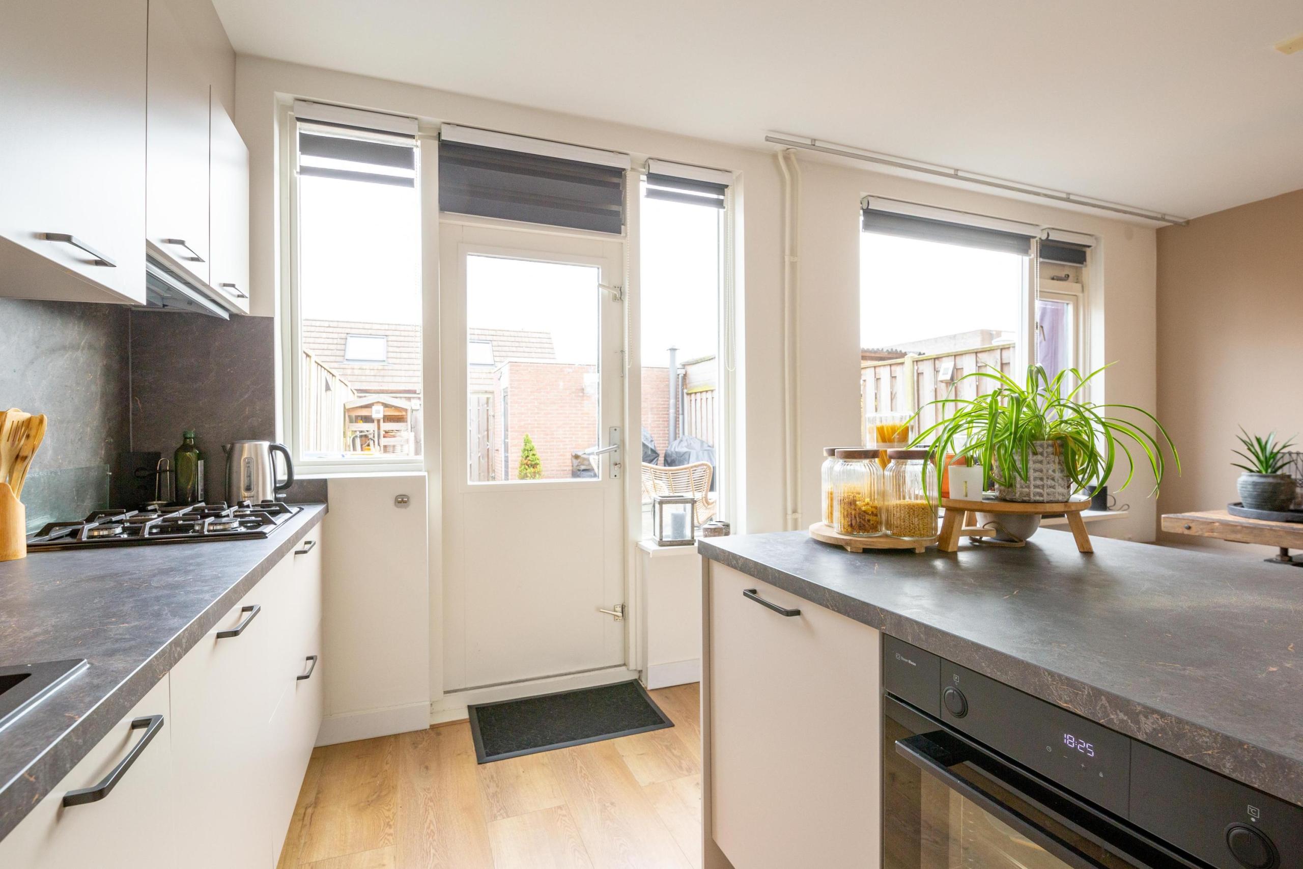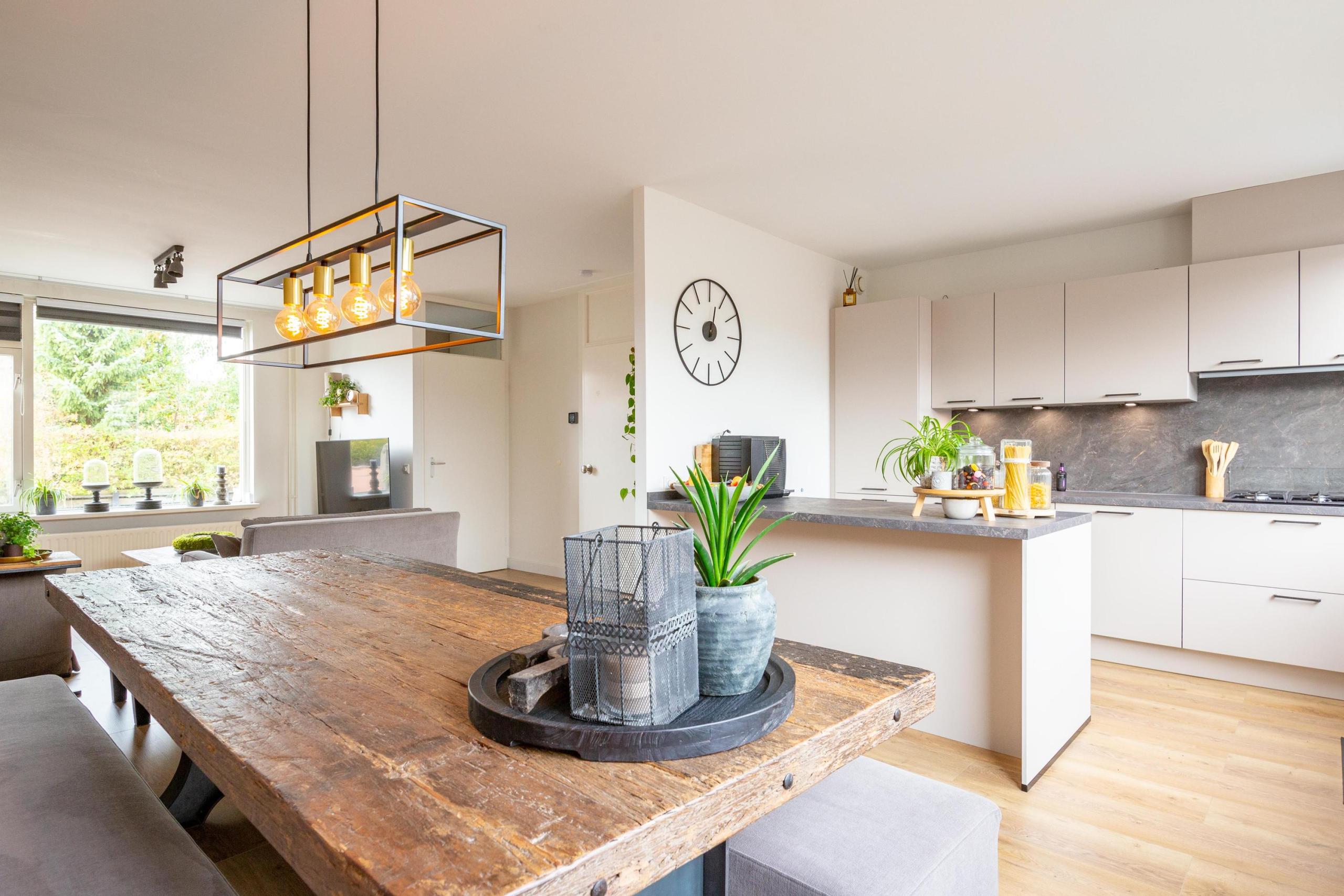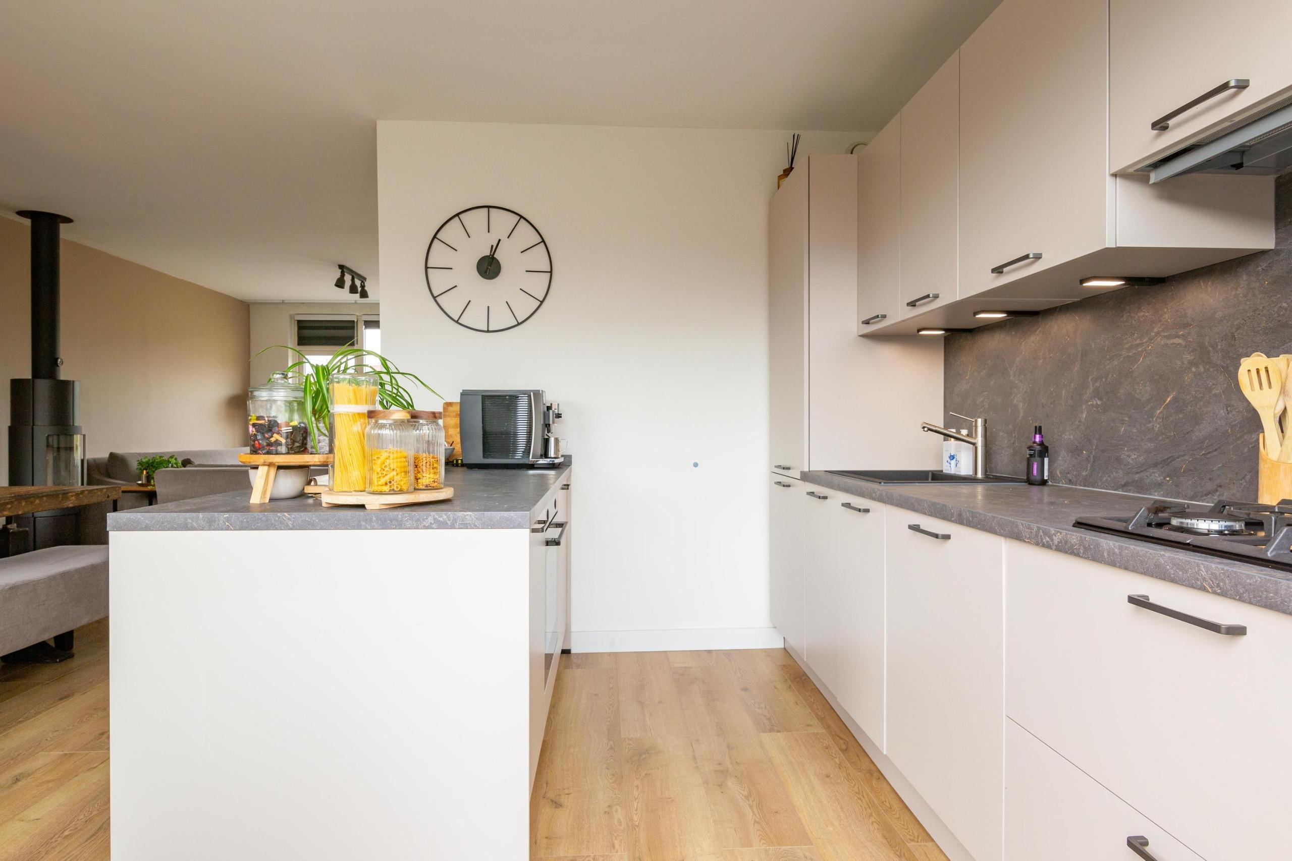 Begane grond: Overdekte entree; hal met meterkast en een volledig betegeld vrijhangend toilet (2019); straatgerichte (doorzon) woonkamer van 30m² met trapkast en heerlijke (design) houtkachel; aan de achterzijde gesitueerde keuken met schiereiland welke in 2025 is geplaatst en is voorzien van een koelkast, vaatwasser, 4-pits gaskookplaat, oven, vlakscherm afzuigkap, verlichting onder de bovenkastjes en flink wat kastruimte; vanuit de keuken is de tuin bereikbaar.