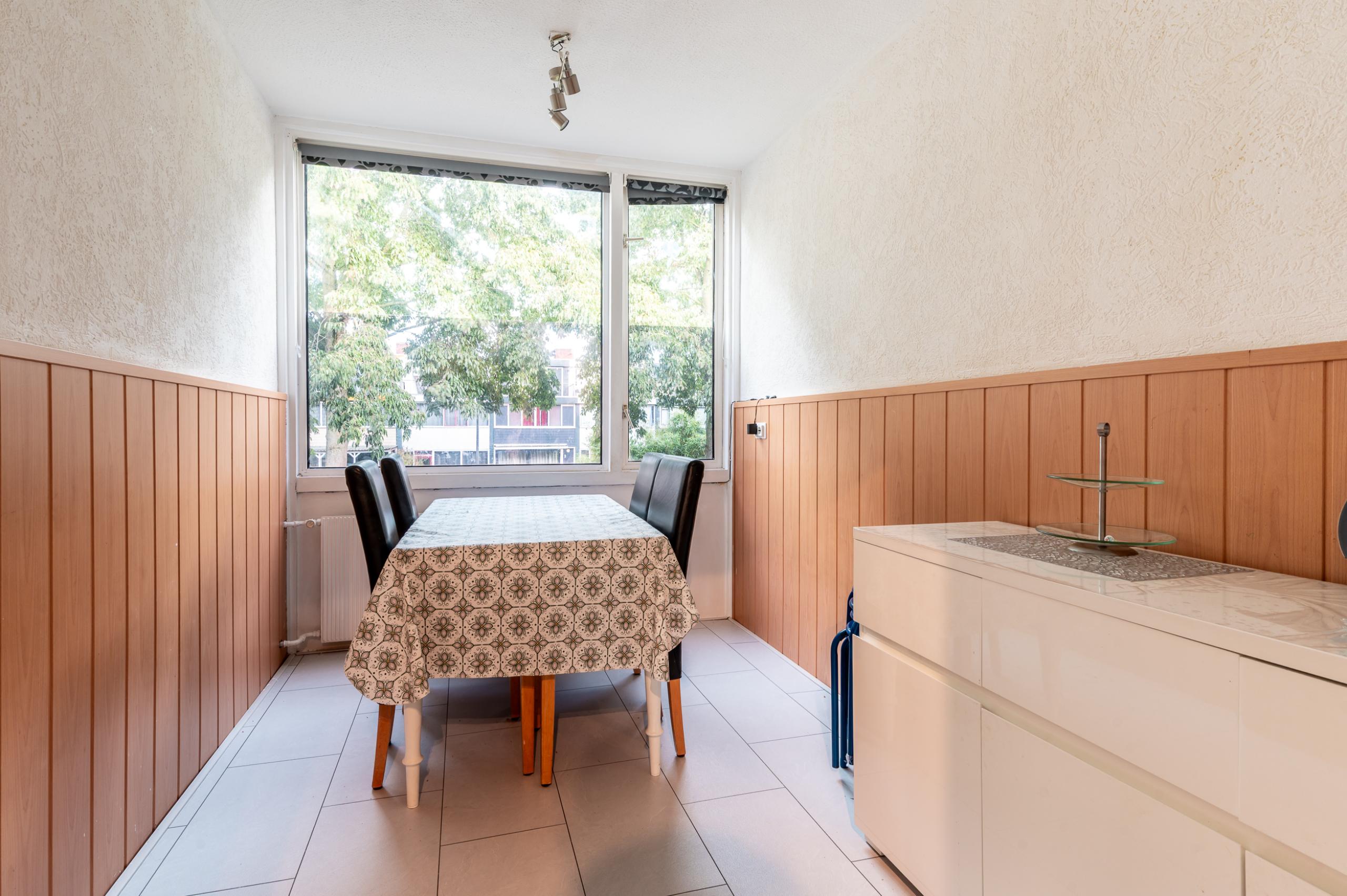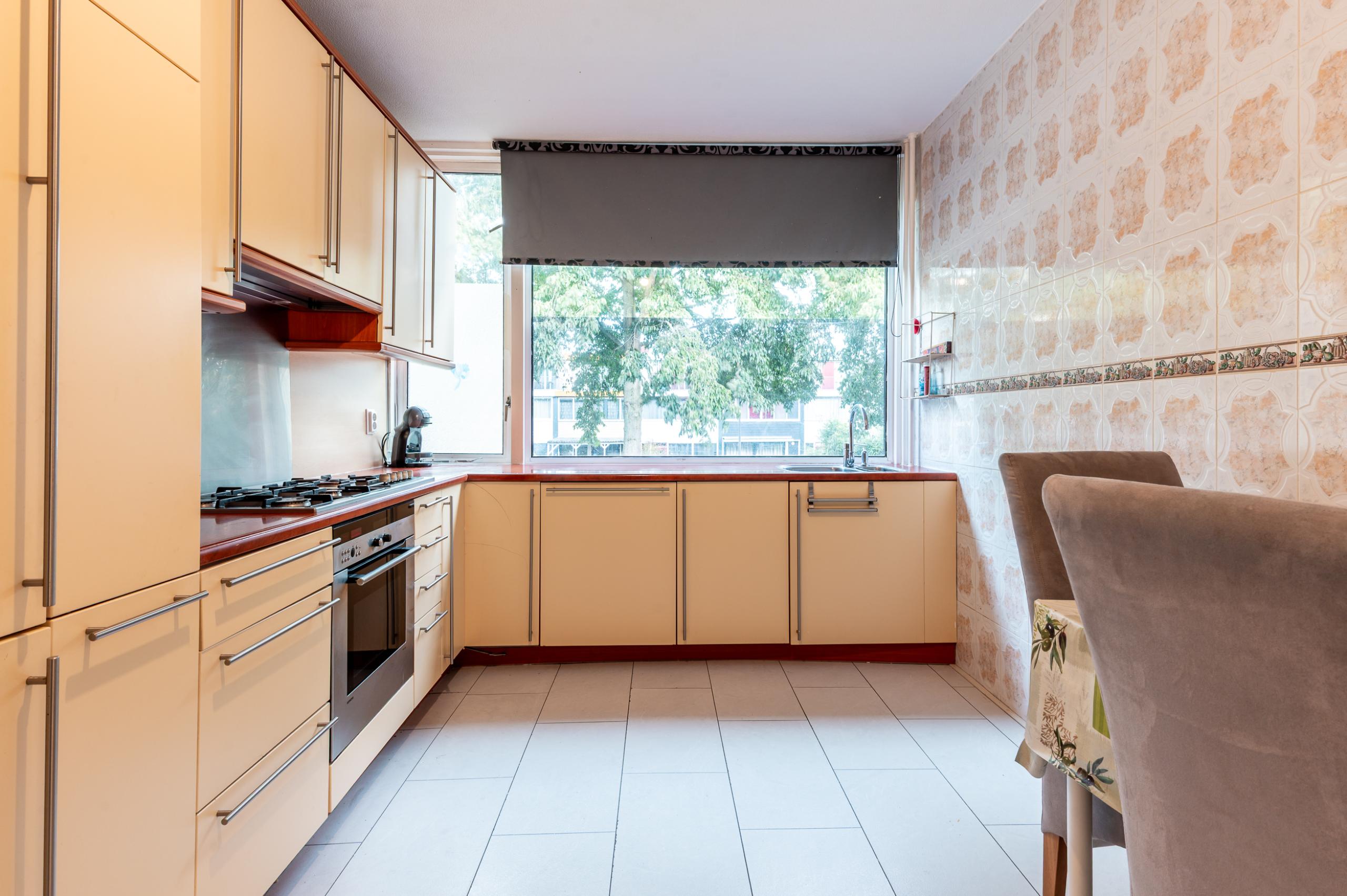 Eerste verdieping: Overloop; woonkamer van ongeveer 29m² met toegang tot het, op het zuiden gesitueerde, balkon van 1,4 x 5,48 meter; een afsluitbare keuken in L-opstelling welke is voorzien van ondermeer een 5-pits gasfornuis, oven, afzuigkap, koelkast, vriezer en een volledig geïntegreerde vaatwasser; slaap-, eet-, werkkamer van 8,3m².