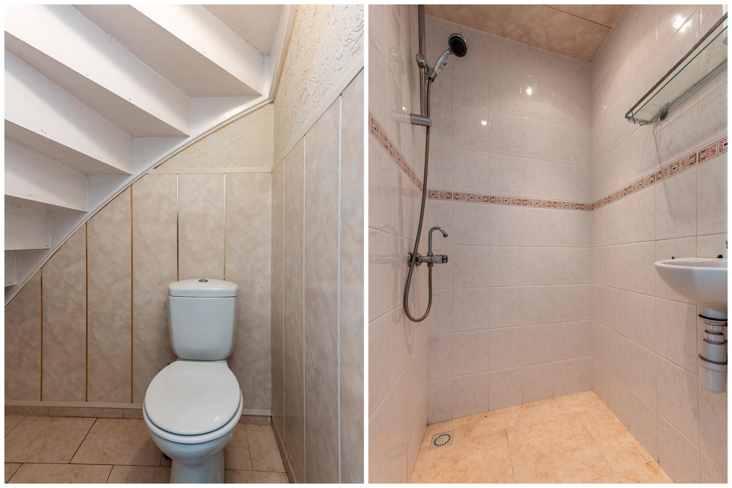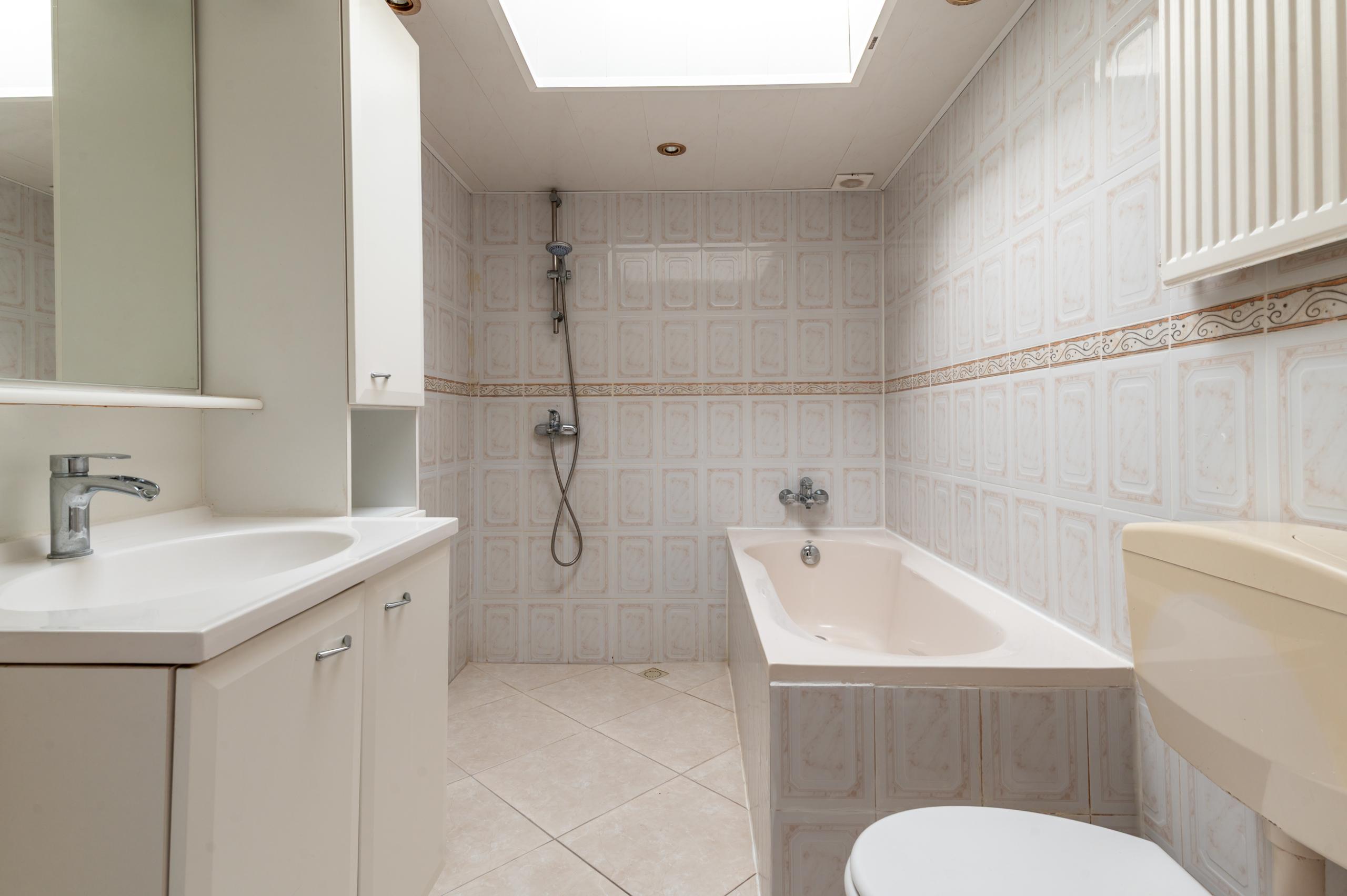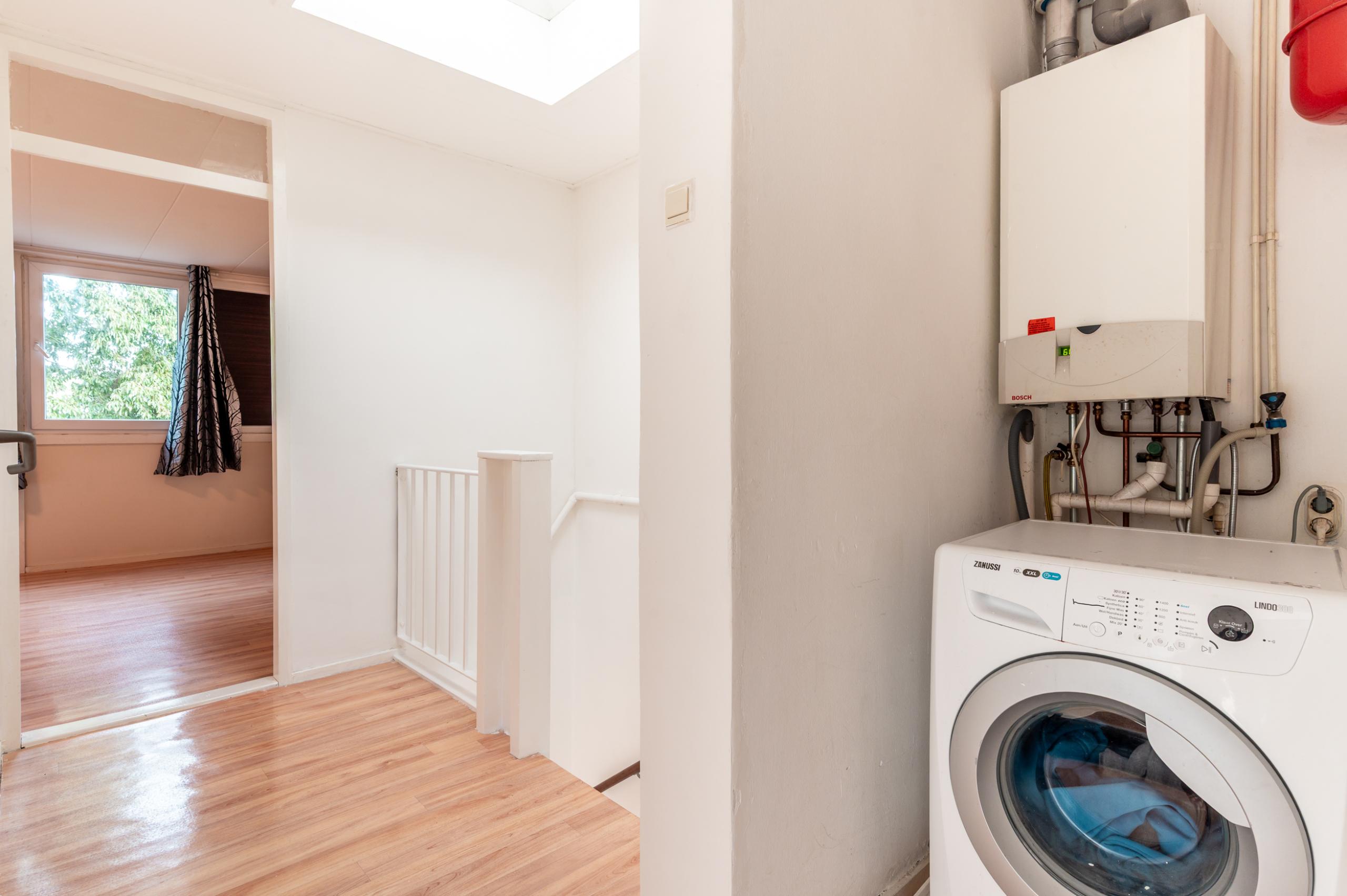 Tweede verdieping: Overloop met opstelling van de cv-ketel en de witgoedaansluitingen; drie slaapkamers van respectievelijk 8,4-, 12,3- en een woningbrede slaapkamer van 19,1m²; volledig betegelde tweede badkamer welke is voorzien van een douche, toilet, wastafelmeubel en een ligbad.