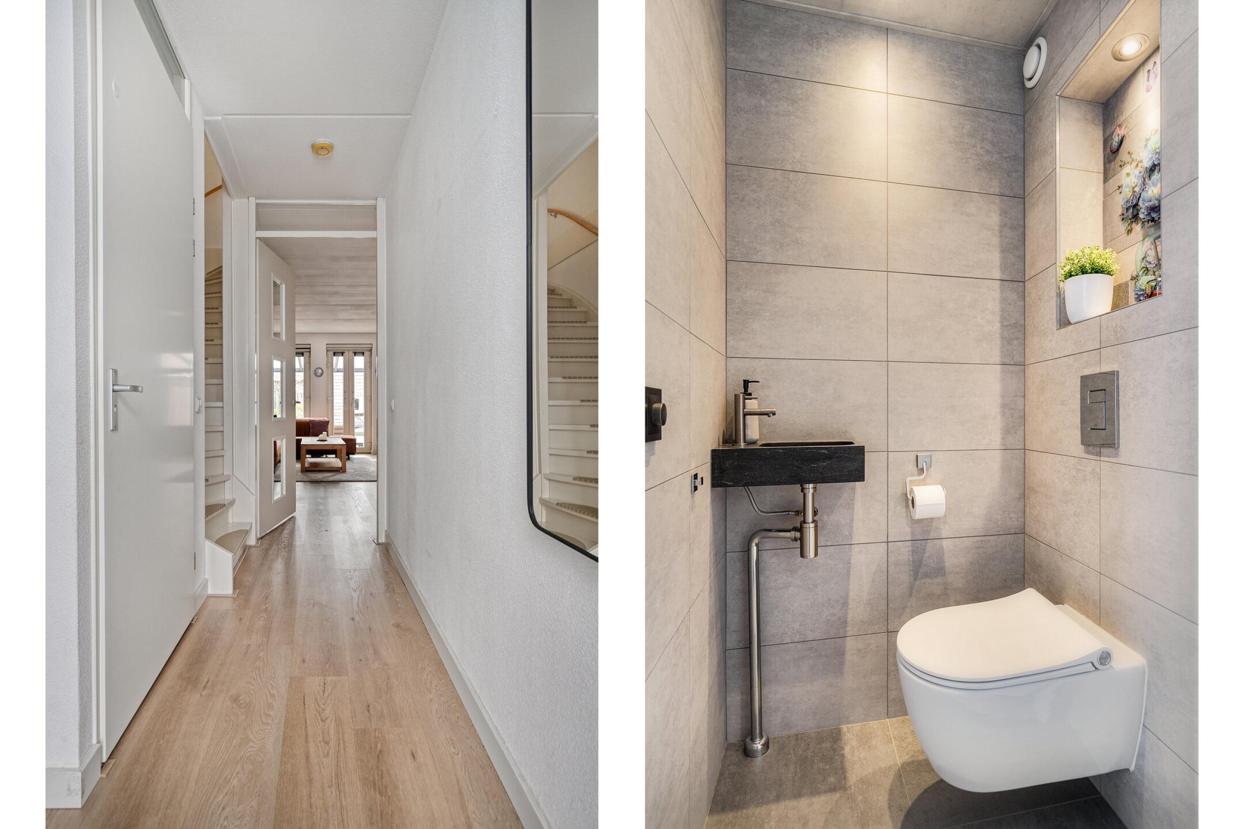 Begane grond: Entree; hal met meterkast, toilet (2019) en trapopgang; tuingerichte woonkamer van 34m² met een trapkast en drie deuren met toegang tot de tuin; open keuken (2019) welke is voorzien van een koelkast, ladenvriezer, design afzuigkap, inductiekookplaat, twee combi-ovens, een vaatwasser, verlichting en kastruimte; vanuit de keuken is er toegang tot de voortuin.
