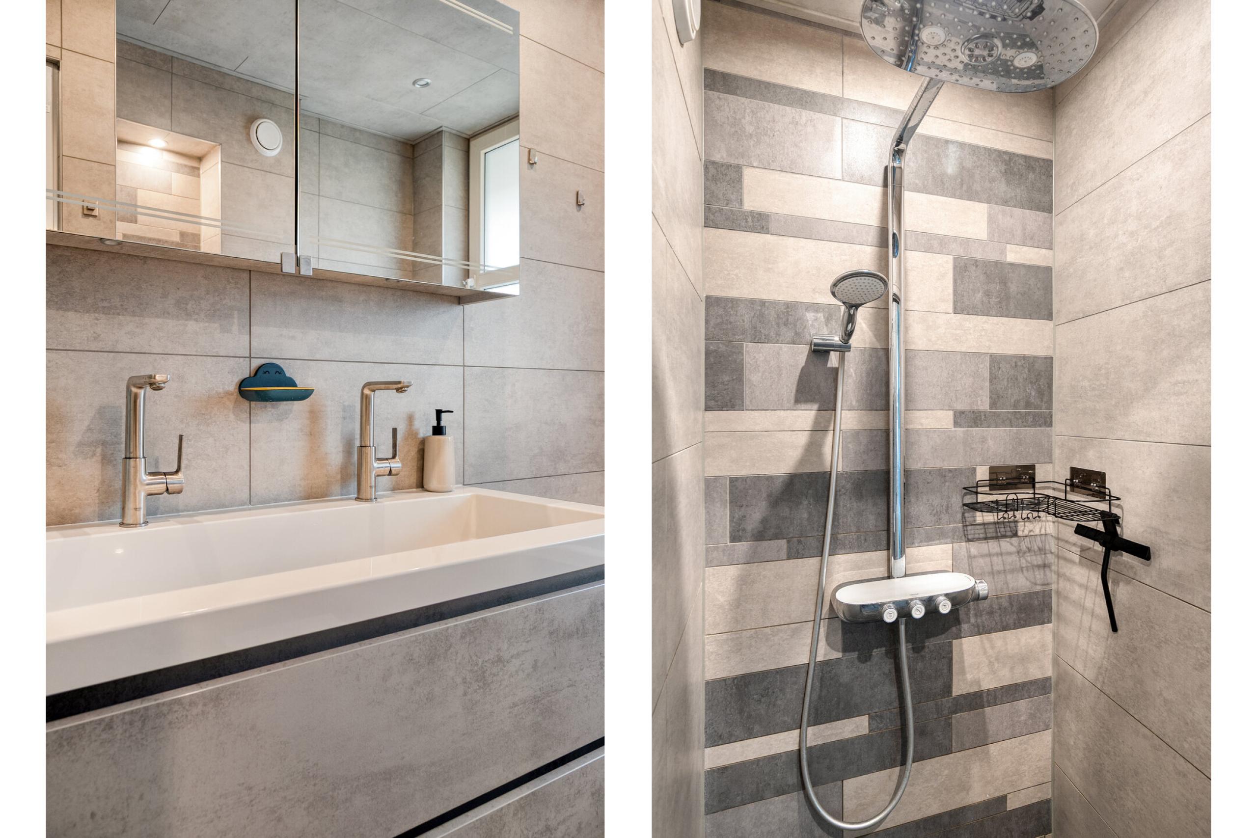 De verdieping is voorzien van een keurige laminaatvloer met vloerverwarming.