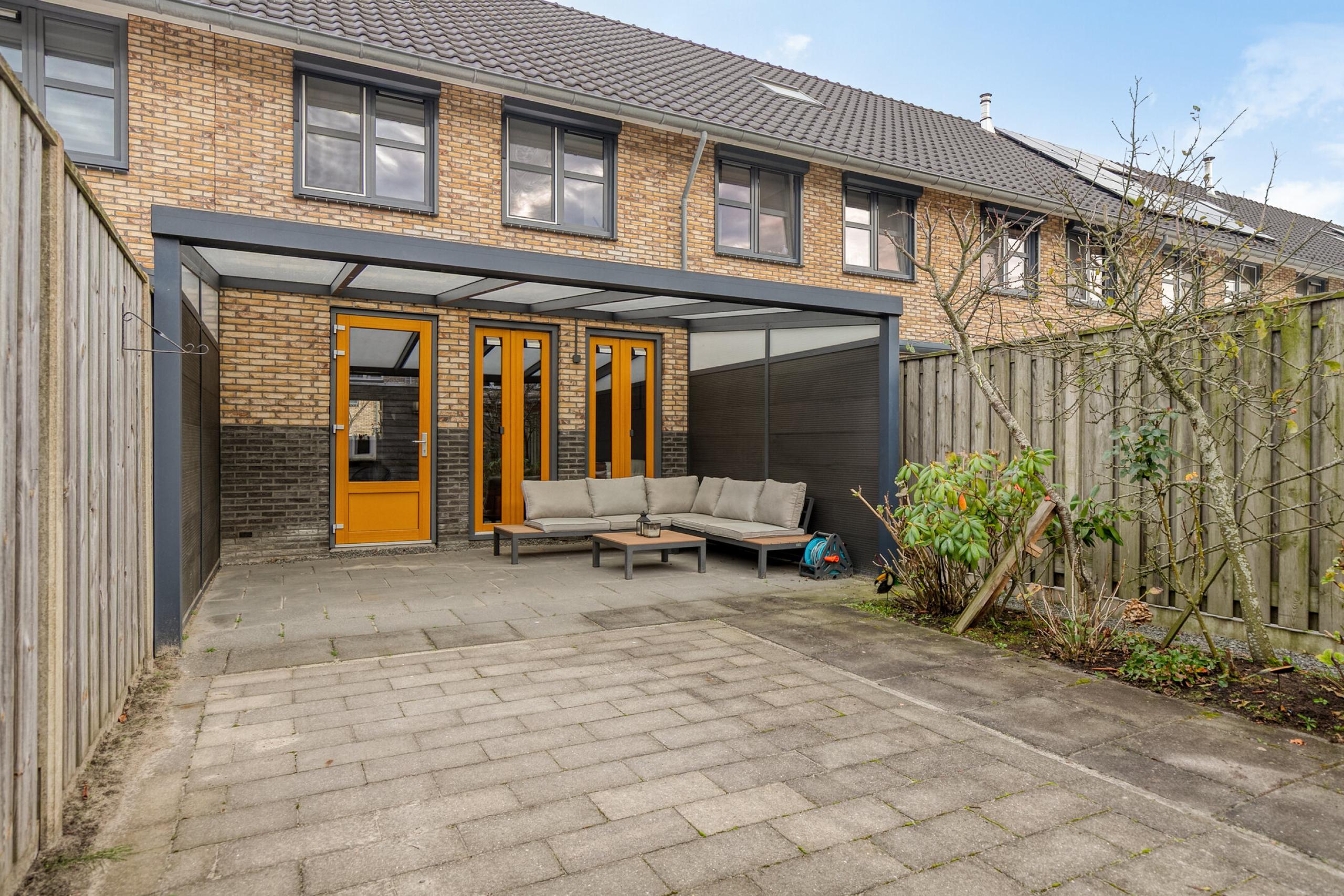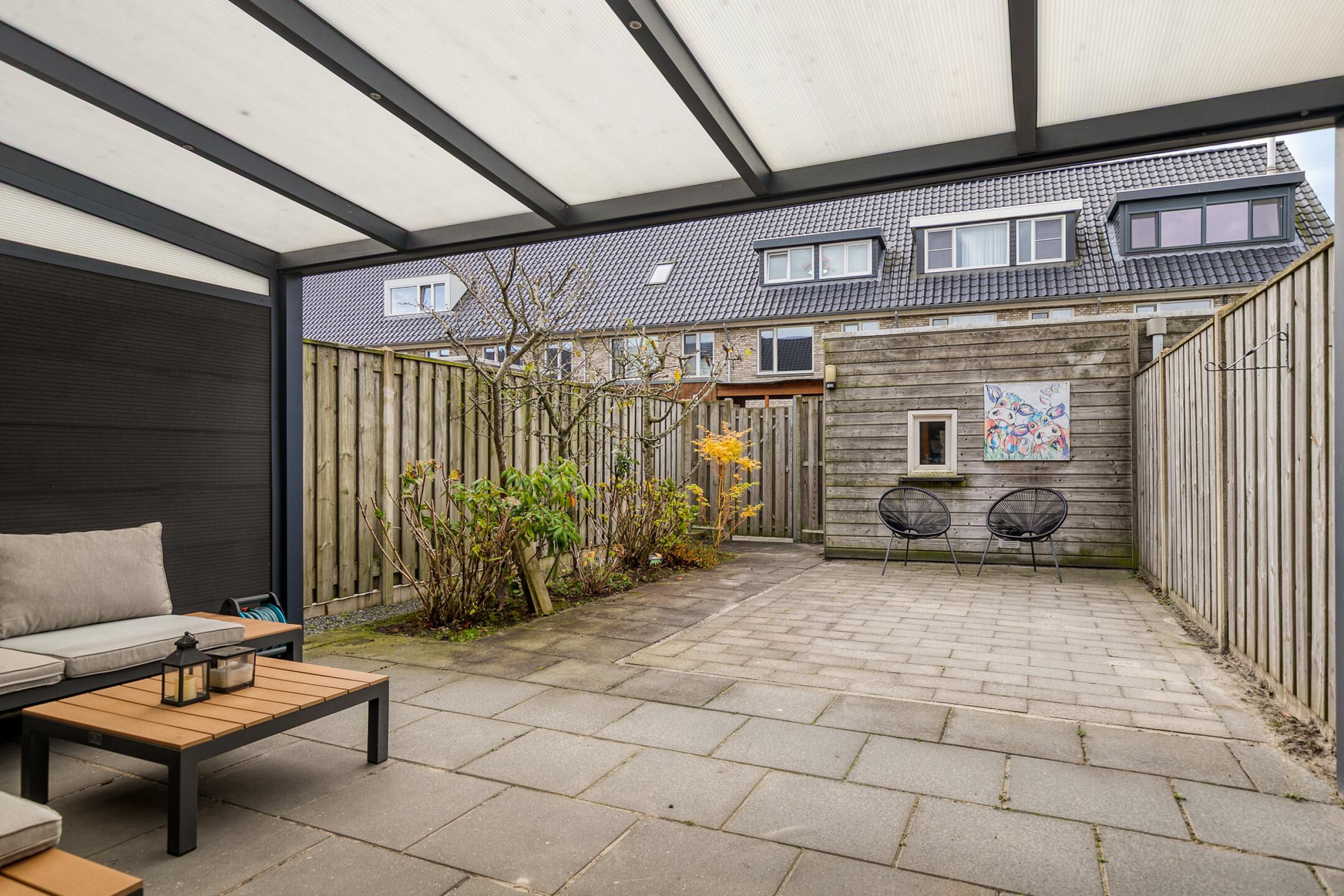 Tuin: De achtertuin is georiënteerd op het (zuid)westen en meet 12mtr. x 5,4mtr. Naast een houten berging (met elektra) is de tuin verder voorzien van een prachtige, in 2022 geplaatste, veranda met inbouwspots, een ruim terras, verdere bestrating, diverse beplanting, erfafscheidingen en een achterom.