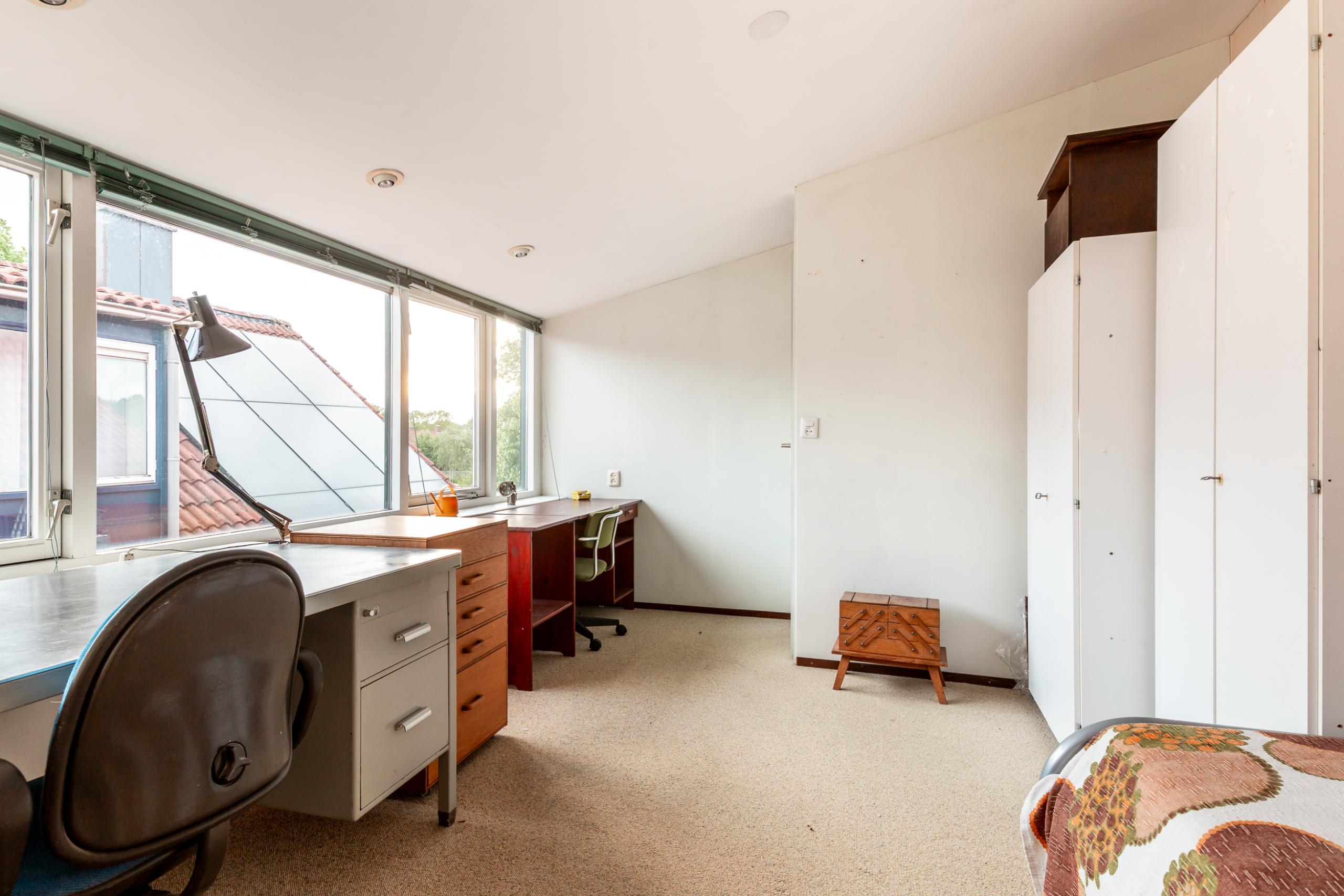 Eerste verdieping: Overloop; twee slaapkamers (respectievelijk circa 15,5 en 12,6m², waarvan de grootste de beschikking heeft over een vaste kastenwand) beiden over de gehele breedte van de woning is; betegelde badkamer welke is voorzien van een douchecabine, wastafelmeubel, 2e toilet, een DAKRAAM voor daglichttoetreding en natuurlijke ventilatie en de wasmachine aansluiting.