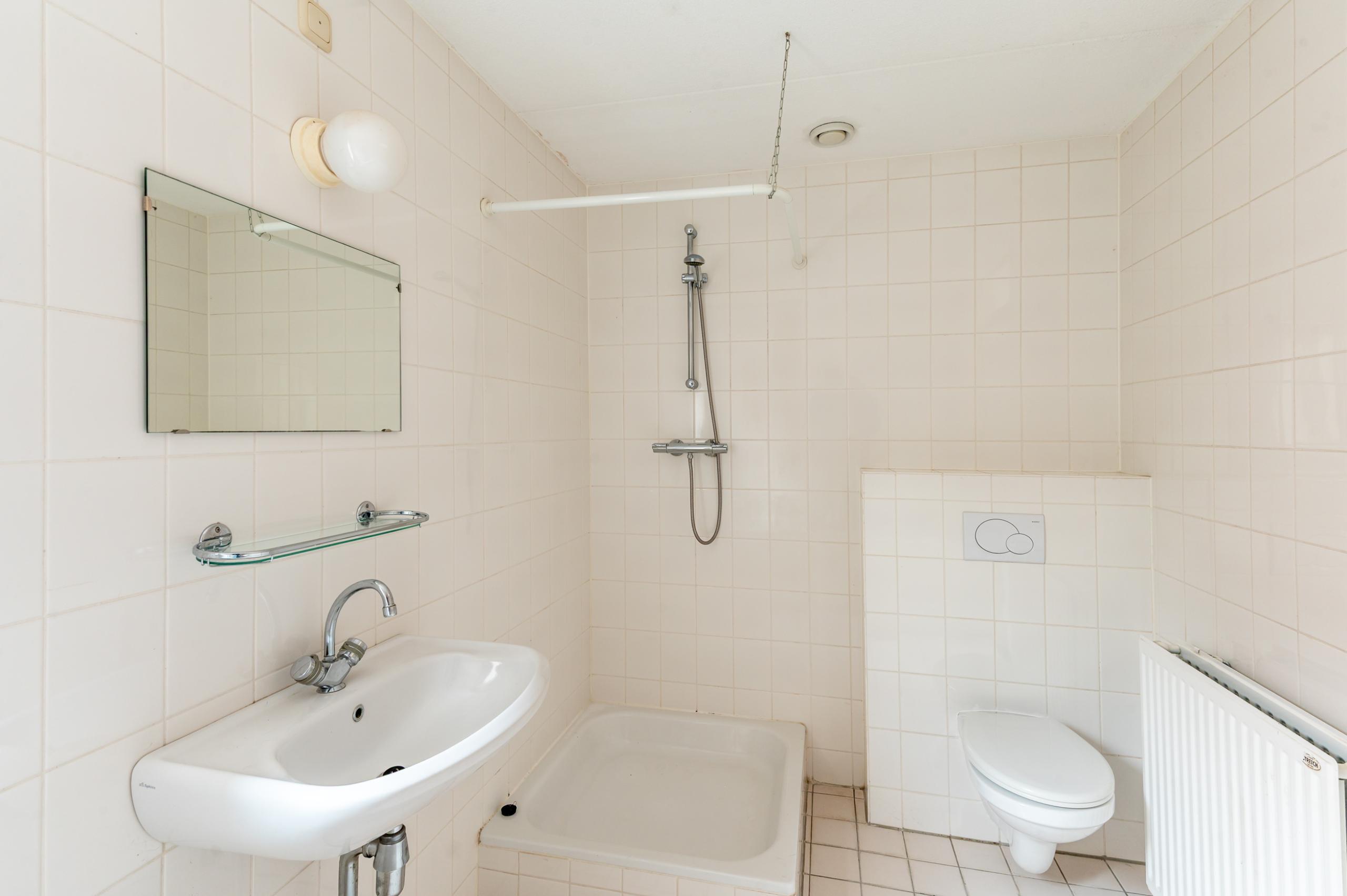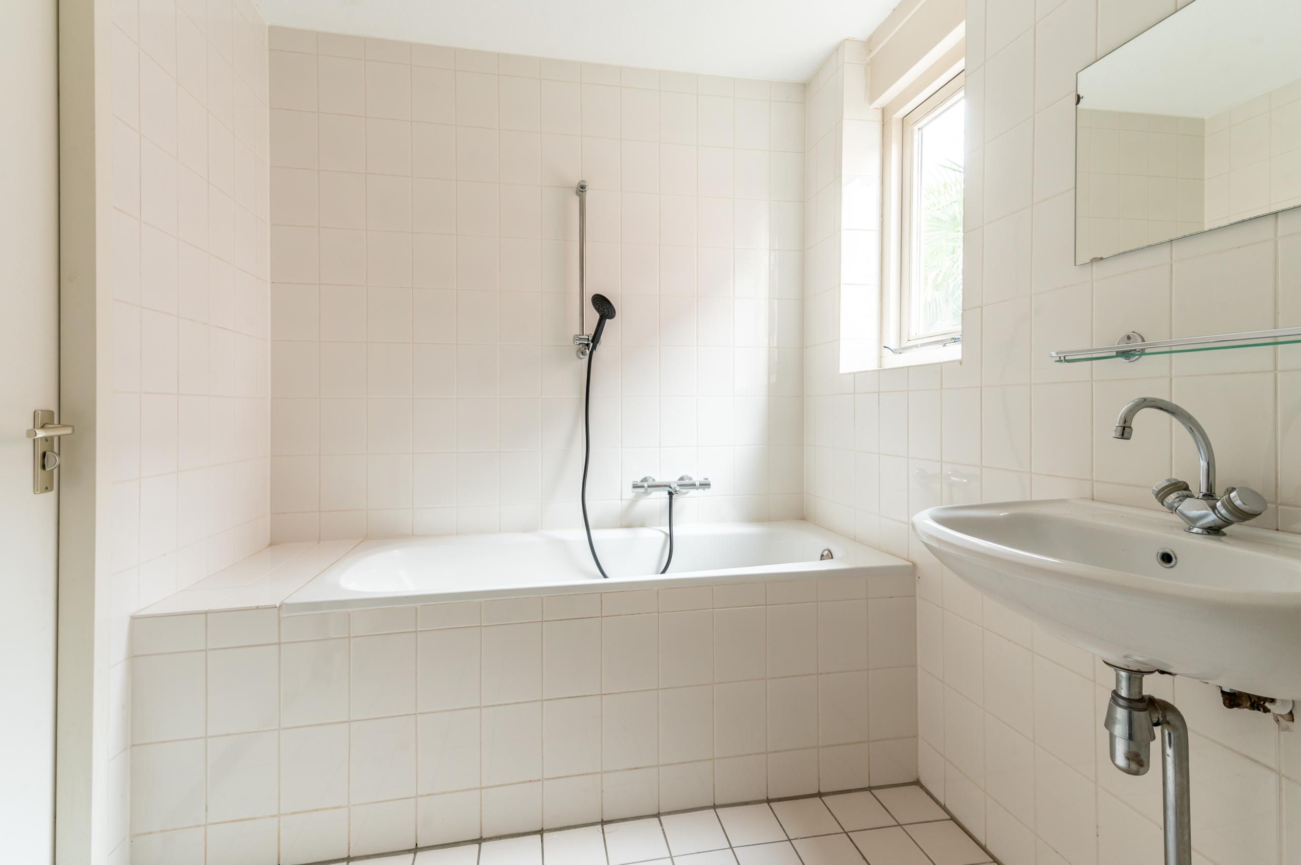 Eerste verdieping: Overloop; drie slaapkamers van respectievelijk 8-, 9,2- en 17,9m²; badkamer voorzien van volledige betegeling, een douchehoek, ligbad, radiator en een wastafel.