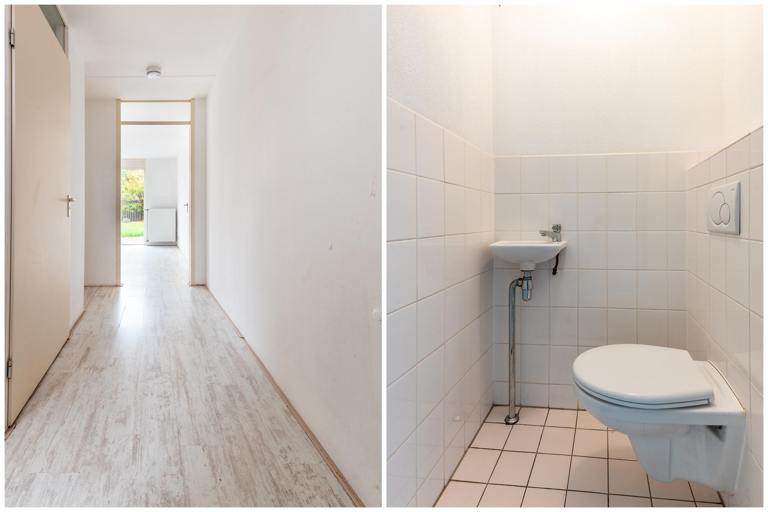 Begane grond: Entree; hal met meterkast, toilet, trapopgang en toegang tot de woonkamer; een optie is om een deur te realiseren vanuit de hal naar de garage; 6 meter brede, tuingerichte woonkamer van 26m² met deur naar de tuin; tussen de keuken en de woonkamer bevindt zich een trapkast; keuken van 11,3m² in lichte kleurstelling en hoekopstelling welke is voorzien van diverse (inbouw)apparatuur en voldoende ruimte voor een 4-persoons eetkamertafel.