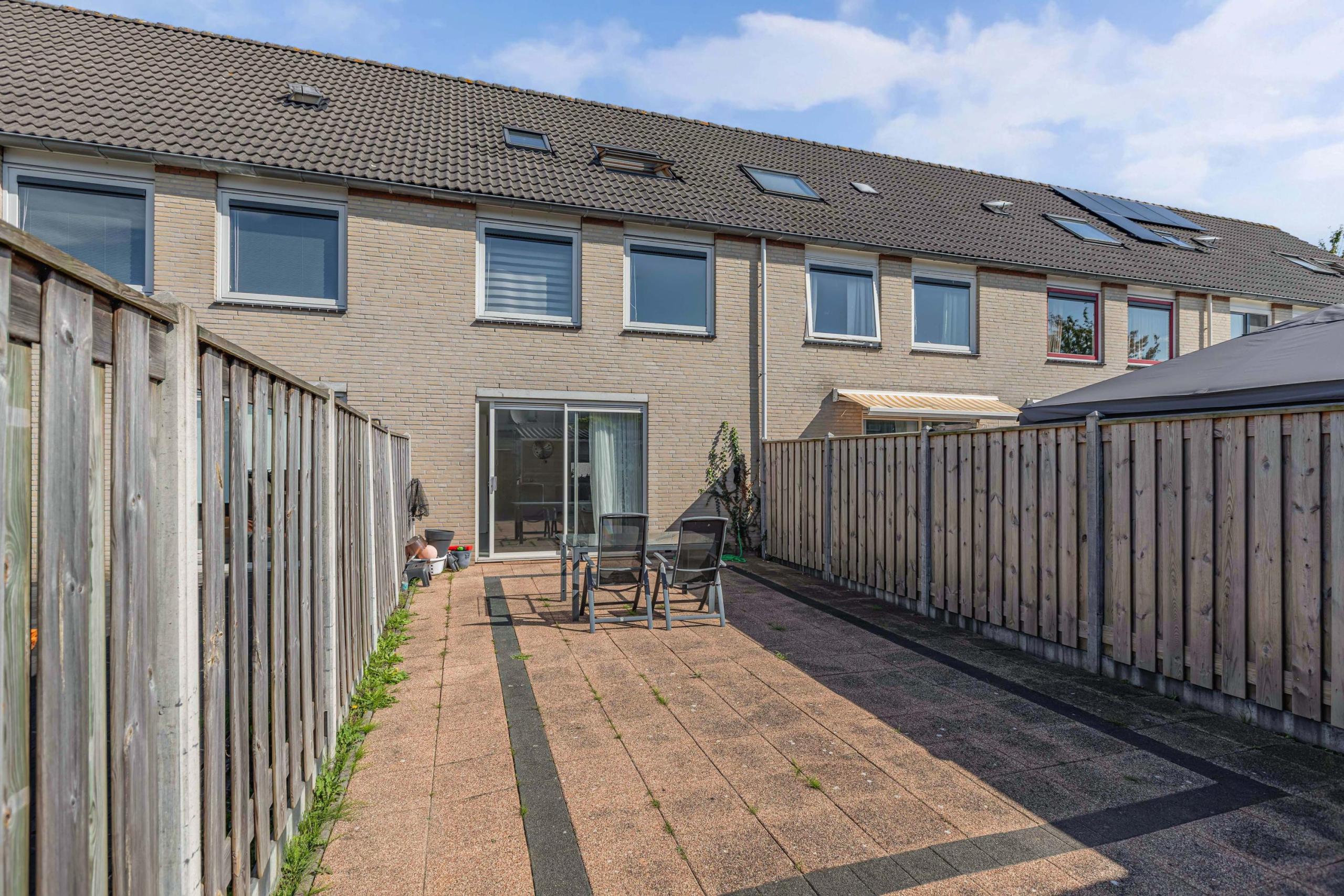 Tuin: Via de schuifpui loop je zo de volledig bestraatte tuin in welke op het zonnige westen is gelegen. De tuin is volledig omheind door een fraaie hout/beton schutting en beschikt over een poort. Achterin de tuin tref je ruime houten berging voor het stallen van je fietsen, tuingereedschap en andere spullen.