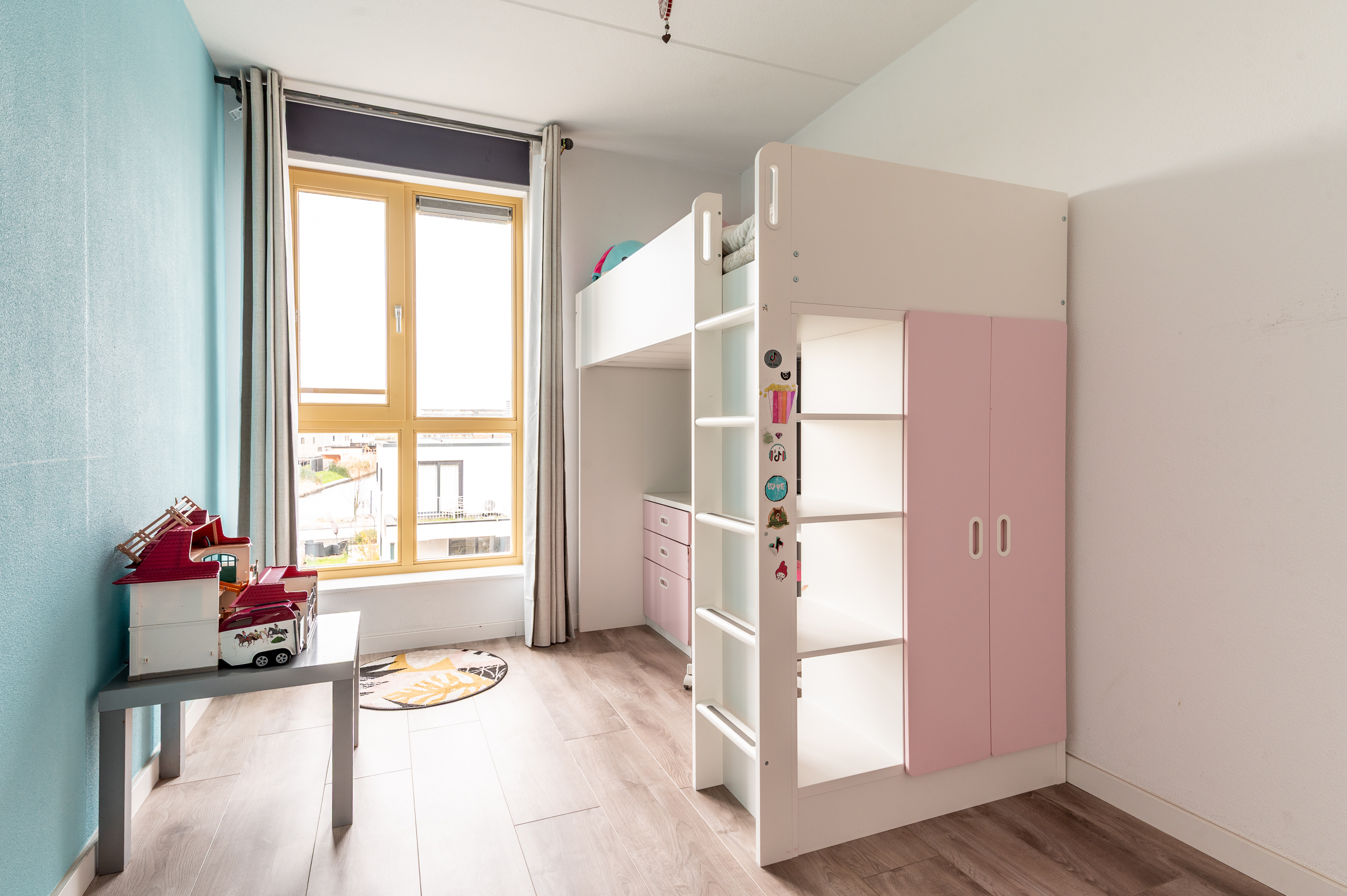 De tweede verdieping is eveneens voorzien van een laminaatvloer met vloerverwarming.