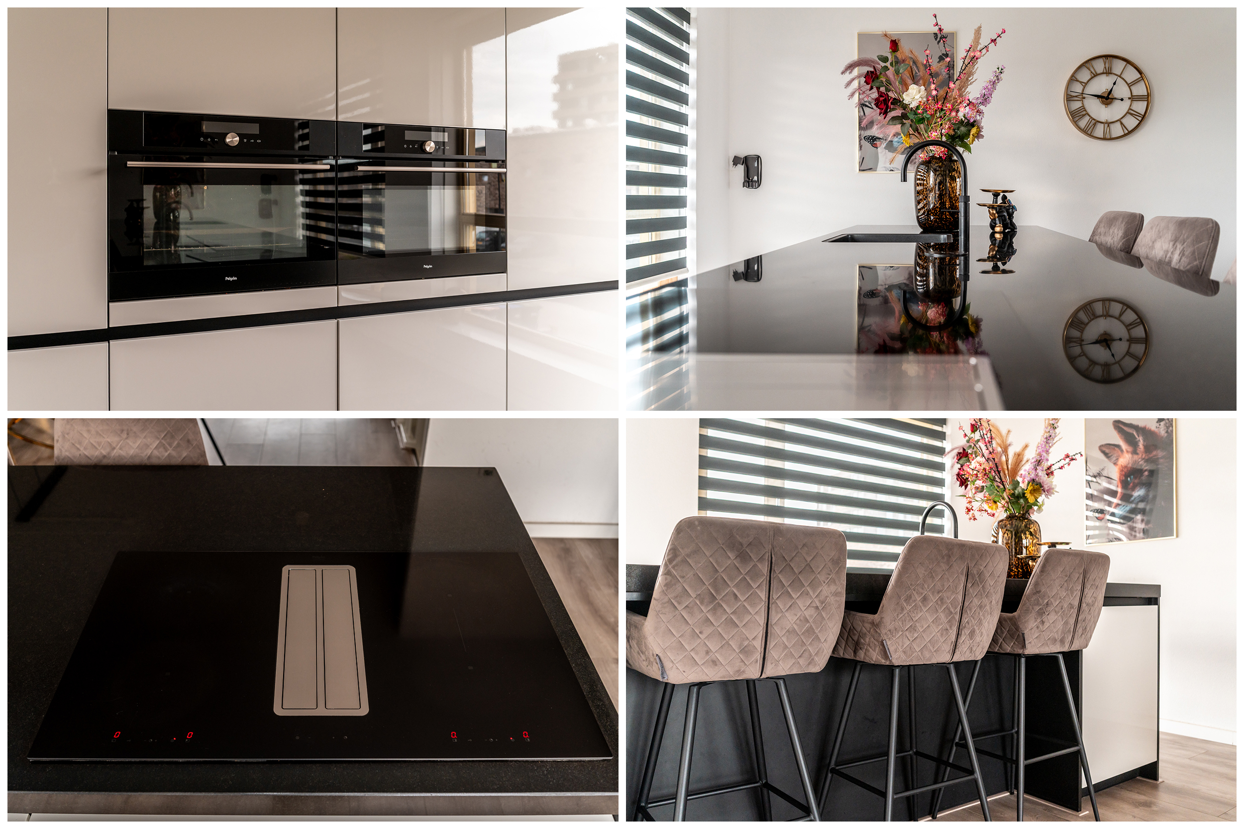 • Luxe (woon)keuken met kookeiland in moderne kleurstelling welke is voorzien van diverse inbouwapparatuur