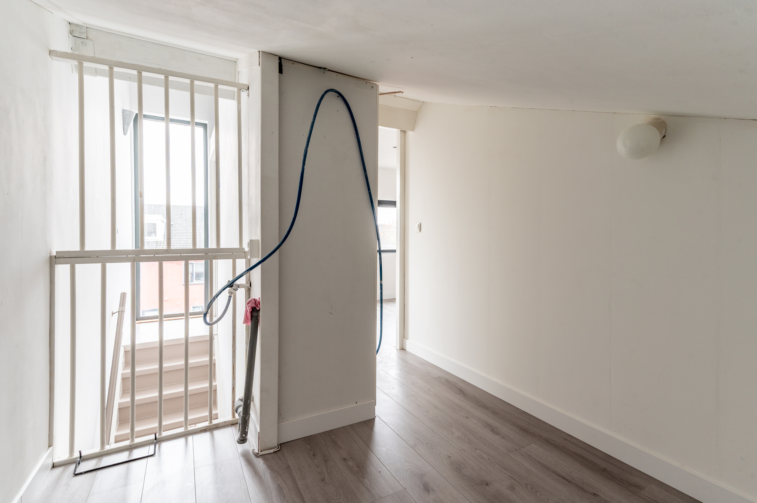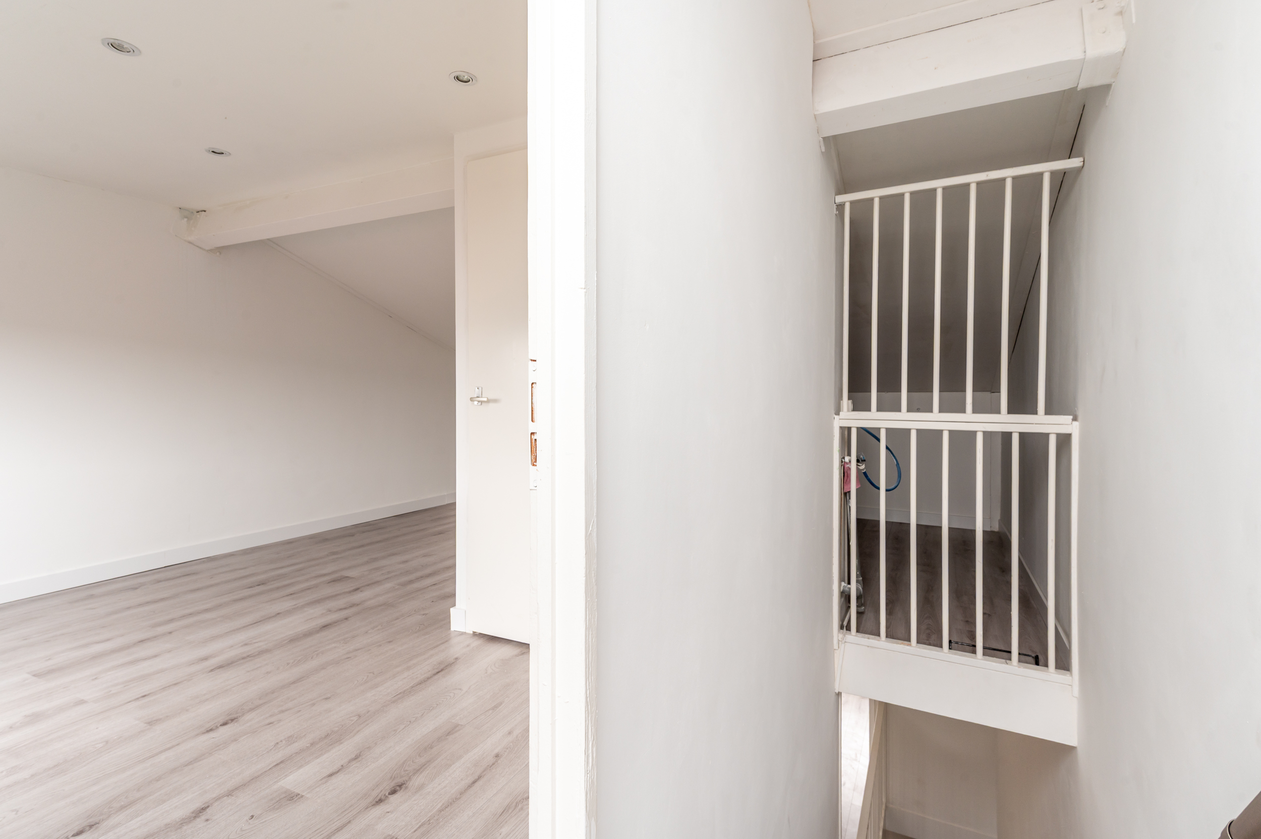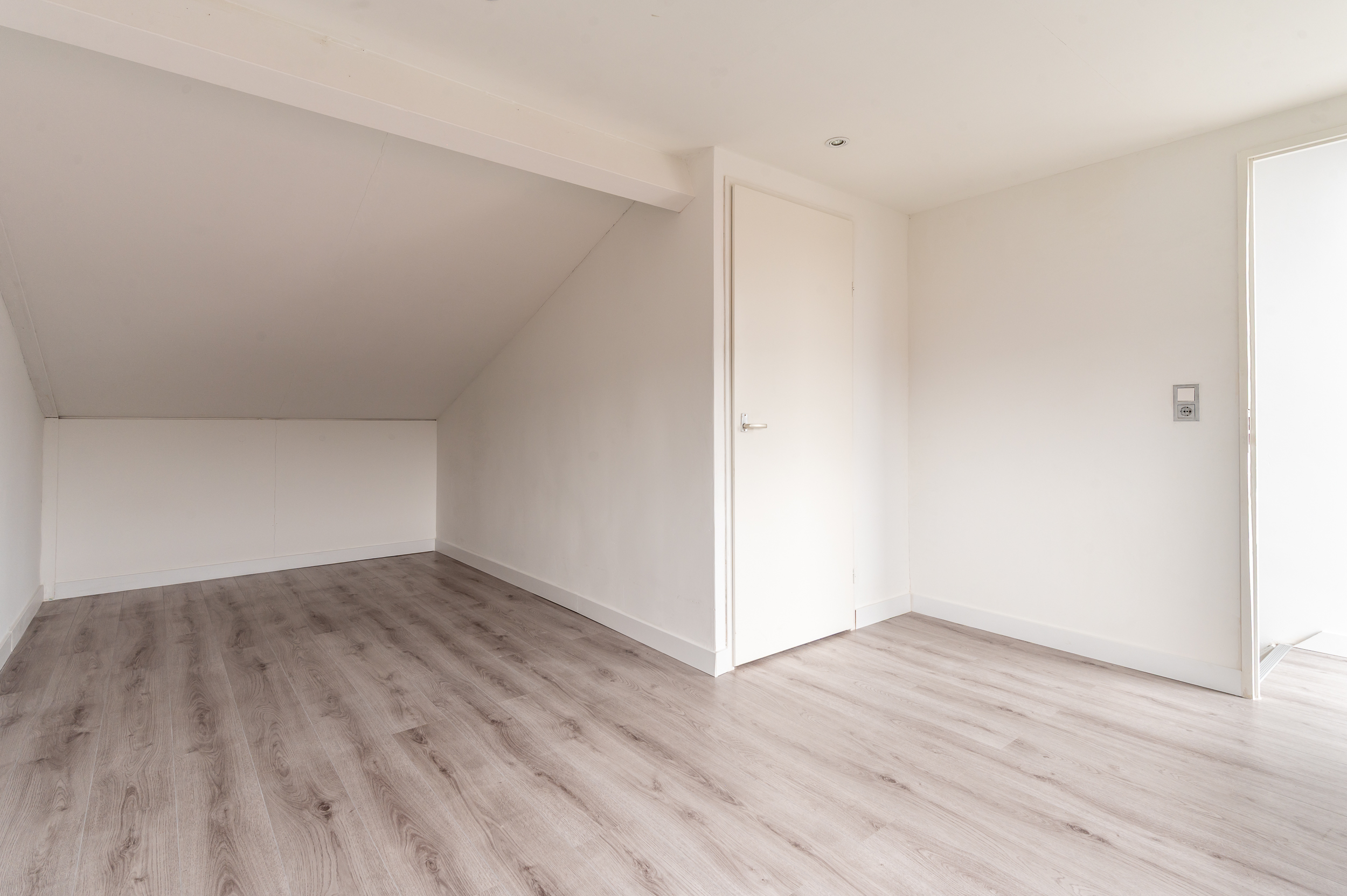 Tweede verdieping: overloop: vierde slaapkamer van 17,7m² welke toegang geeft tot een separate ruimte van circa 7m² met bergruimte achter de knieschotten.