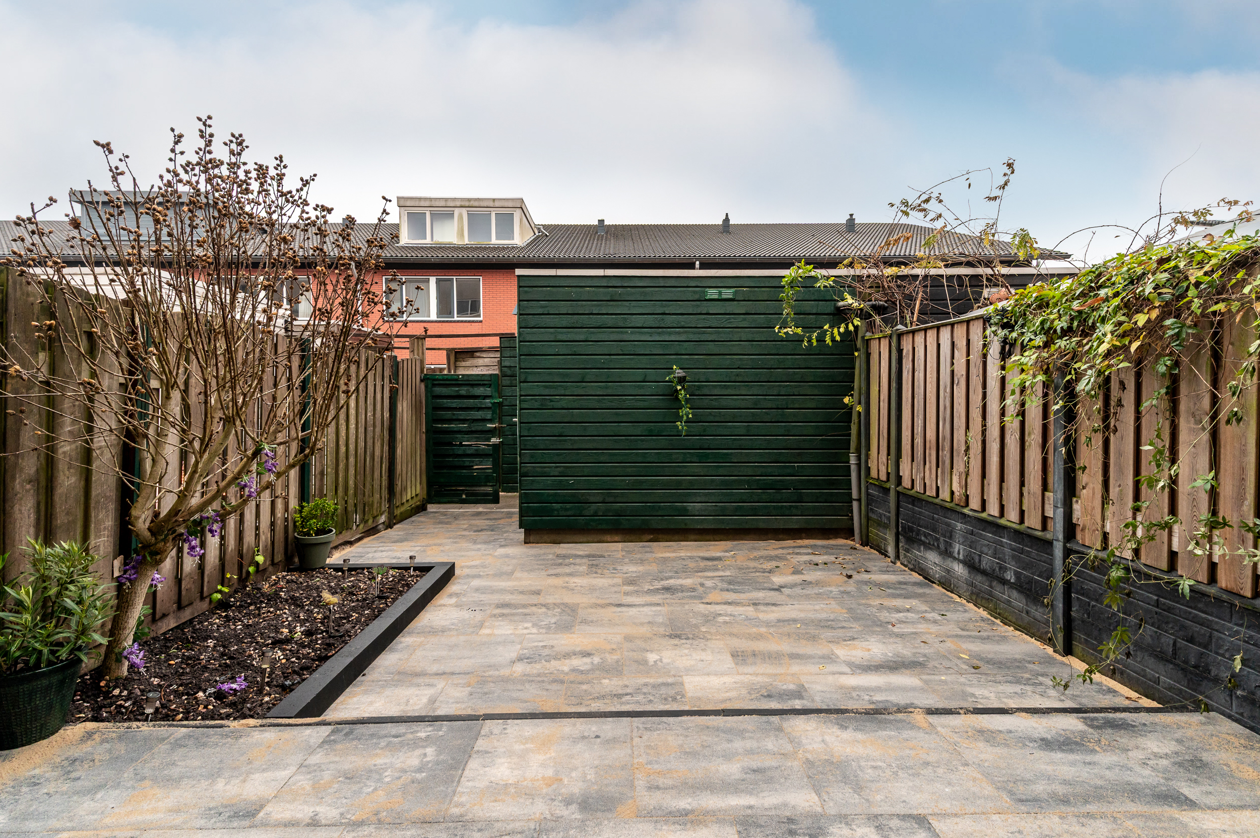 Buiten: Aan de voorzijde is de tuin voorzien van bestrating, beplanting en een carport met parkeermogelijkheid op eigen terrein. De achtertuin ligt op het zuidoosten en dus ideaal voor zon liefhebbers! De tuin is voorzien van vrijwel volledige bestrating, enige beplanting, een vrijstaande houten berging en een houten/betonpalen erfafscheiding met een achterom.