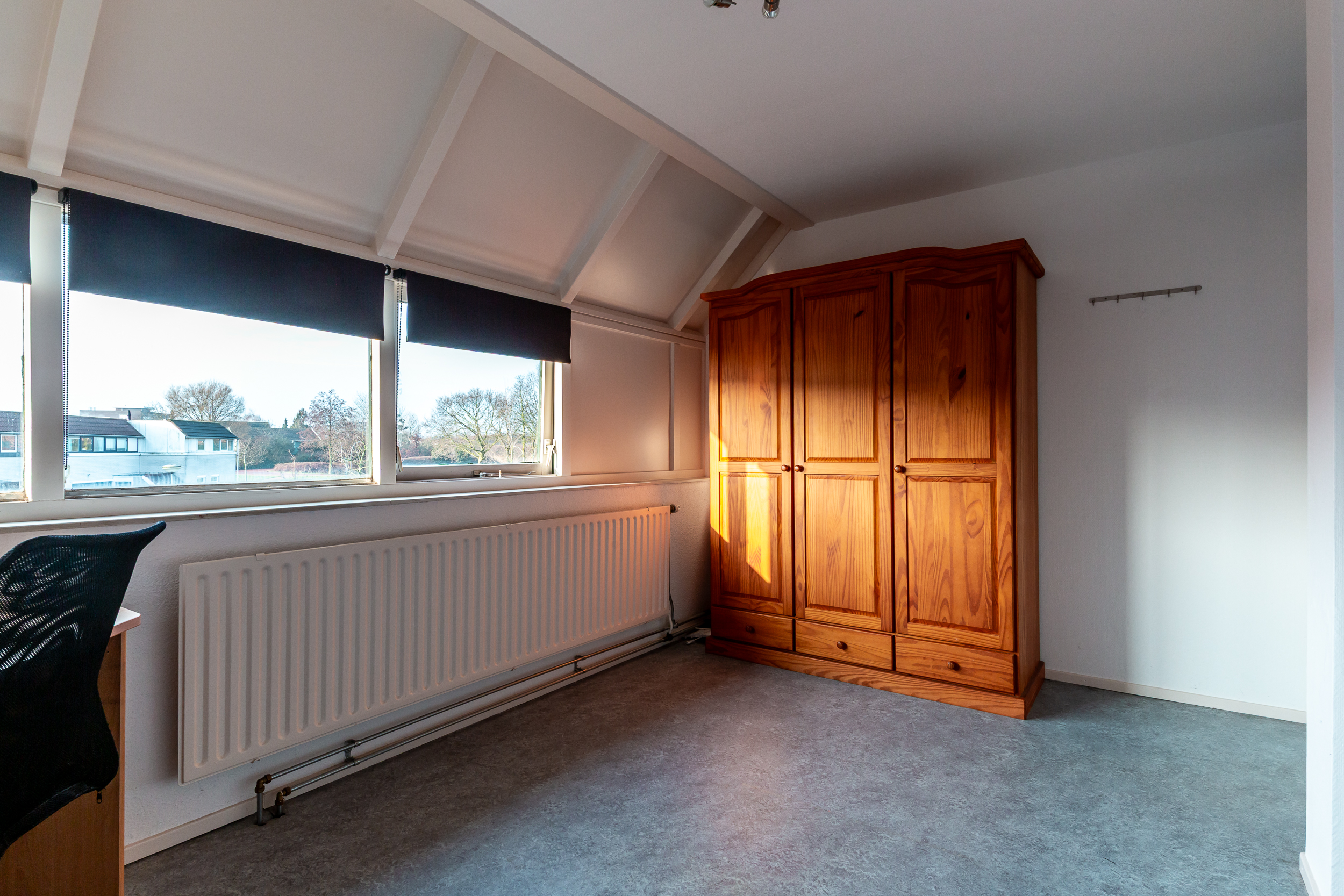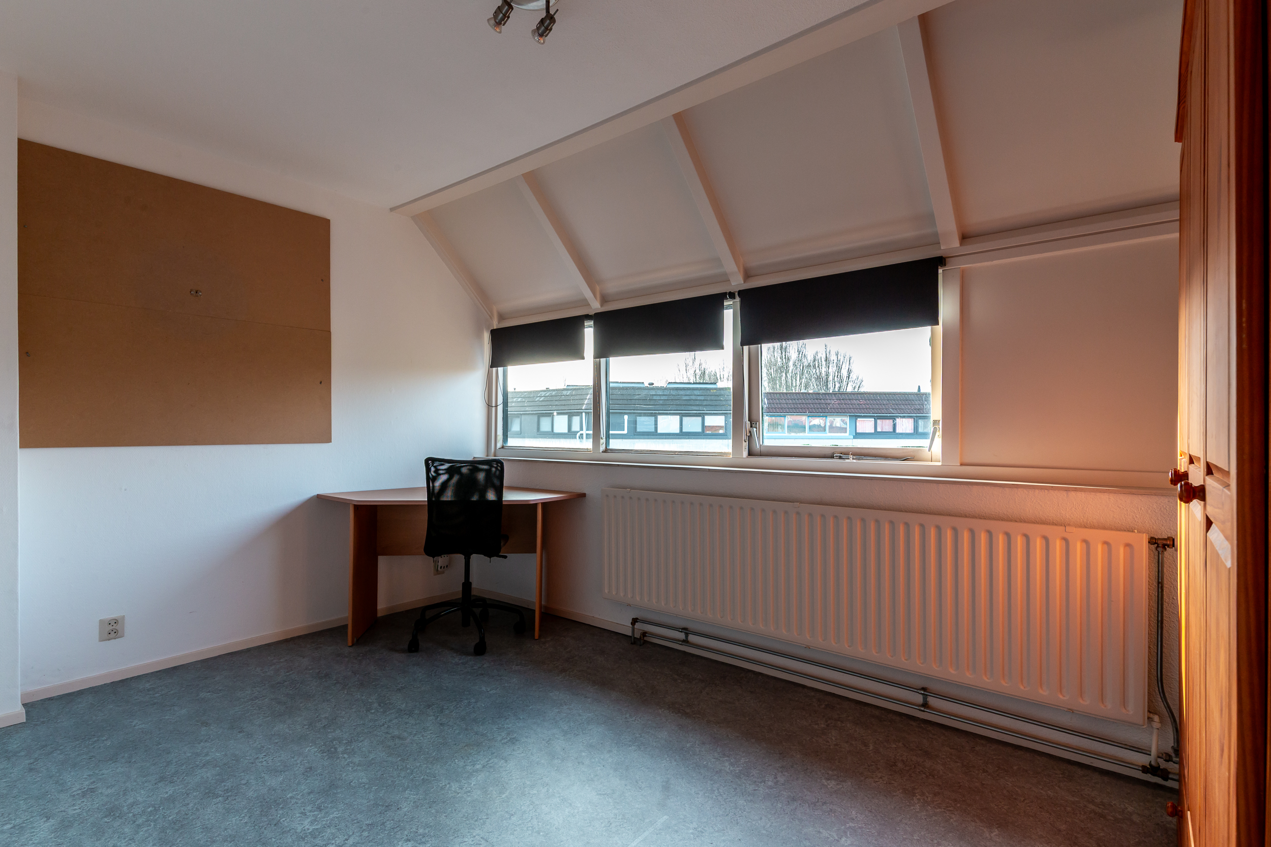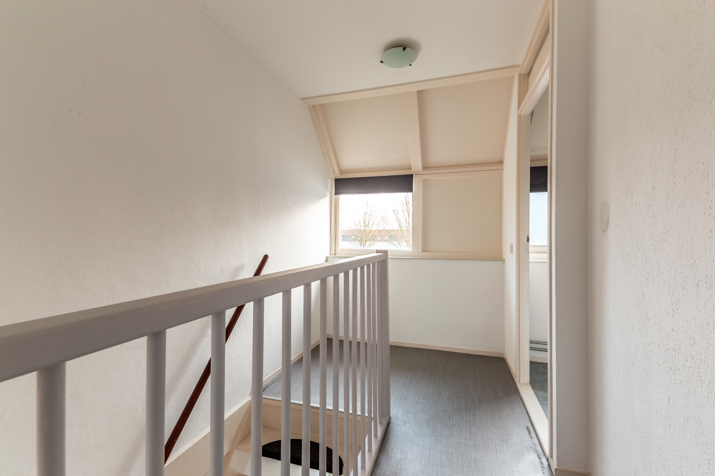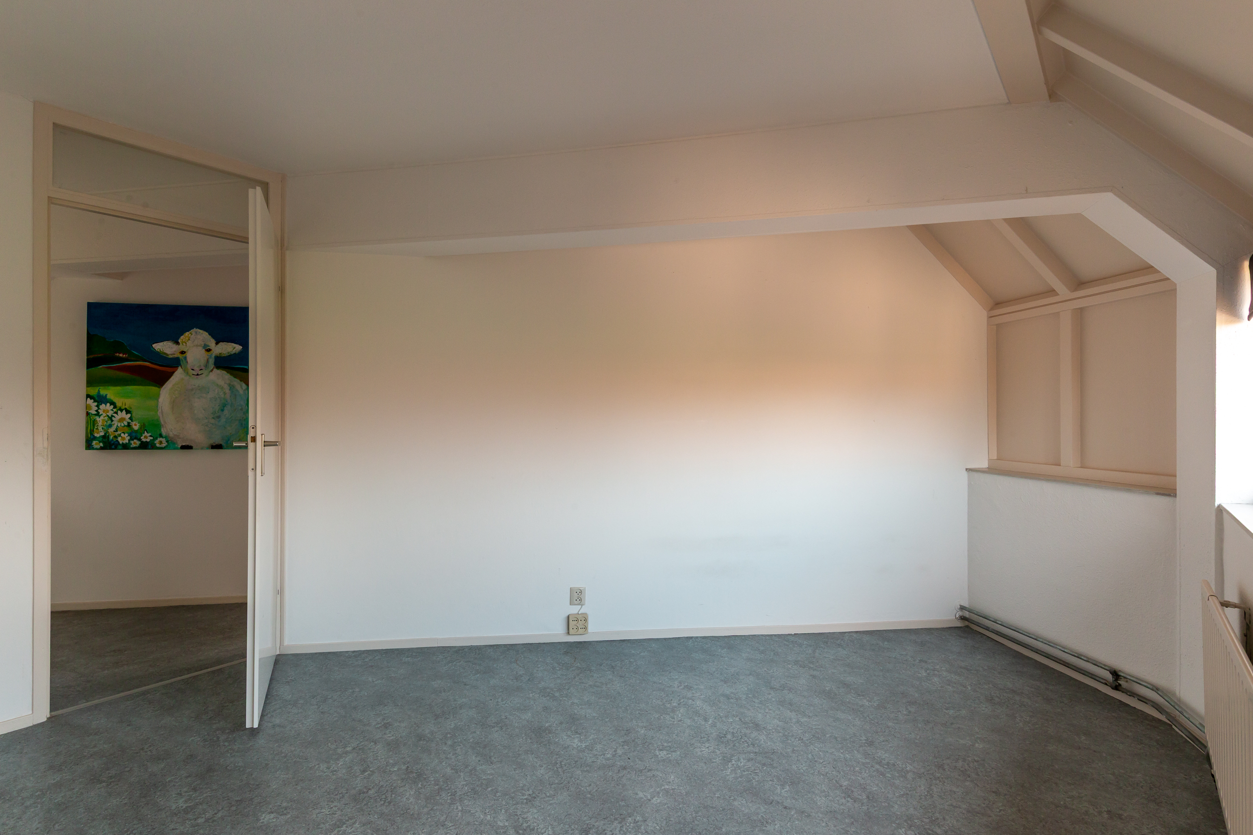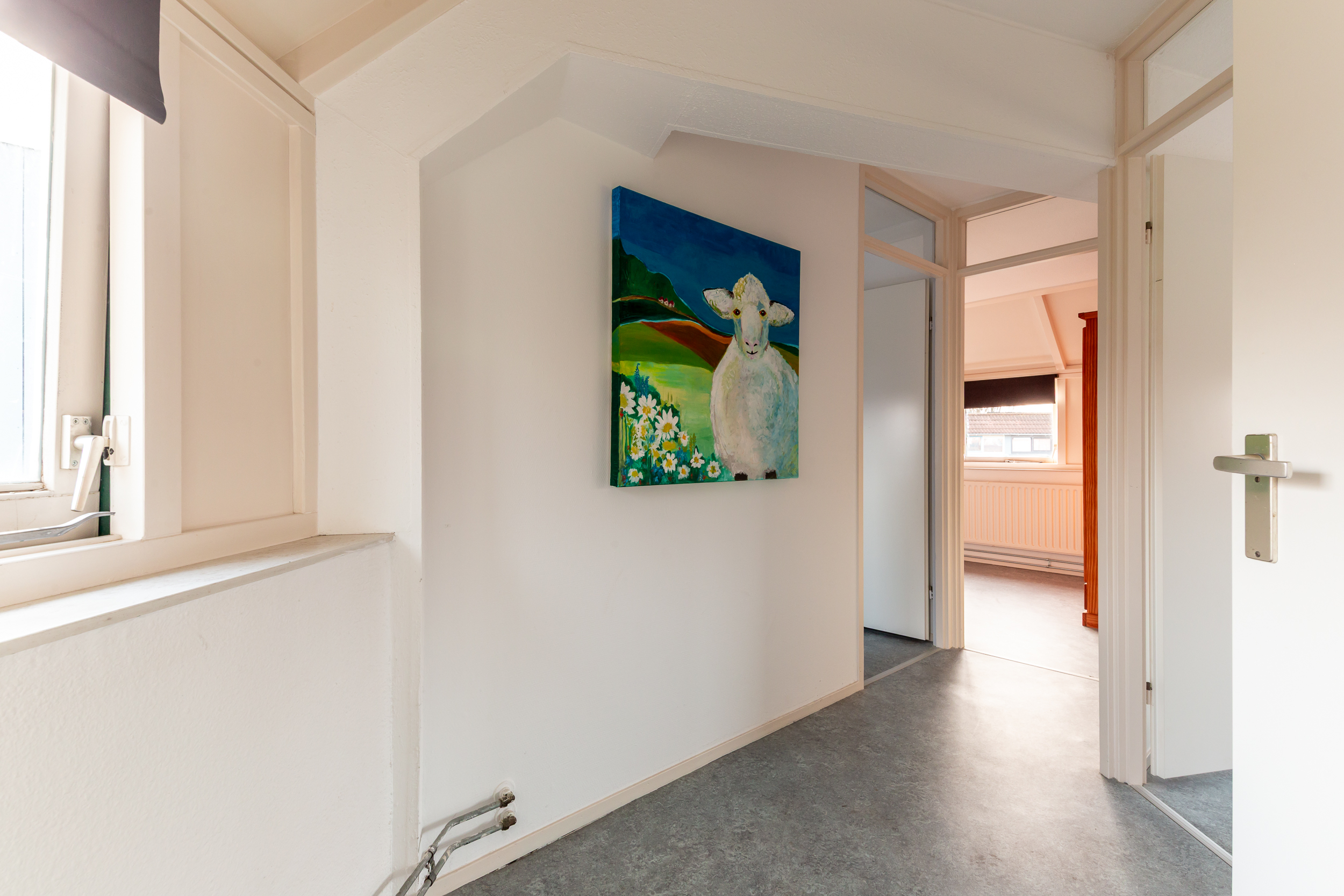 Deze verdieping is voorzien van een marmoleum zeil vloerbekleding.