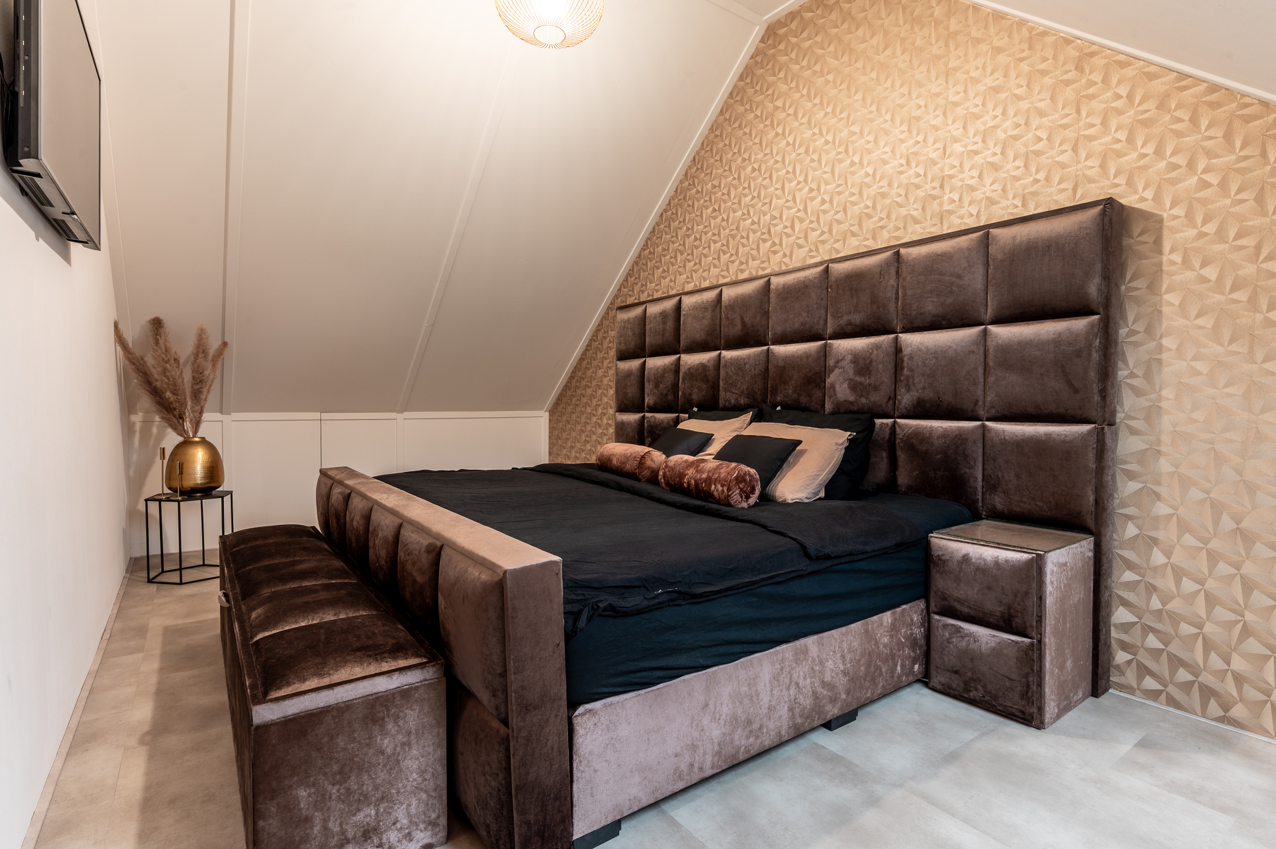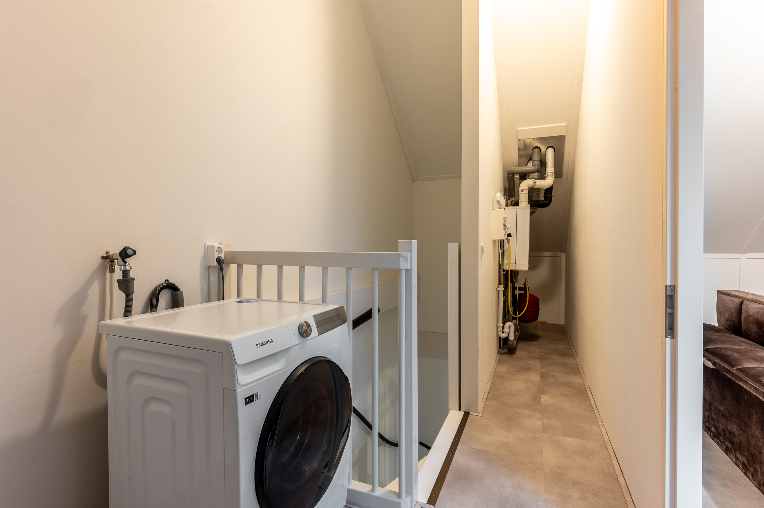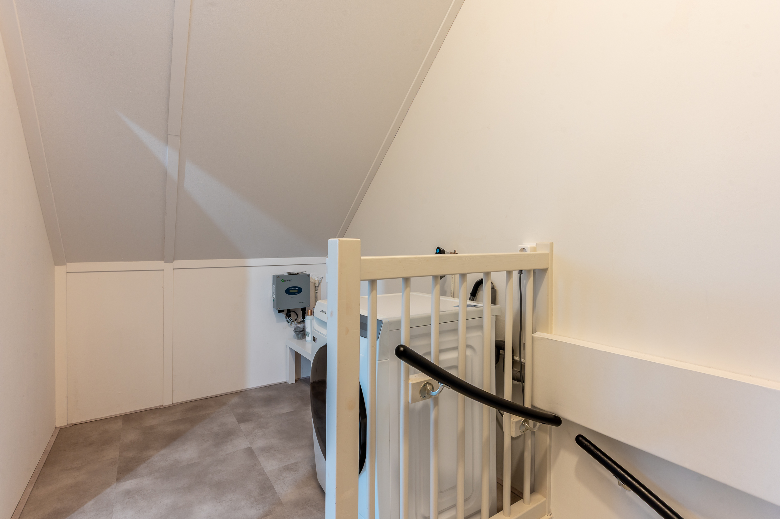 Tweede verdieping: Via vaste trap te bereiken verdieping met op de overloop de opstelplaats van de cv-ketel, mechanische ventilatie unit, omvormer van de 6 zonnepanelen, de wasmachineaansluiting en bergruimte; tevens treft u hier een ruime vierde slaapkamer van bijna 17m² aan. Ook deze verdieping is voorzien van een gelijke PVC vloer.