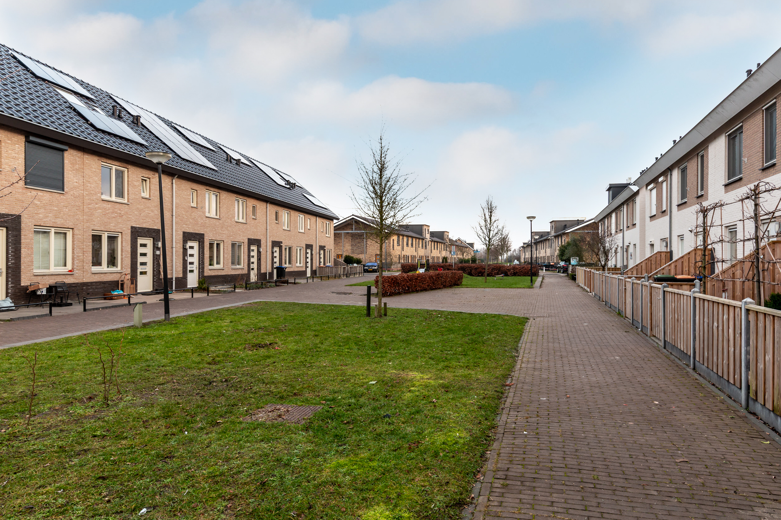 U komt te wonen in een brede, autovrije straat met tussenliggend groen waar uw kinderen veilig door de voordeur naar buiten kunnen lopen en voor de deur kunnen spelen.