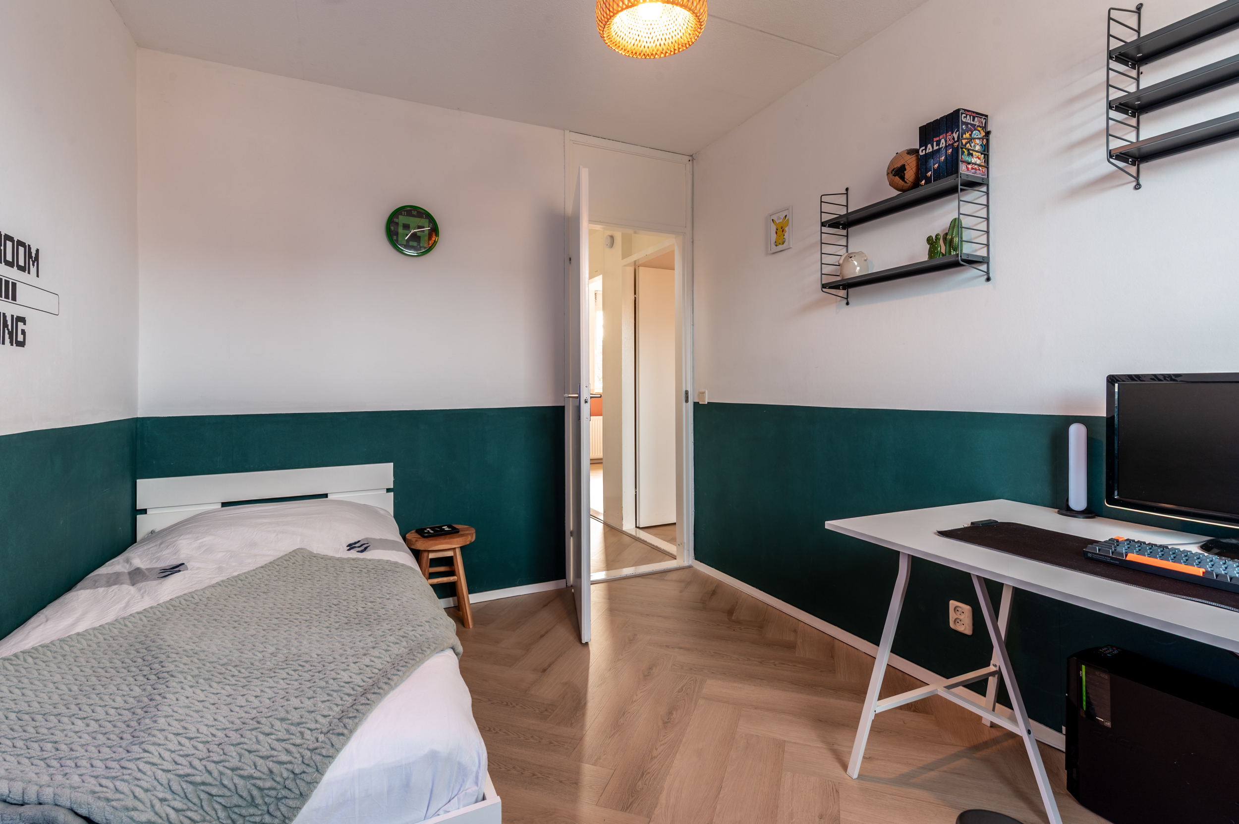 De verdieping is eveneens voorzien van een visgraat PVC vloer.