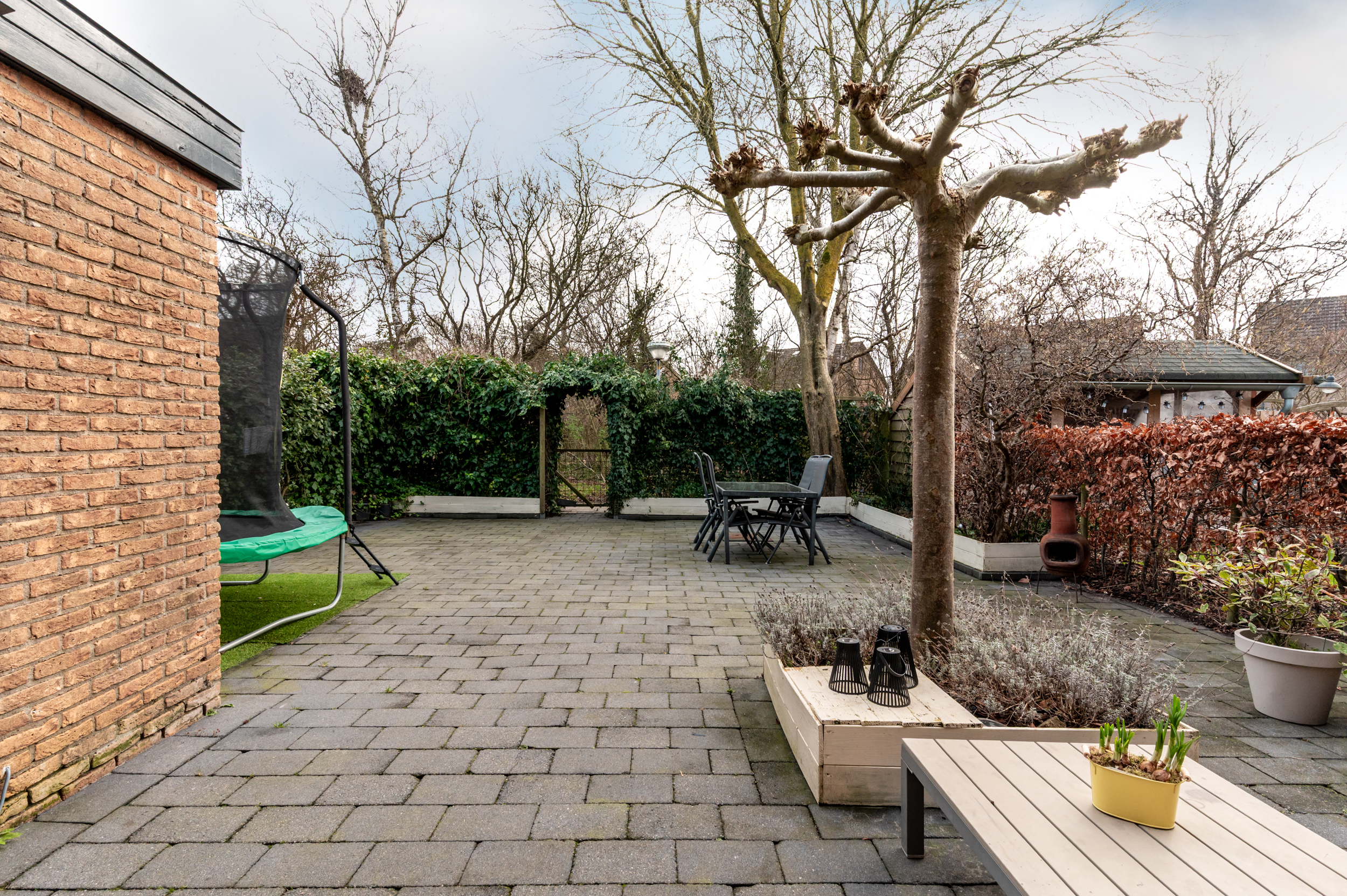 Tuin: De op het zuidoosten gelegen achtertuin meet 8,8 x 12 meter, is voorzien van een heerlijk ruim terras bij de woning welke doorloopt in een terras achterin de tuin; deze tuin biedt, door de ligging aan gemeentelijk groen, de nodige privacy en is ideaal gelegen wanneer u van van de zon wil genieten; de tuin is verder voorzien van een erfafscheiding en diverse beplanting. Vanuit de tuin is de garage toegankelijk.