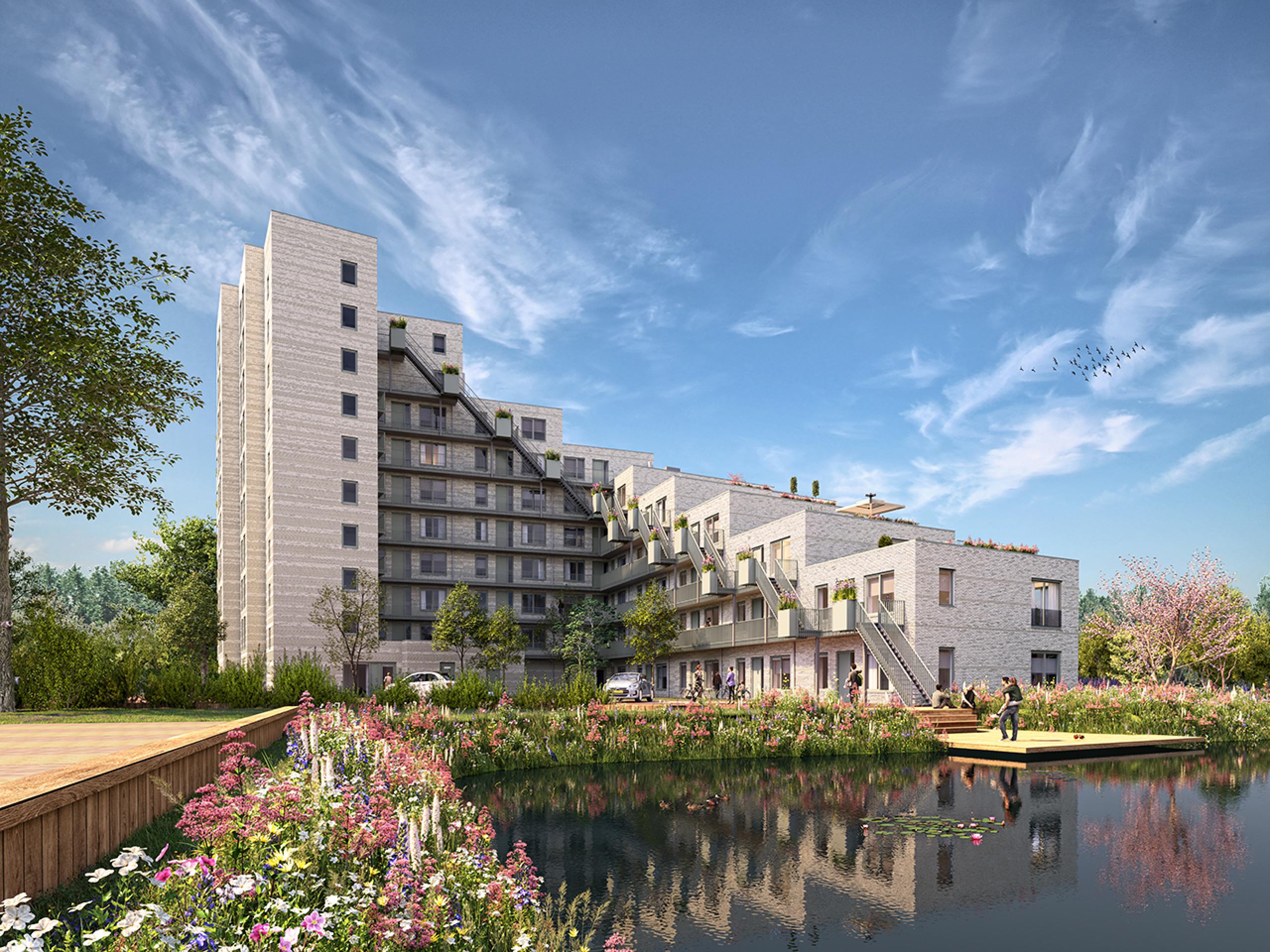 Green Hill is een project van Vazet creatie en ReadyforLiving en bestaat uit 49 appartementen in diverse afmetingen aan het Woldpark in Lelystad.