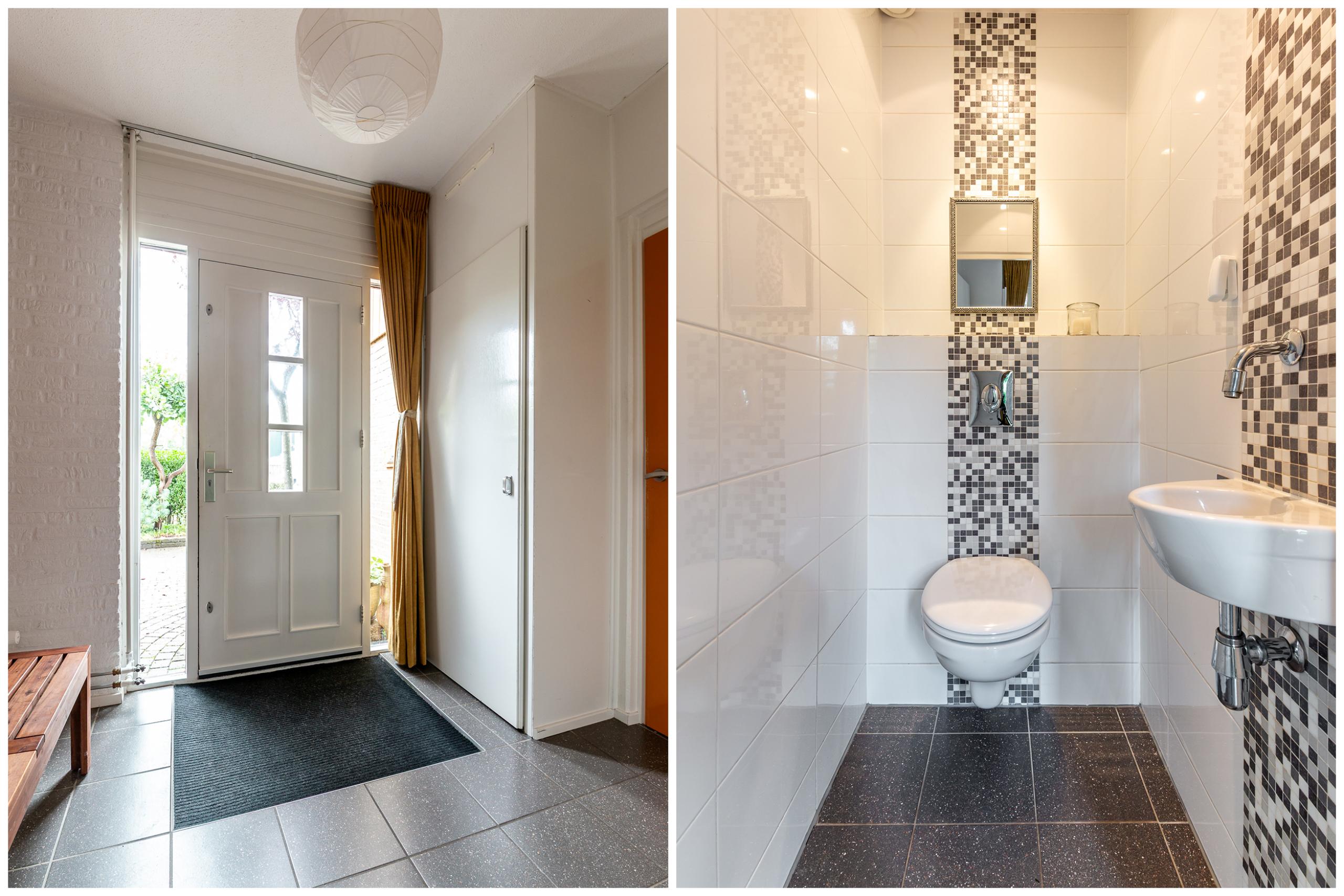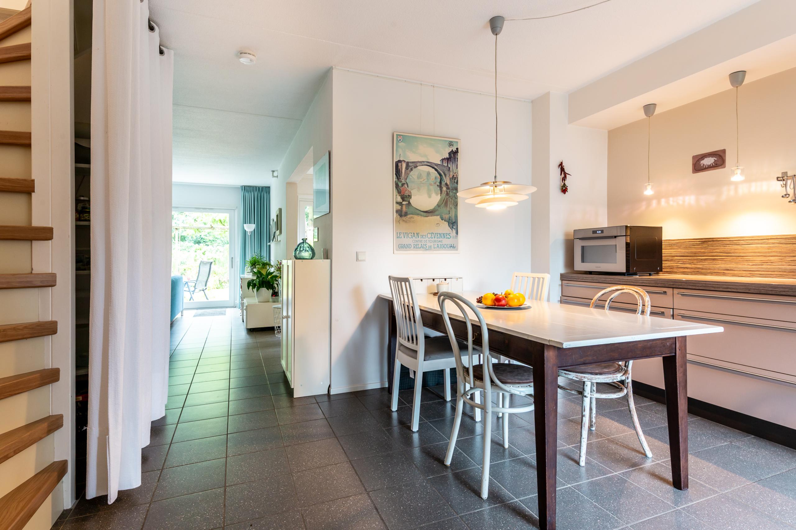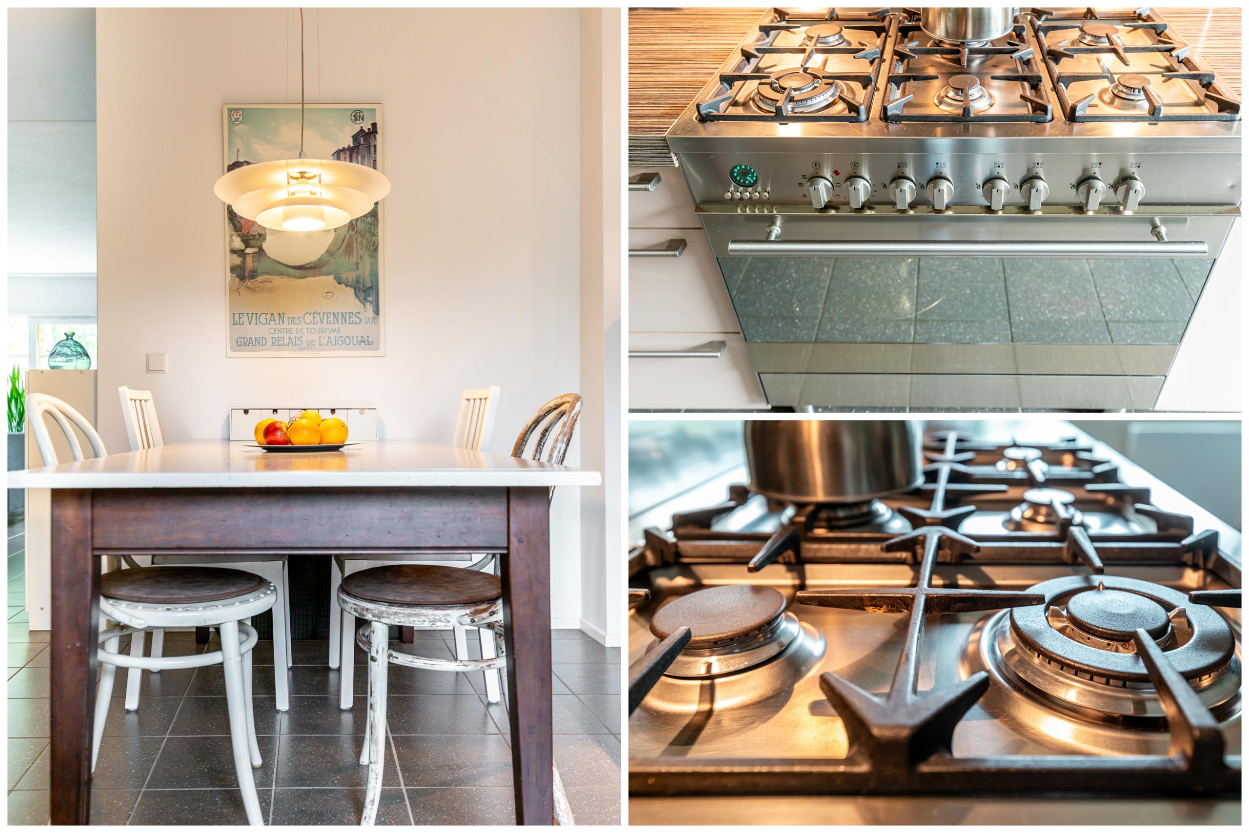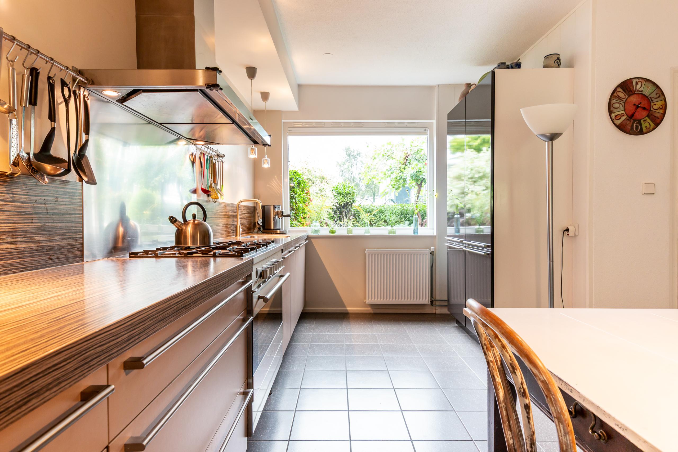 Begane grond: Entree; hal met meterkast (vernieuwd in 2024), inpandige garage (ruim 19m²), fraai, volledig betegeld vrijhangend toilet met fonteintje en doorgang naar de keuken en woonkamer; woonkeuken (2007) welke is uitgevoerd in een warme kleurstelling en voorzien van de navolgende apparatuur: fornuis met electrische oven en 6-pits gaskookplaat, RVS afzuigschouw, losse combimagnetron (2019), inbouw koelvriescombinatie (2024), volledig geïntegreerde vaatwasser (2024) en veel werk/kastruimte; in de keuken is voldoende ruimte voor een eettafel; tuingerichte woonkamer en zijkamer, van totaal ongeveer 41 m², met een houtkachel en middels twee schuifpuien toegang tot de tuin.