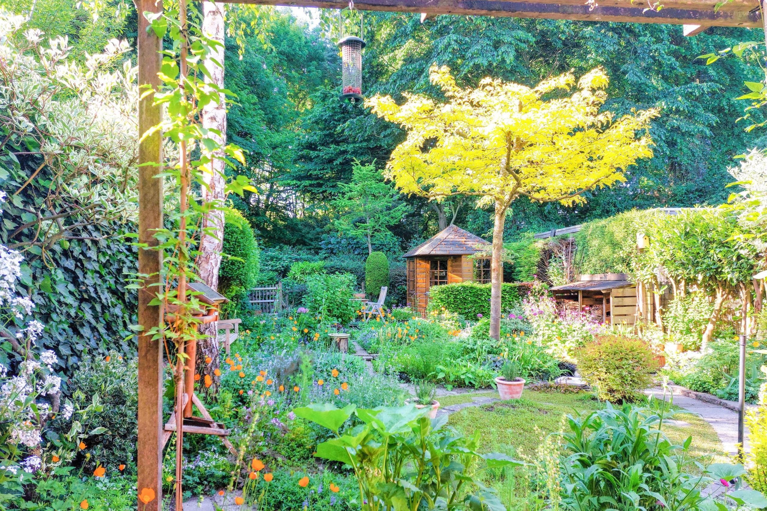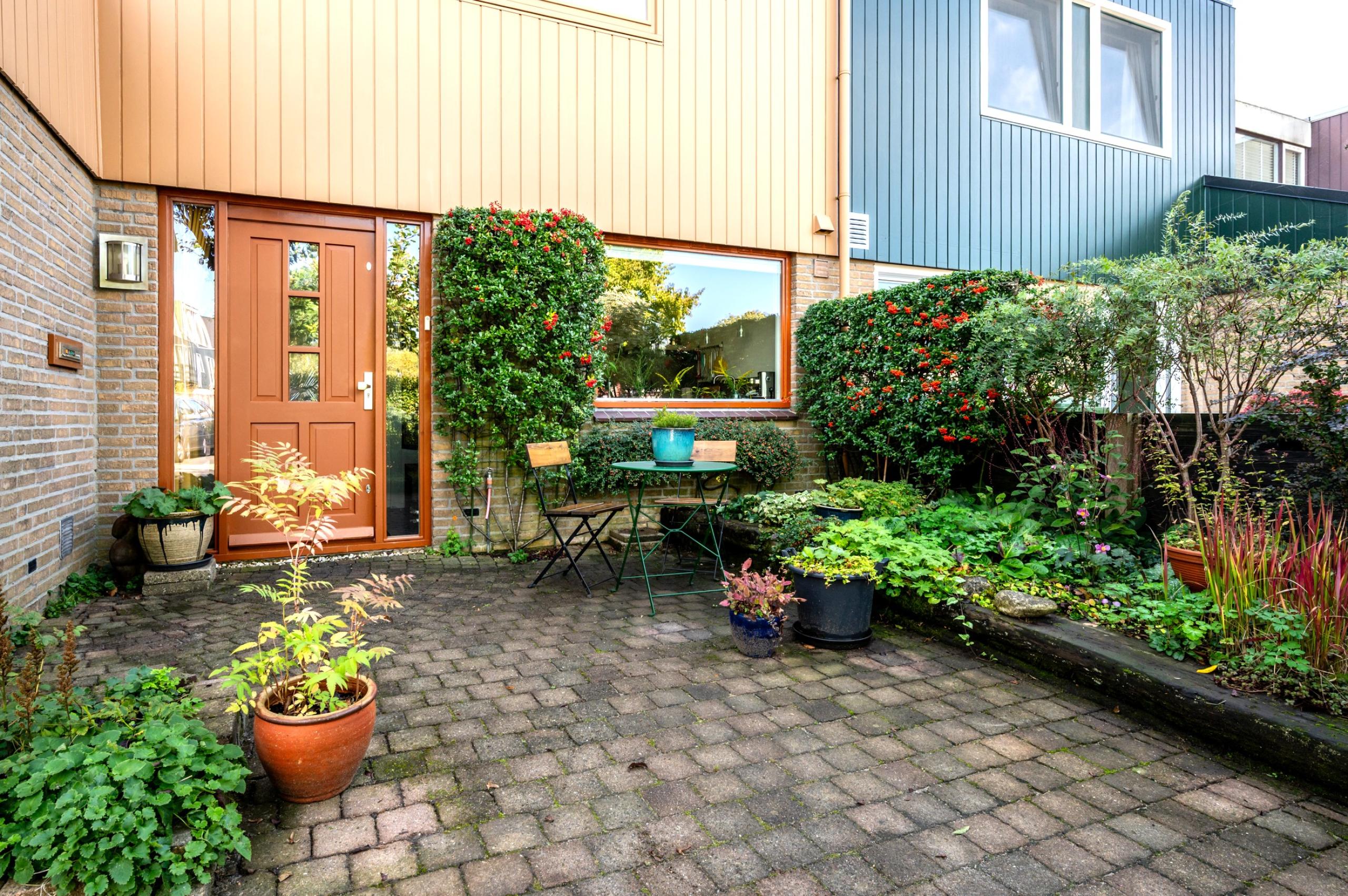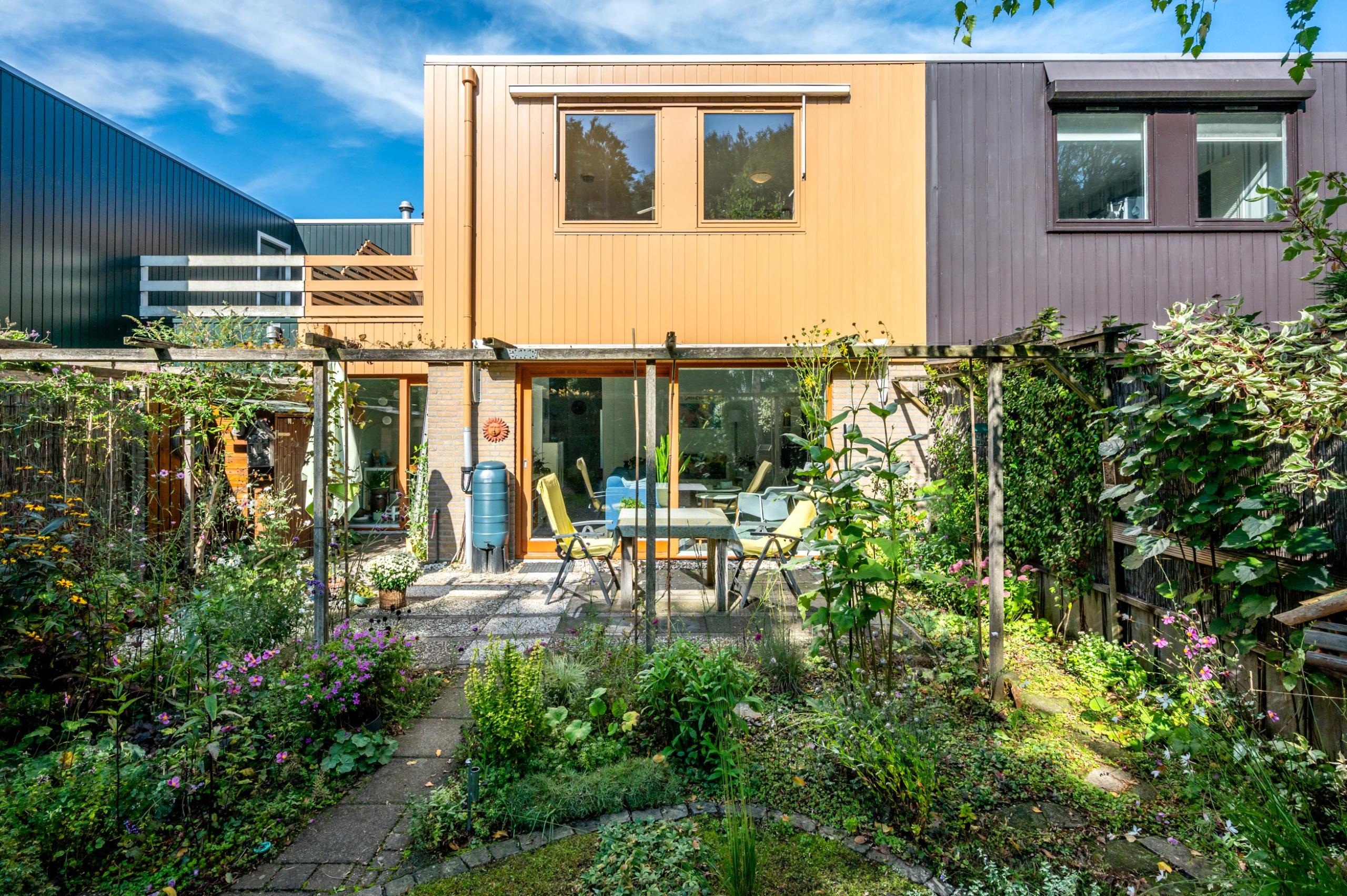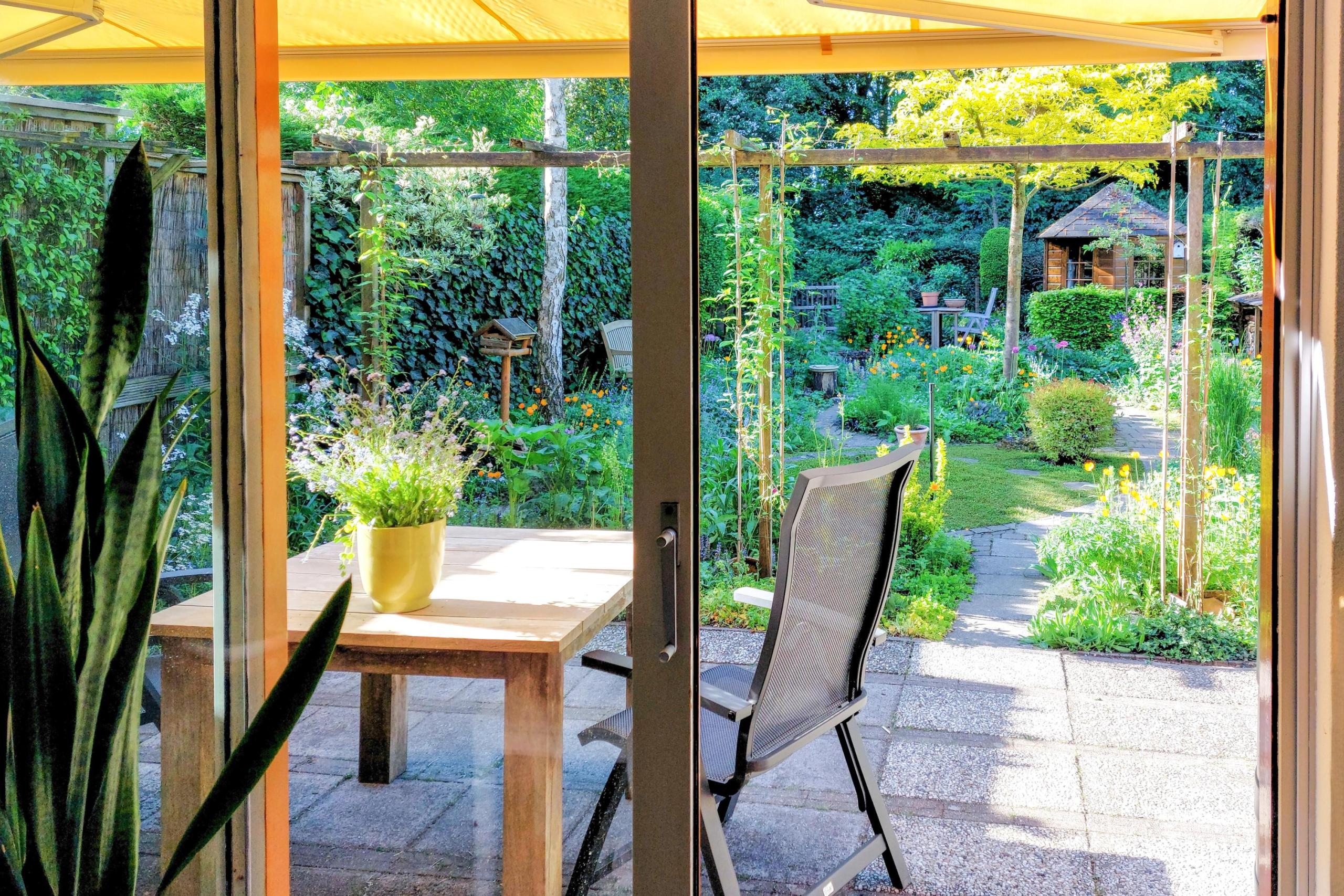 Tuin: De prachtig aangelegde, op het zuiden georiënteerde tuin heeft een afmeting van ongeveer 8 meter breed bij x maar liefst 20 meter diep, welke is voorzien van een ruim terras bij de woning. Naast een grote diversiteit aan fraaie en bijzondere beplanting is de tuin tevens voorzien van een tuinkast, een schuur en een tweede terras. De voortuin is eveneens mooi aangelegd en naast parkeergelegenheid op eigen terrein ook voorzien van fraaie, privacy biedende beplanting.