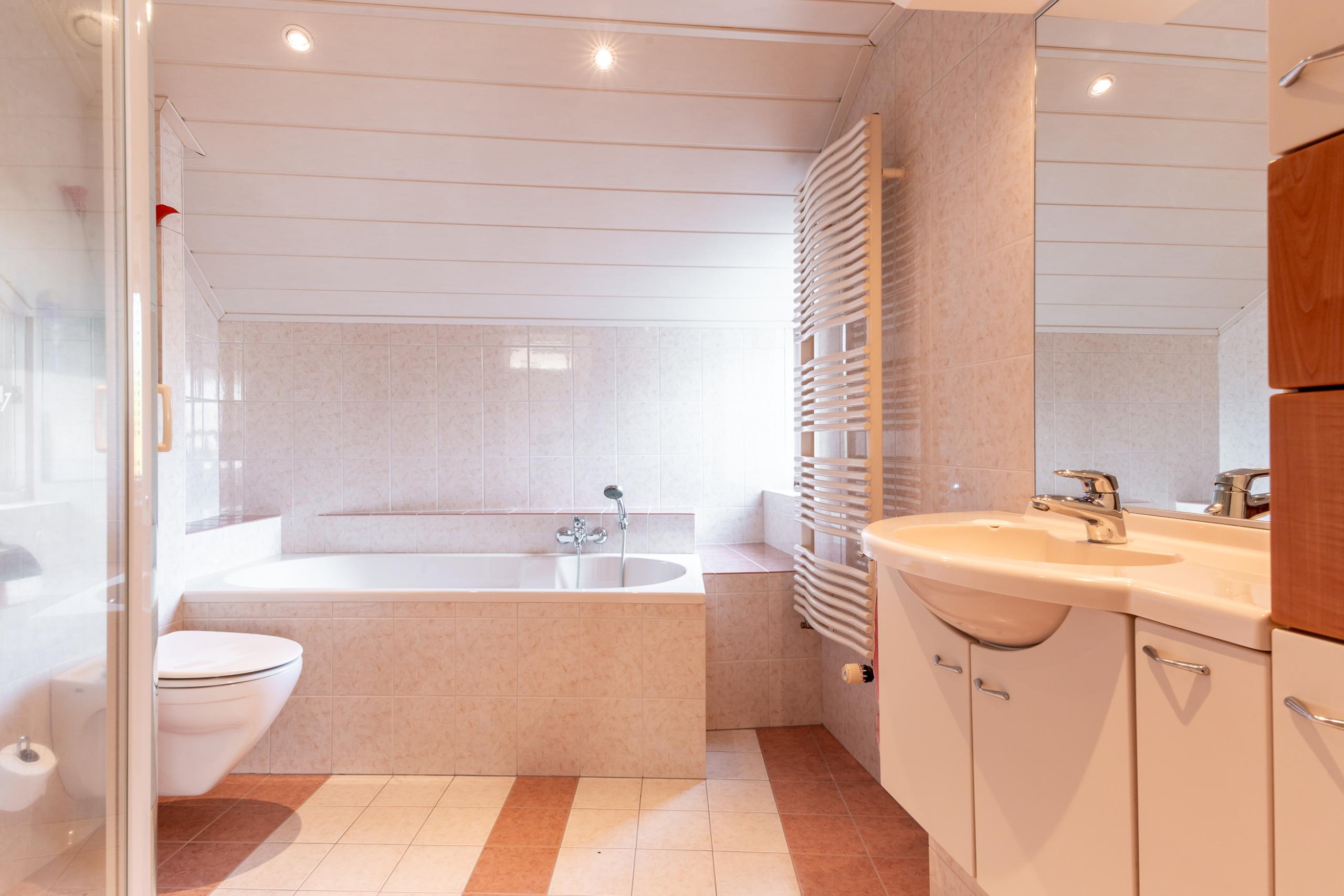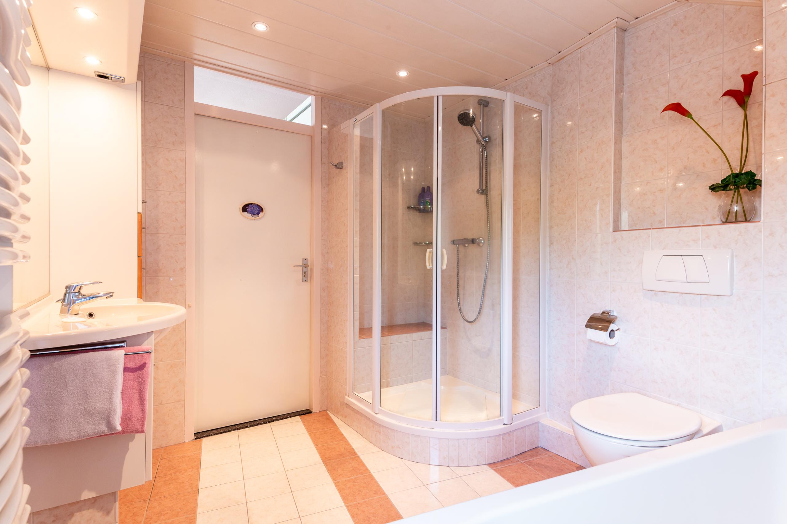 Eerste verdieping: Overloop; drie slaapkamers (respectievelijk circa 8,8 / 11,4 en 15m²) waarvan de middelste is voorzien van een wastafel; volledig betegelde badkamer welke is voorzien van een ligbad, separate douchecabine, vrijhangend toilet, designradiator en een wastafelmeubel. Tevens beschikt de badkamer over een raam voor natuurlijke ventilatie en daglichttoetreding.