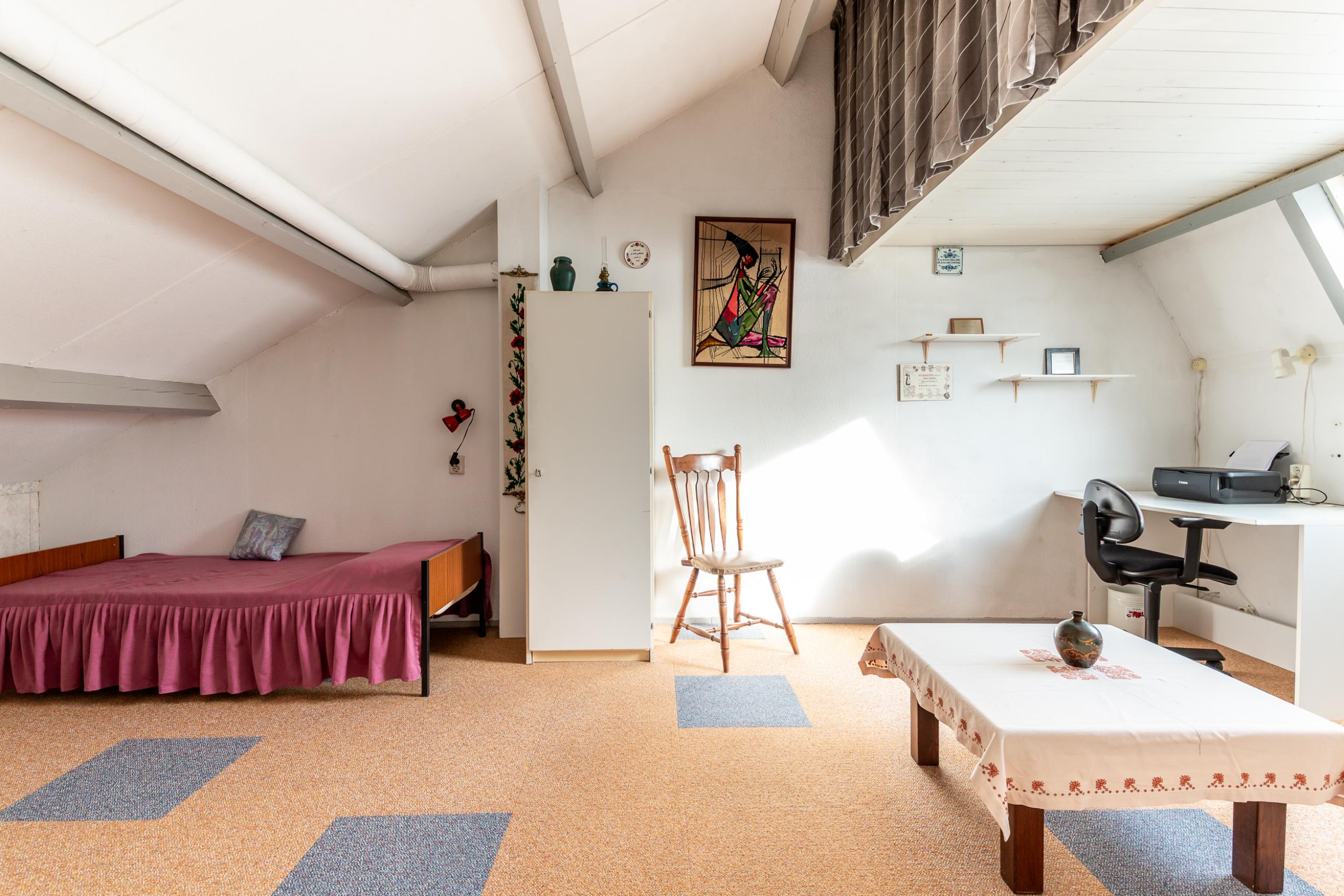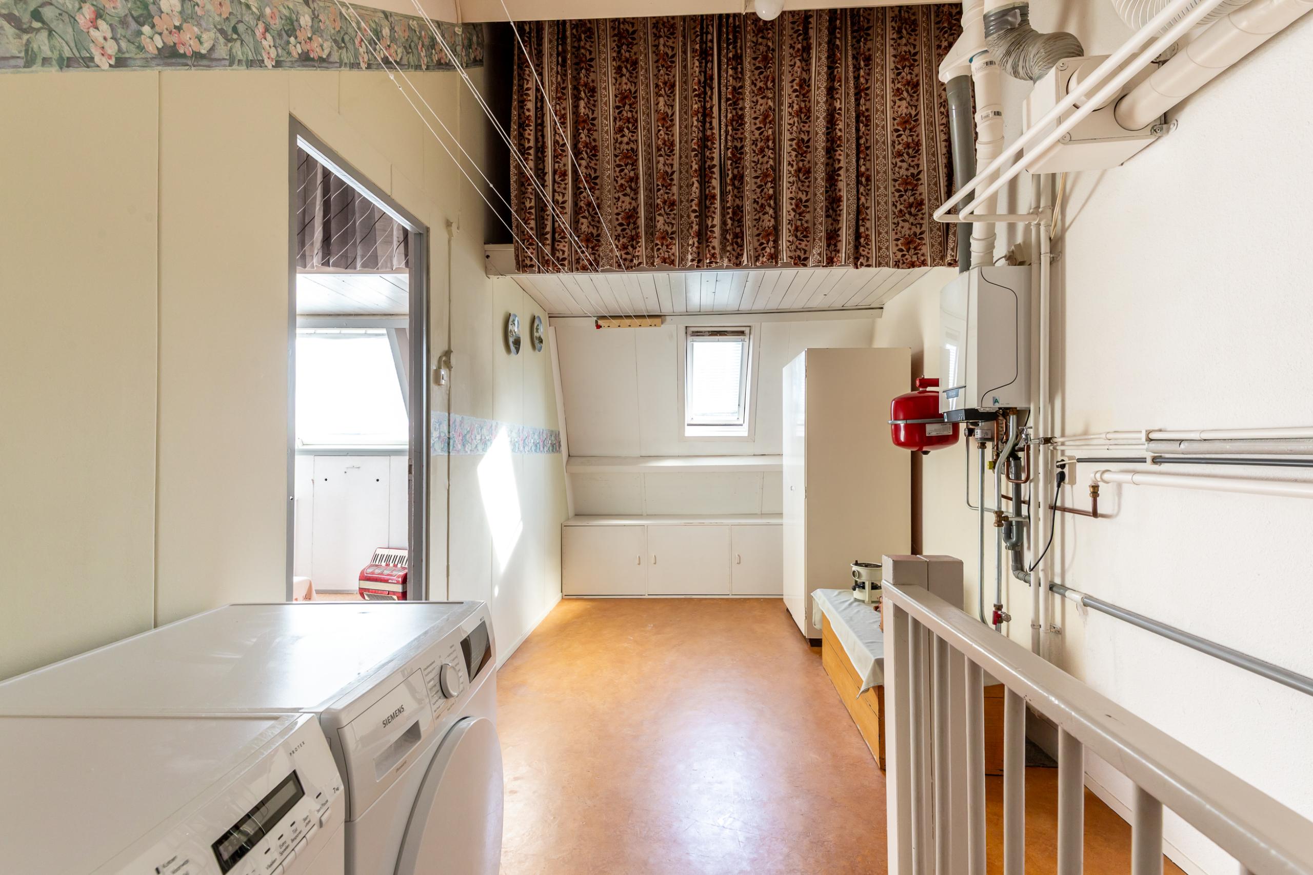 Tweede verdieping: Voorzolder met de opstelling van de CV installatie alsmede de wasmachine- en droger installatie, ruime vierde slaapkamer (circa 16,5m²) met een dakraam en bergruimte achter de knieschotten.