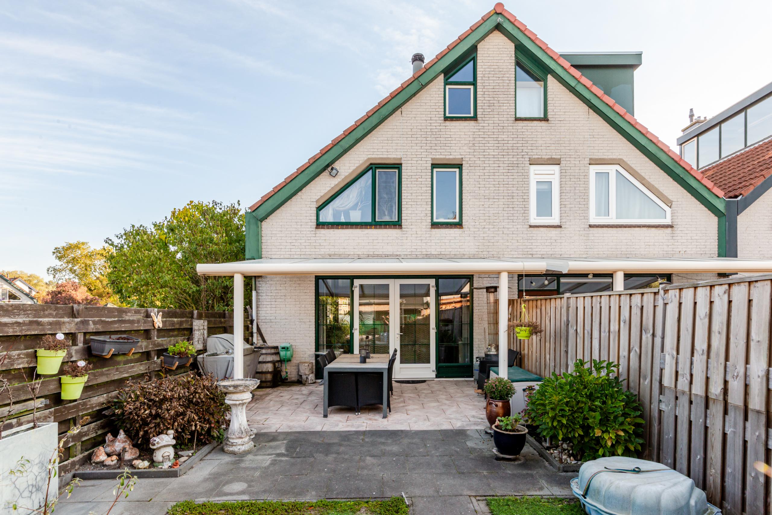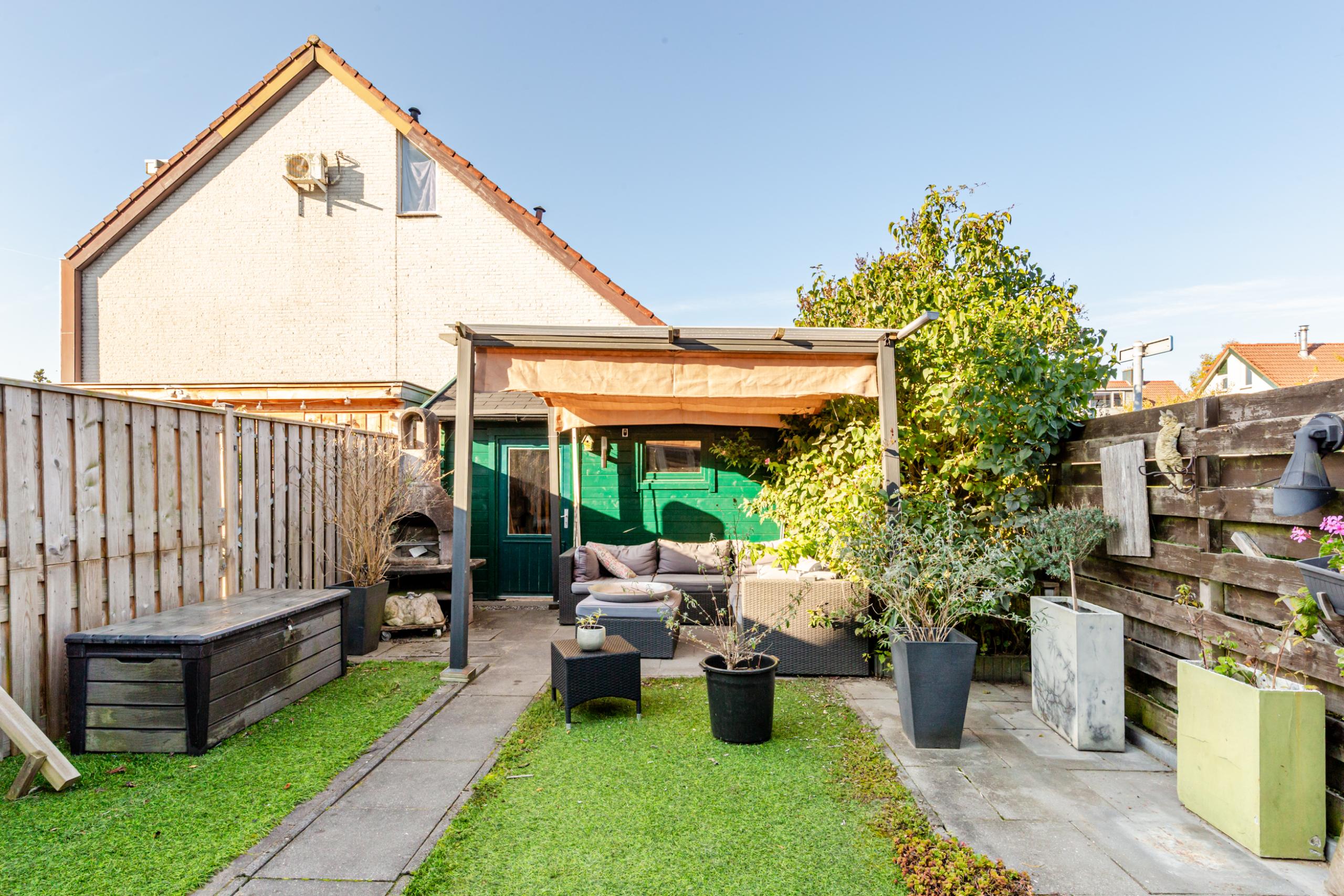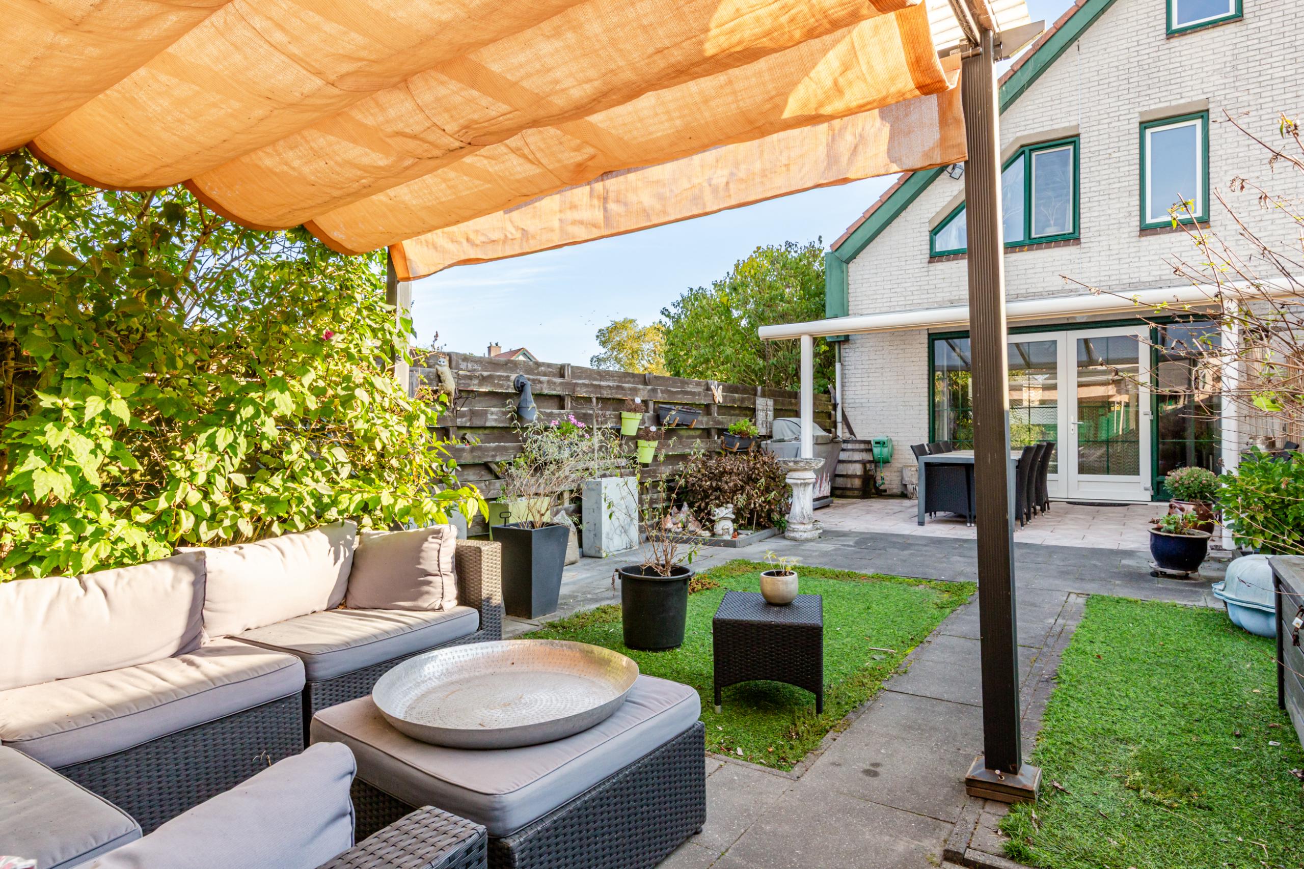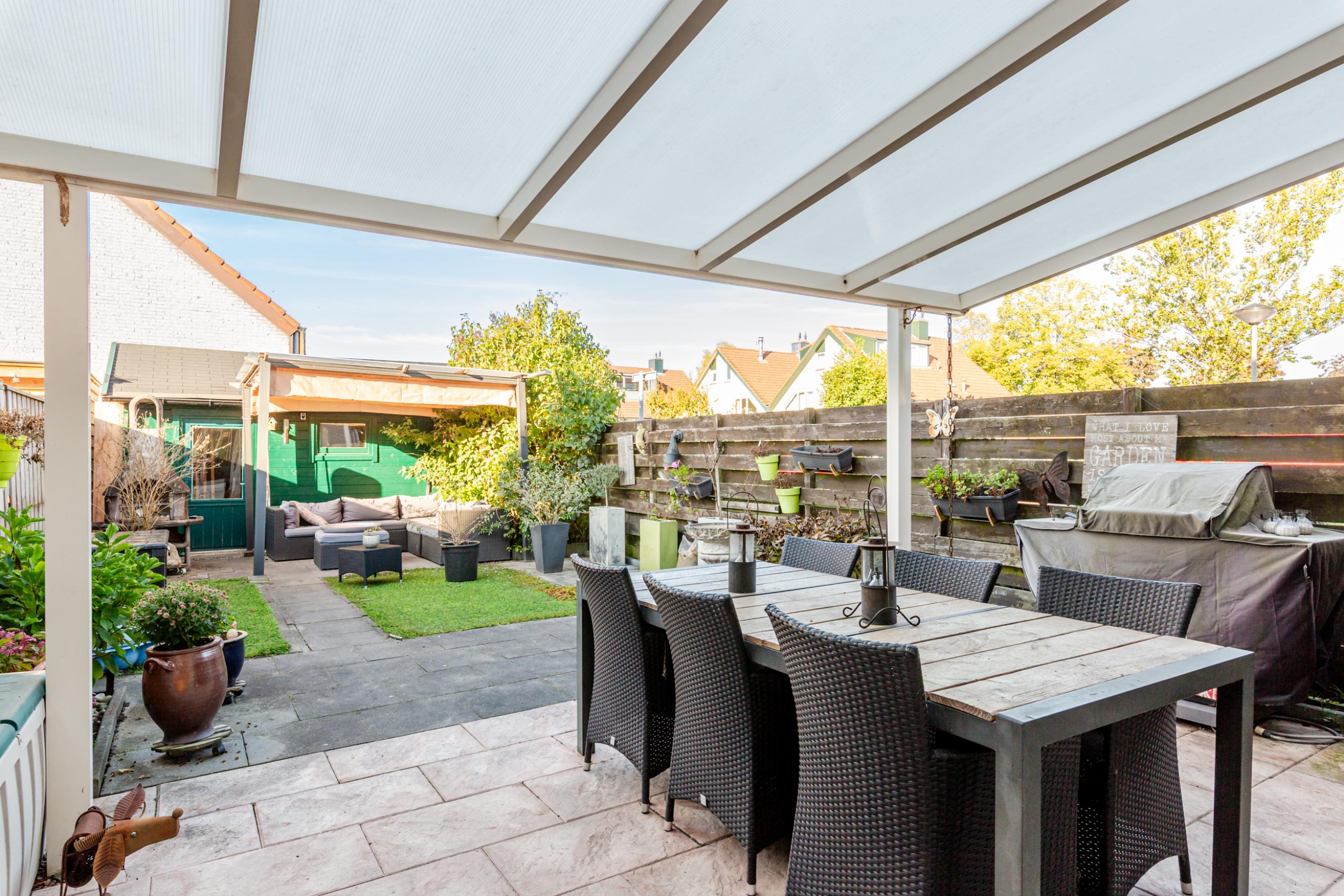 Tuin: Een bijna 16 meter diepe achtertuin is op het westen georiënteerd en is onder andere voorzien van bestrating, een houten berging/garage (3,33 x 5,14 meter), een heerlijke overkapping / veranda (circa 5,17 x 3,45 meter) en diverse beplanting. Via de berging/garage beschikt u tevens over een achterom.