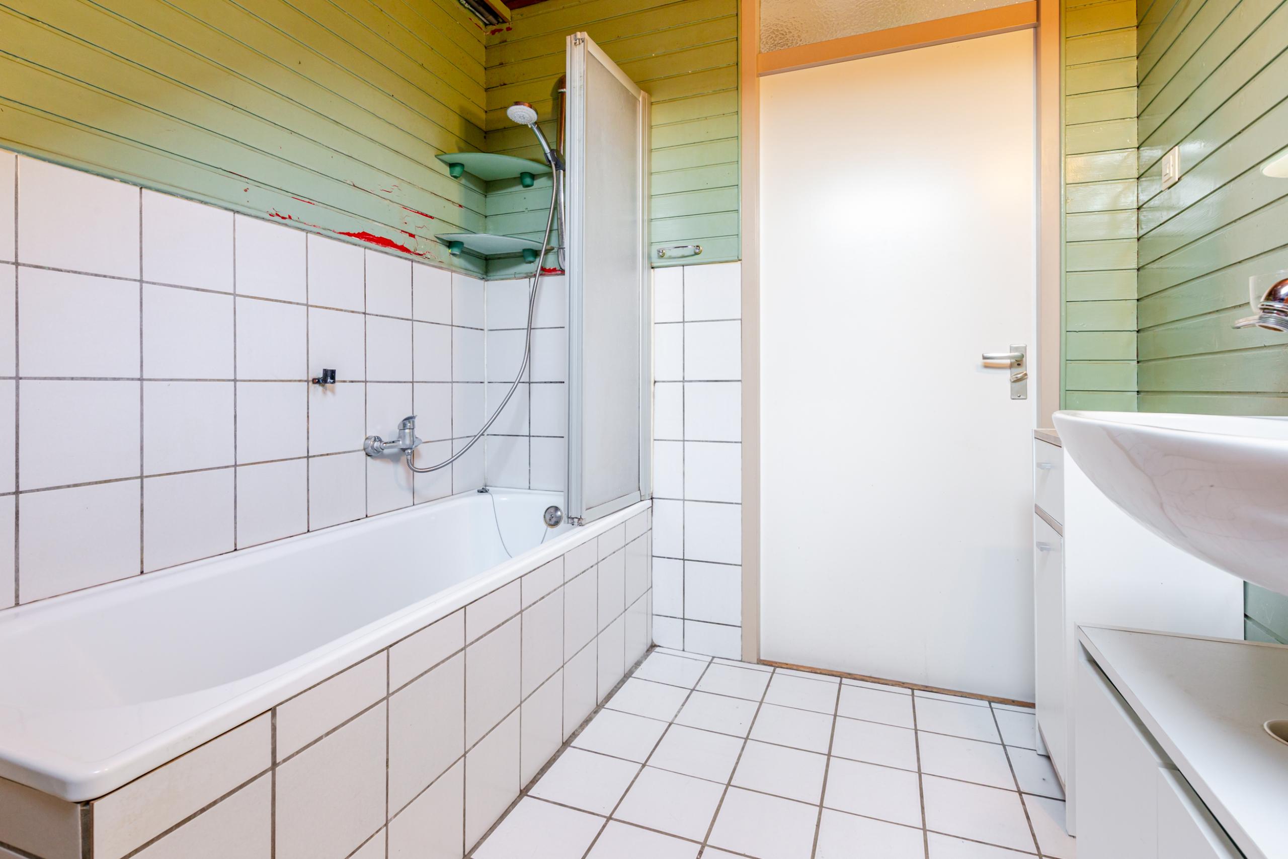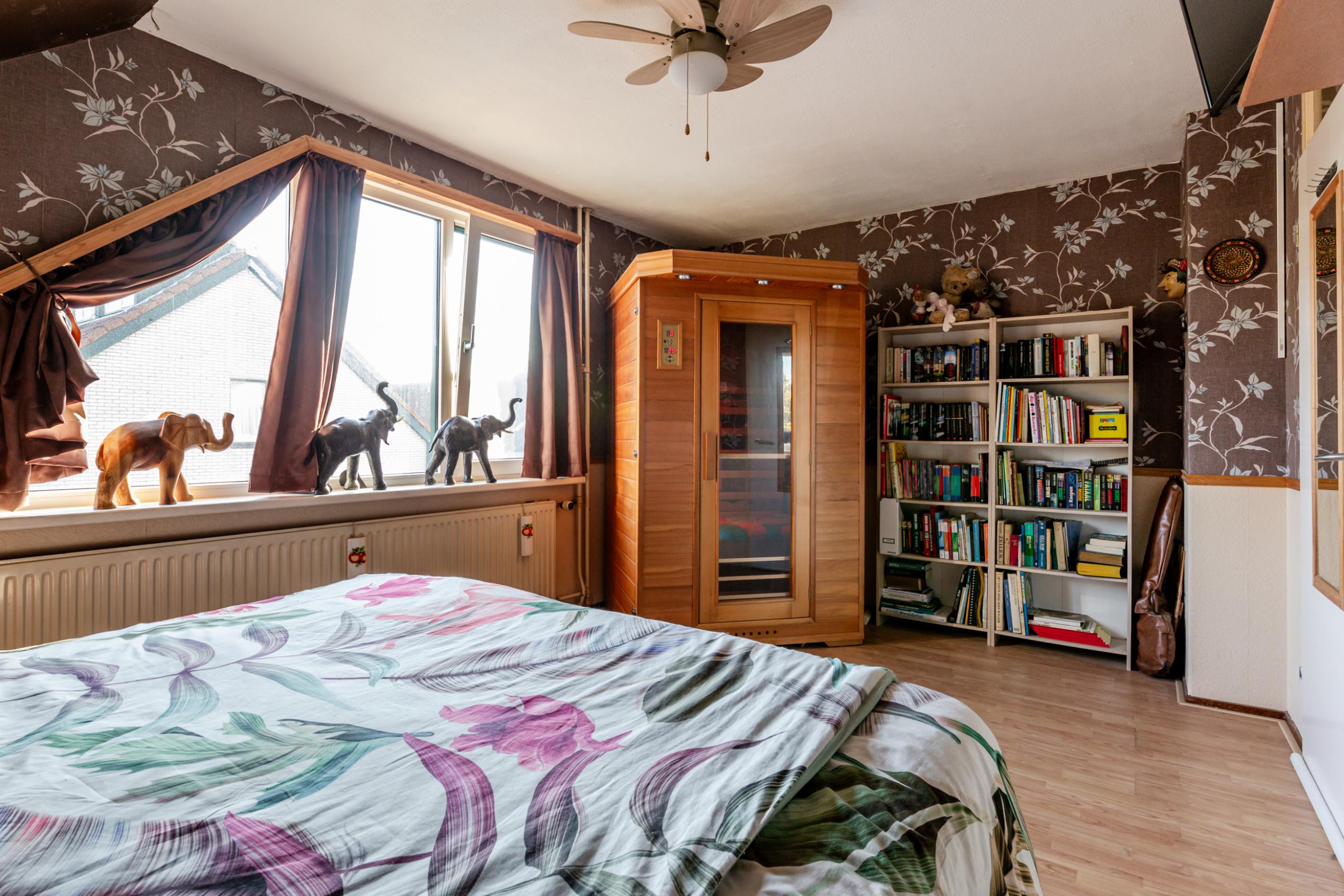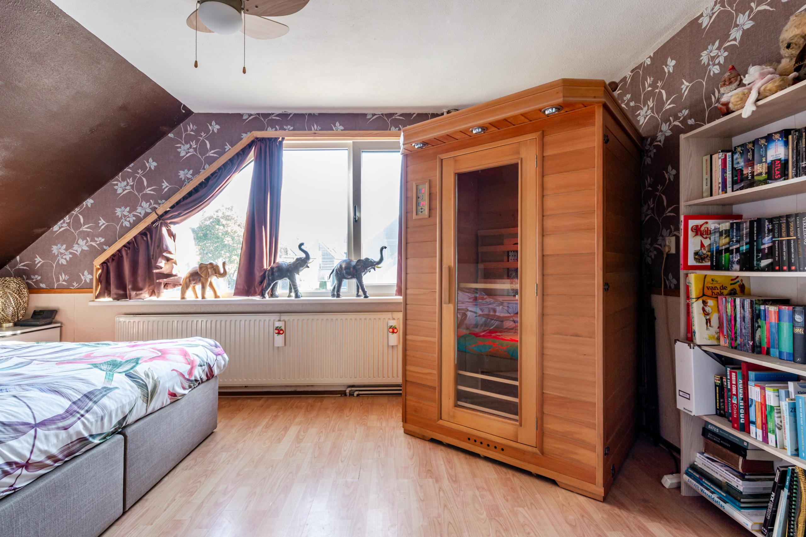 Eerste verdieping: Overloop met vaste kast; drie slaapkamers (respectievelijk circa 6,3 / 9,7 en 13,9m²) waarvan één slaapkamer is voorzien van een infrarood sauna; betegelde badkamer welke is voorzien van een ligbad waarin ook gedoucht wordt, wastafelmeubel, 2e toilet, de wasmachine aansluiting en een DAKRAAM voor daglichttoetreding en natuurlijke ventilatie.