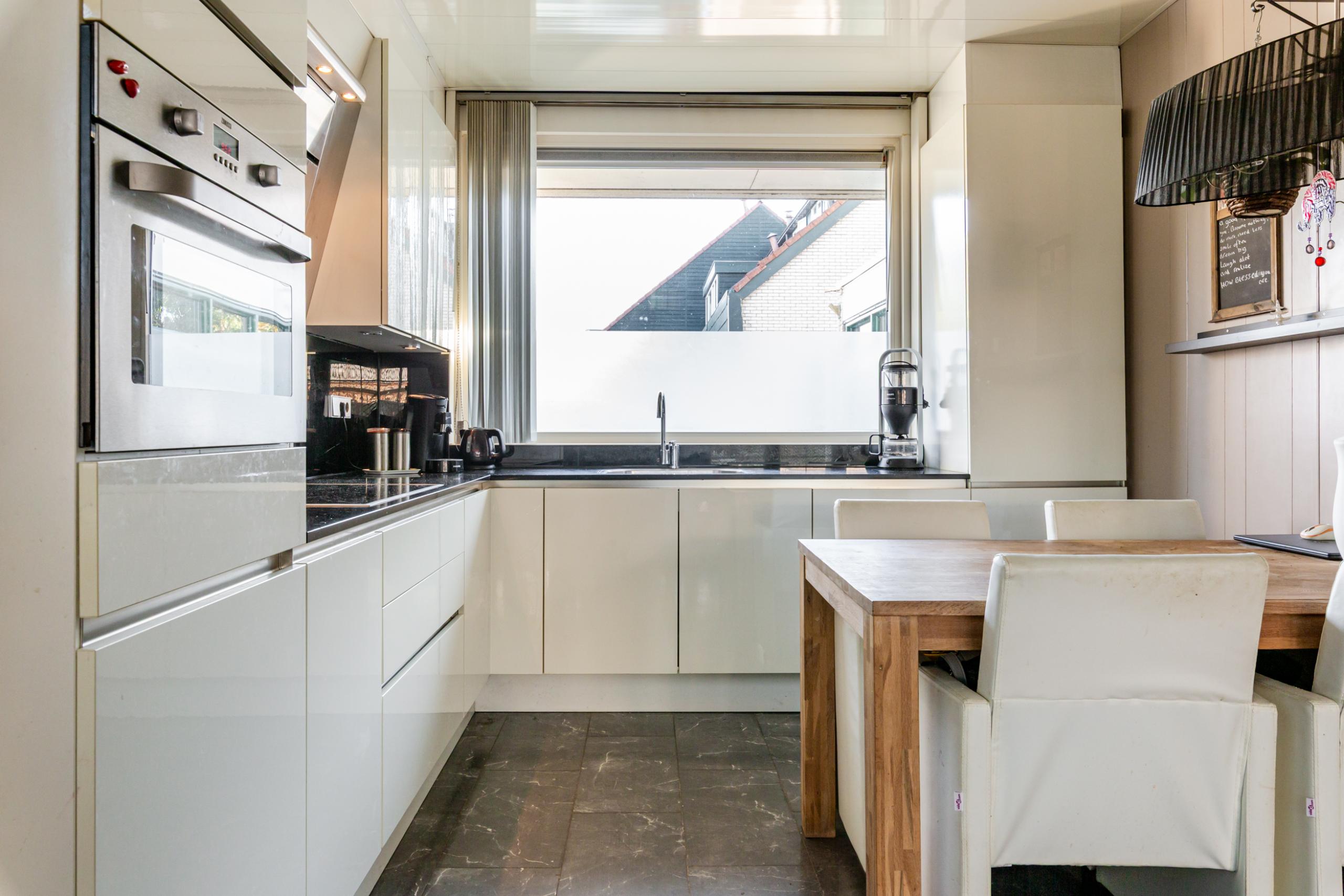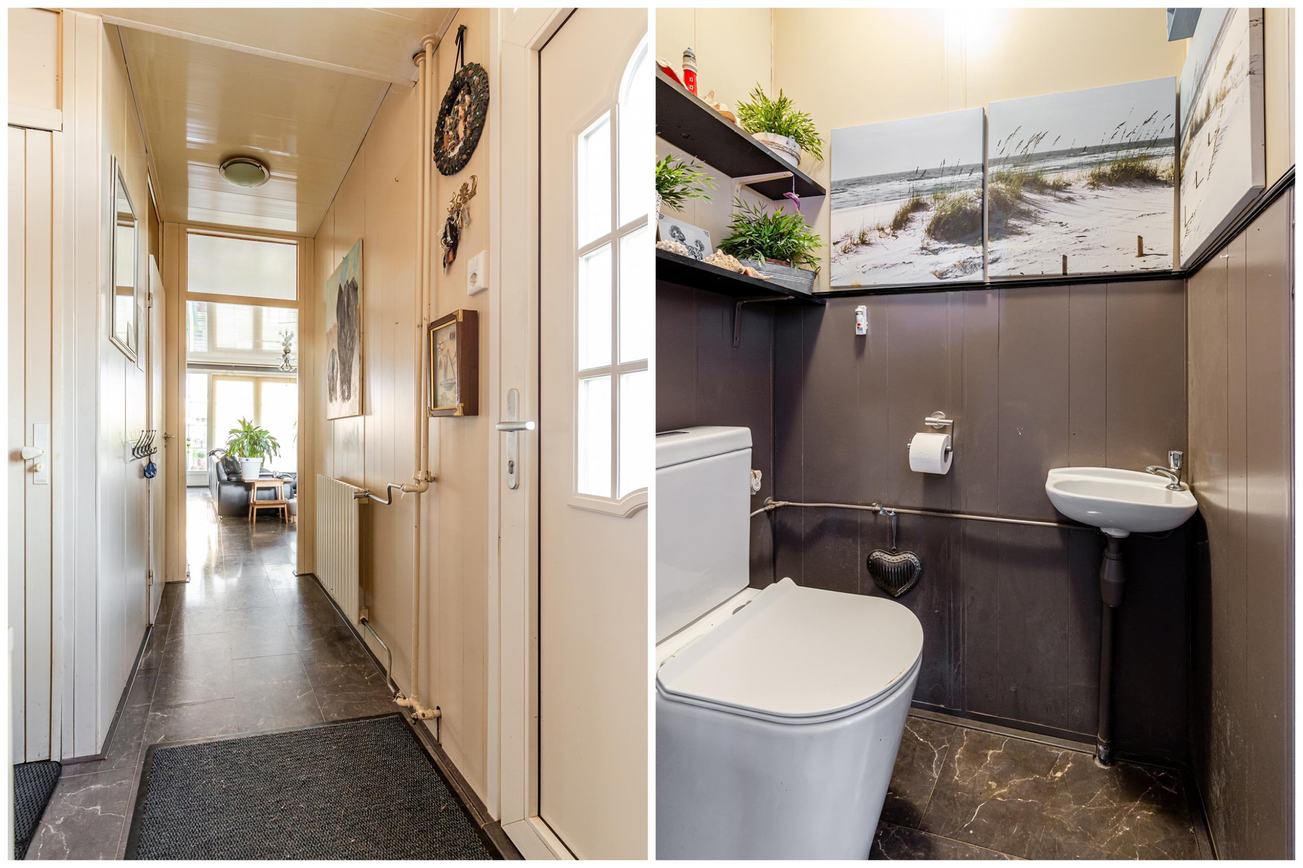 Begane grond: Entree; hal met meterkast, toilet met fonteintje en de trapopgang; vanuit de hal is de aangebouwde berging bereikbaar; tuingerichte woonkamer met houtkachel van niet minder dan circa 30m²!! met extra daglichttoetreding door een zijgevel raam en via een dubbele openslaande deuren toegang tot de tuin; open keuken in L-opstelling welke is voorzien van de navolgende (inbouw) apparatuur: een combi magnetron/oven, volledig geïntegreerde vaatwasser, koelkast, elektrische kookplaat en een RVS afzuigschouw. De woonkamer is voorzien van een laminaatvloer.