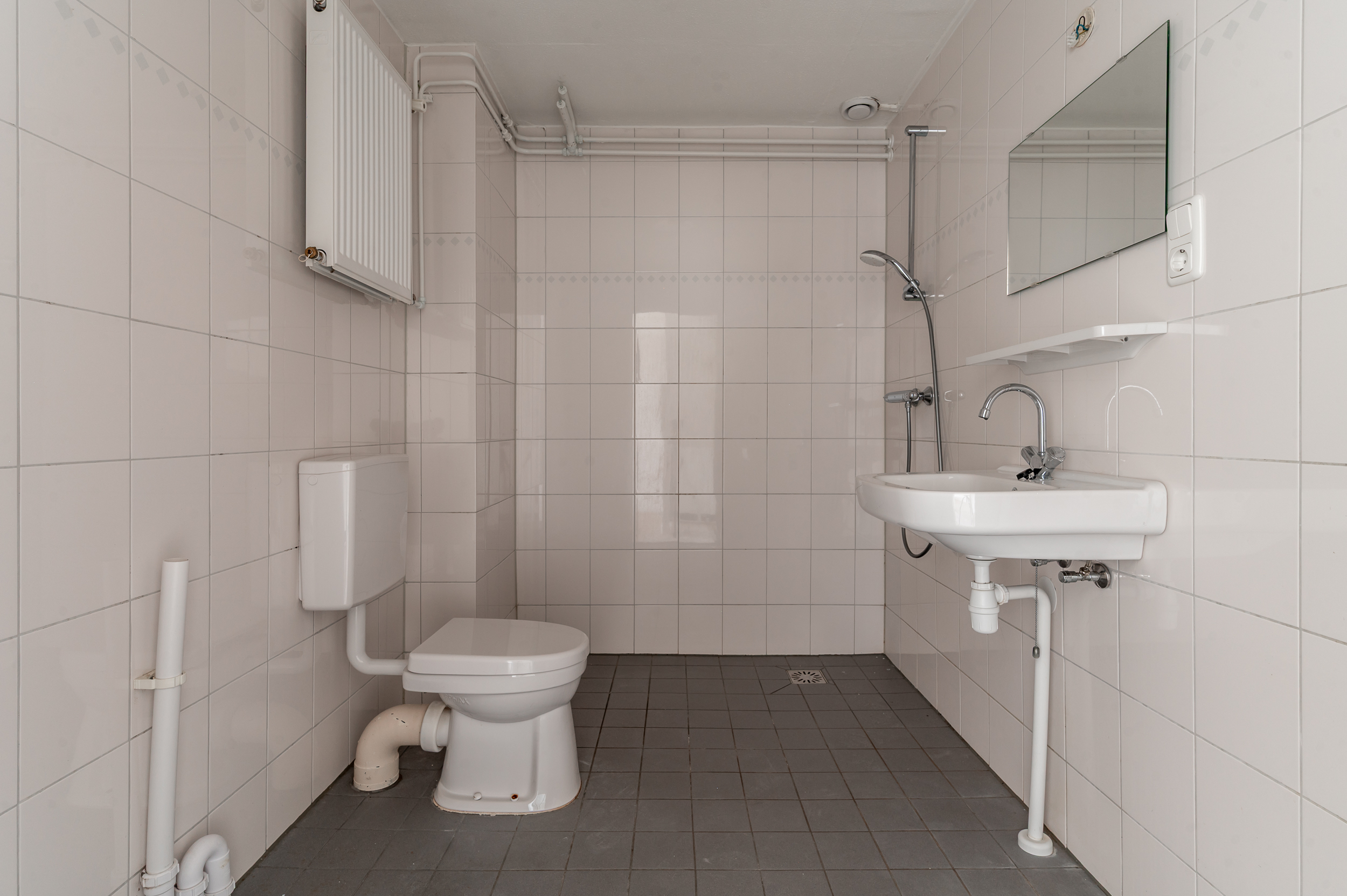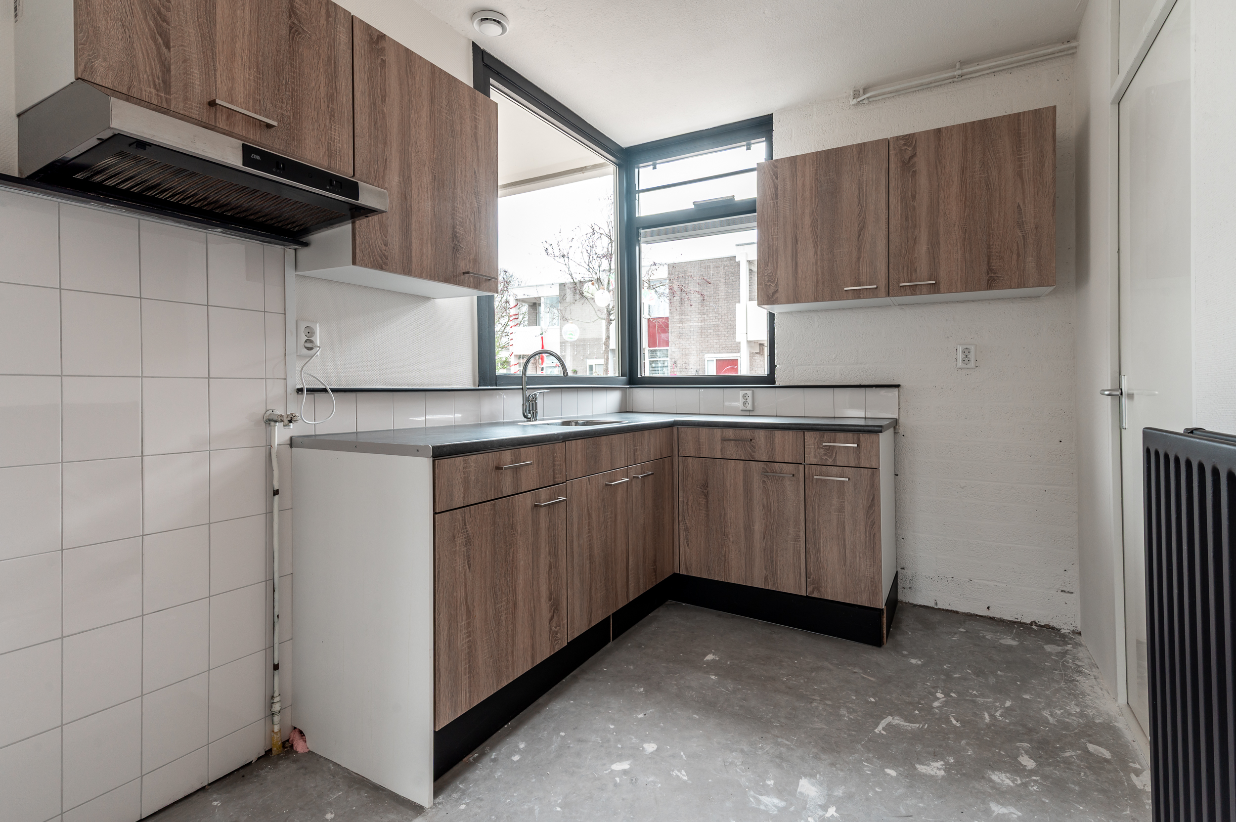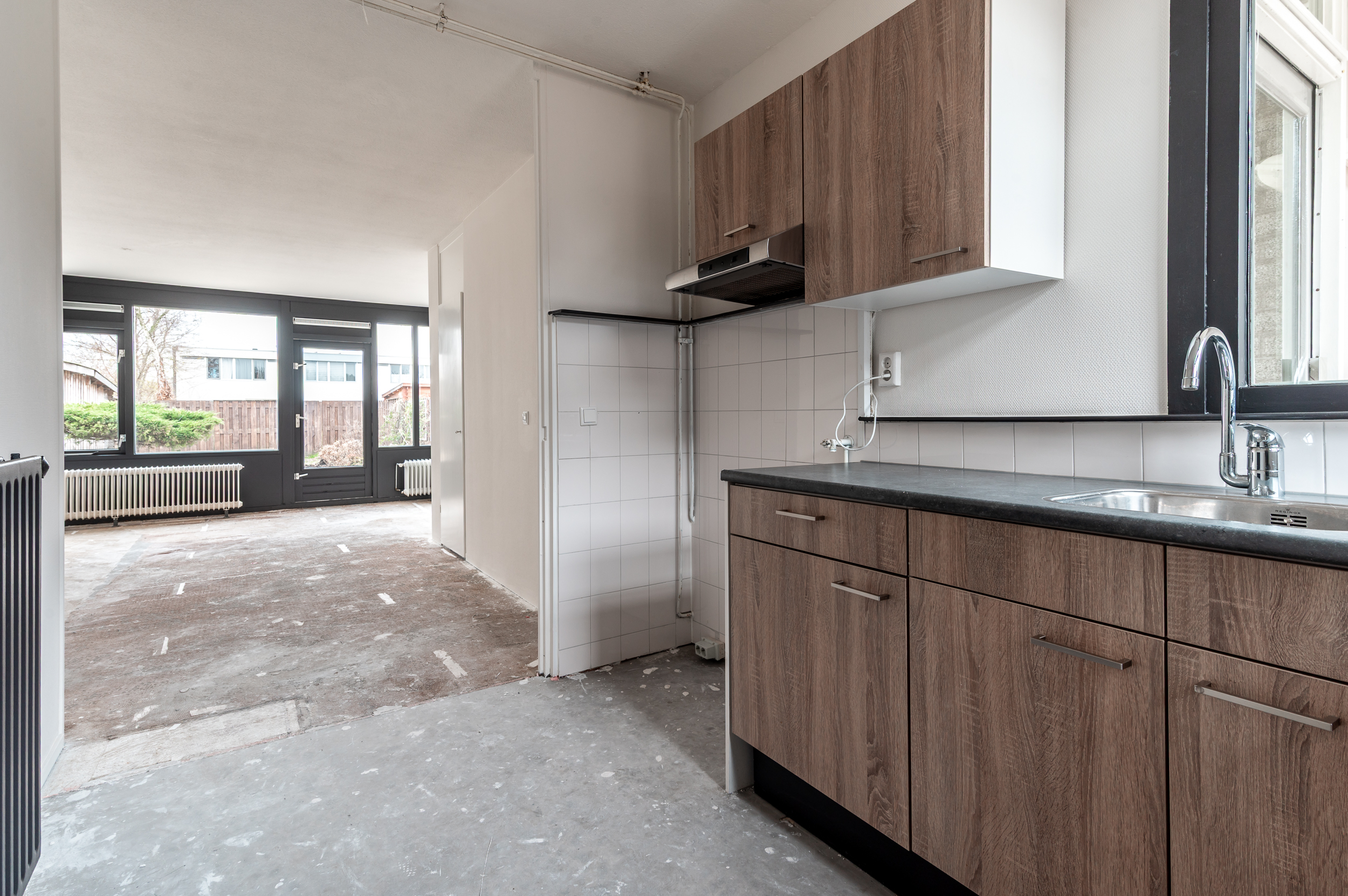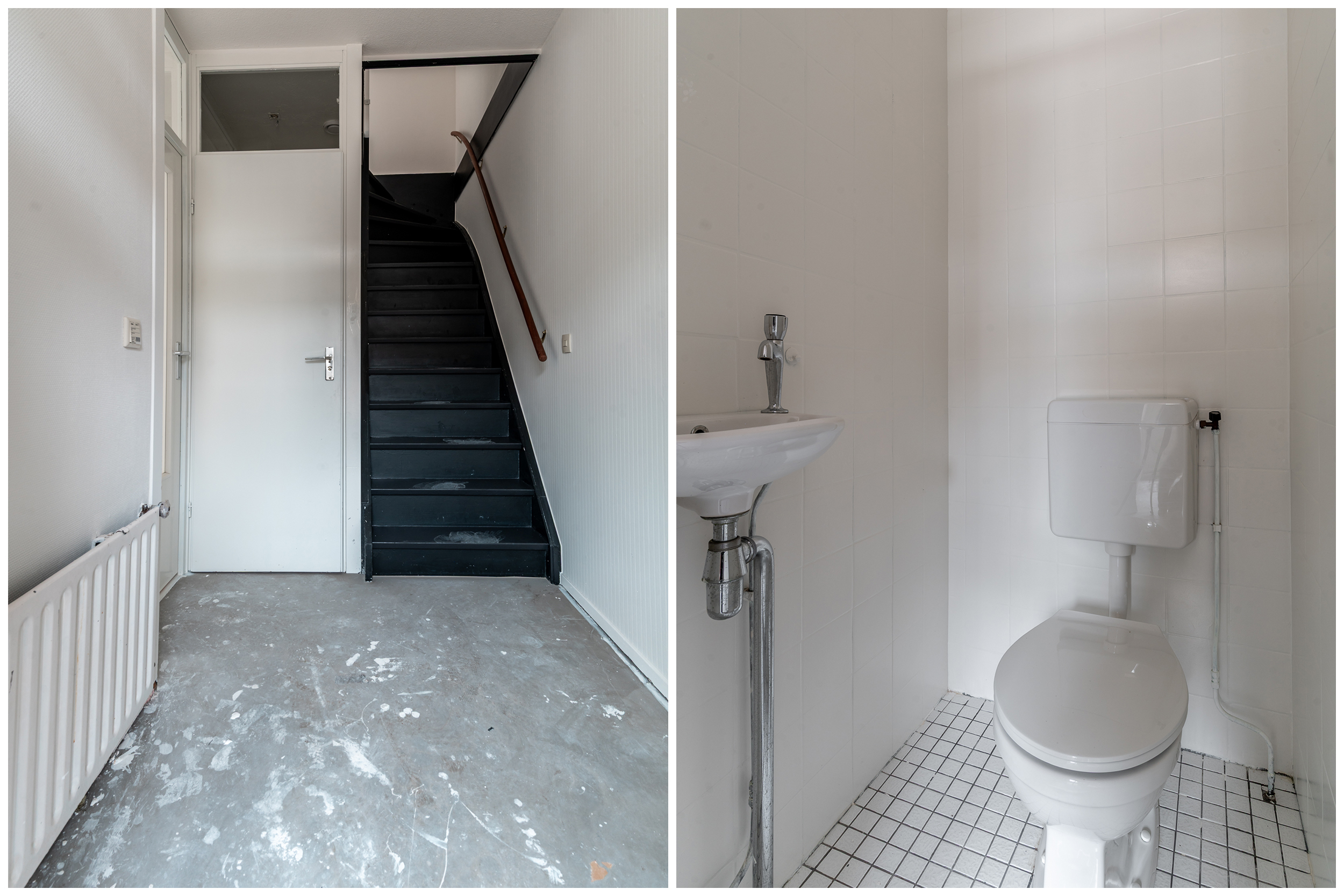 Begane grond: Entree; hal met meterkast (gasleiding en groepenkast vervangen), toilet in lichte kleurstelling en voorzien van fonteintje; doorgang naar de keuken/ woonkamer; eenvoudige, straatgerichte keuken welke is voorzien van een afzuigkap en doorgang naar de inpandige berging met eigen toegangsdeur naar de voorzijde en voorzien van de CV (2017); tuingerichte woonkamer van ruim 30m² met ruime trapkast en toegang tot de tuin.