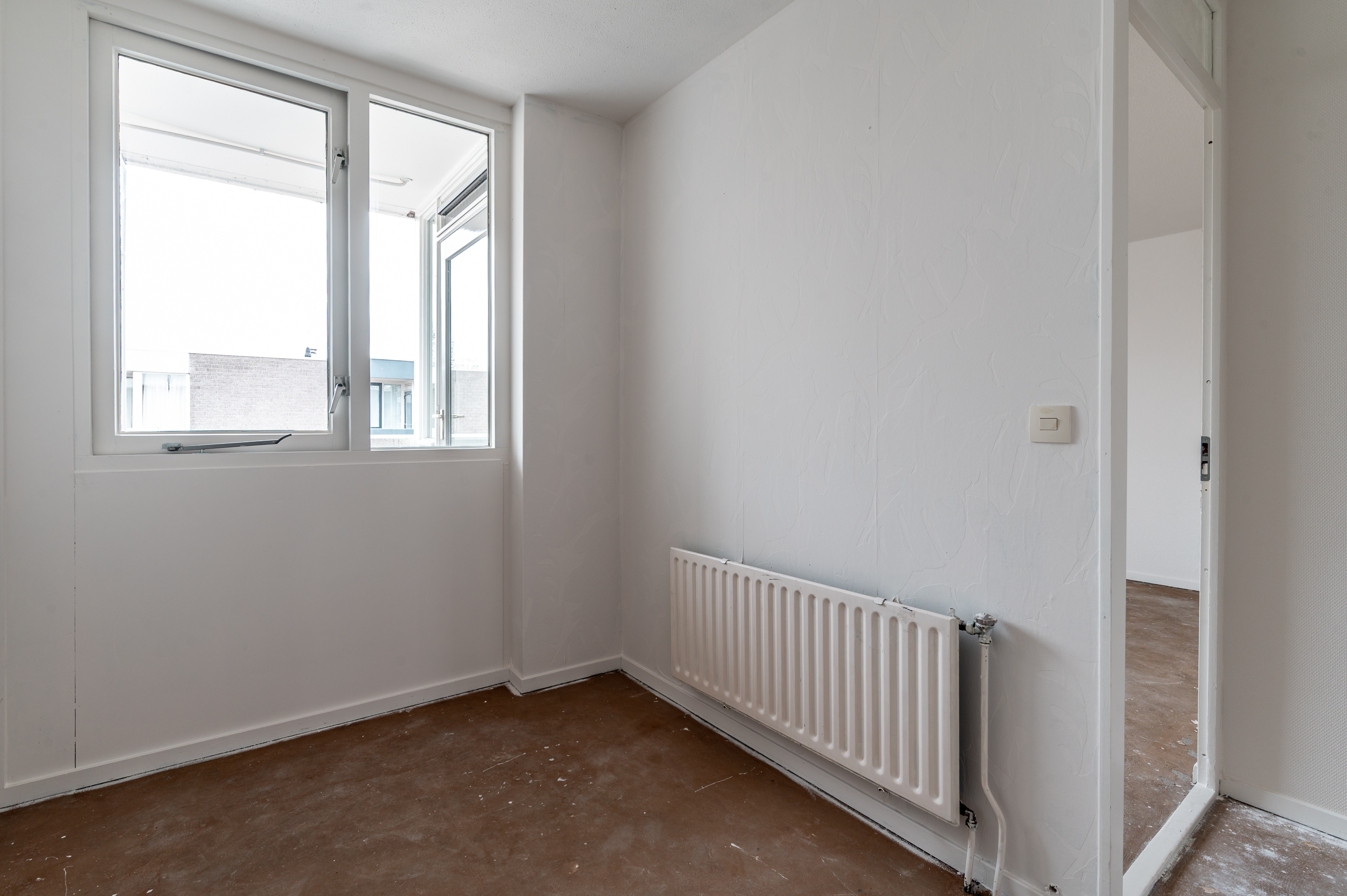 Eerste verdieping: Overloop met toegang tot drie slaapkamers van respectievelijk 5,7-, 9,8-, 12,7- en 13,2m², waarvan de grootste slaapkamer toegang heeft tot het op het oosten gesitueerde balkon; volledig betegelde badkamer welke is voorzien van een douche, tweede toilet, wastafel alsmede een radiator.