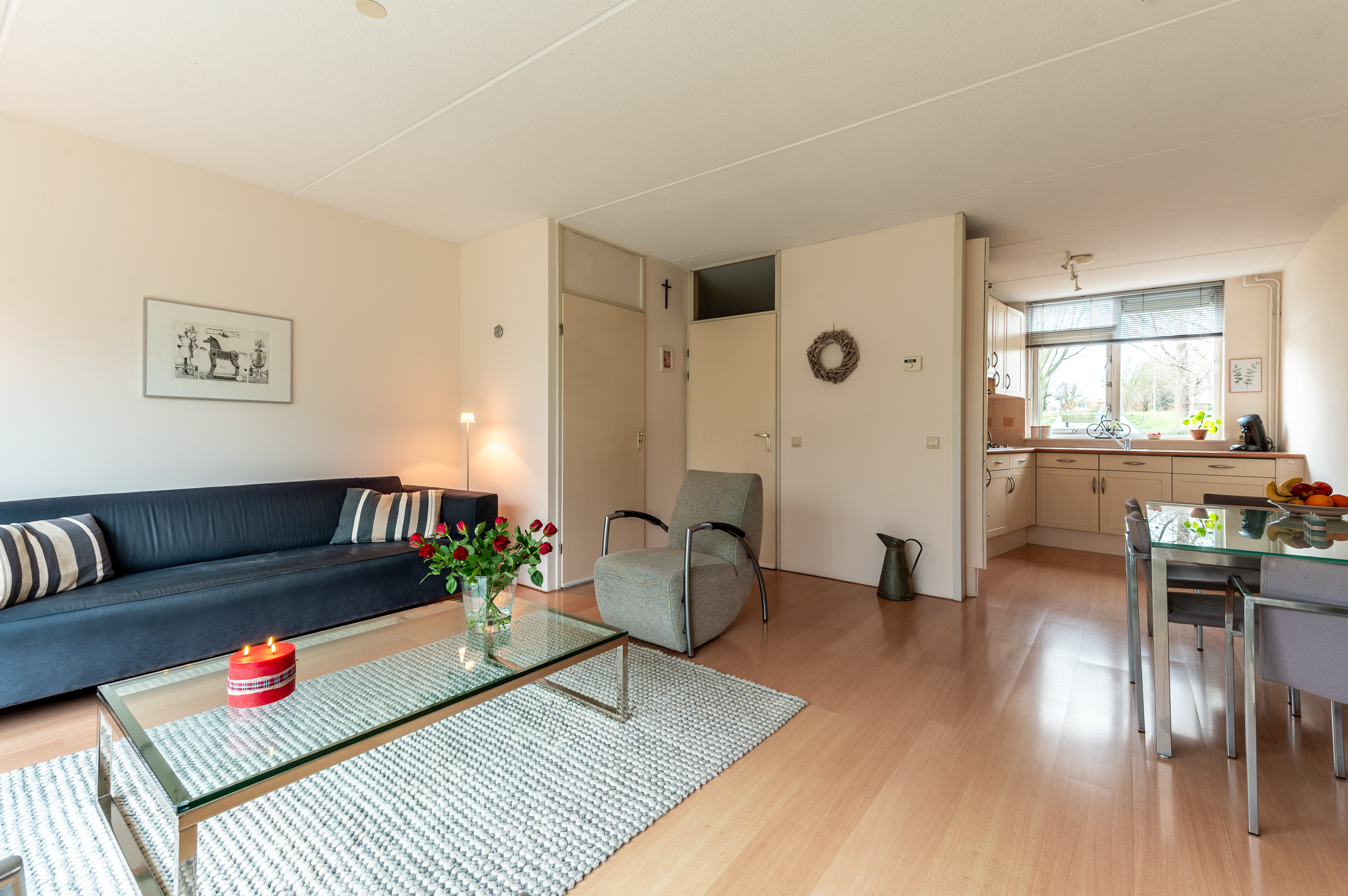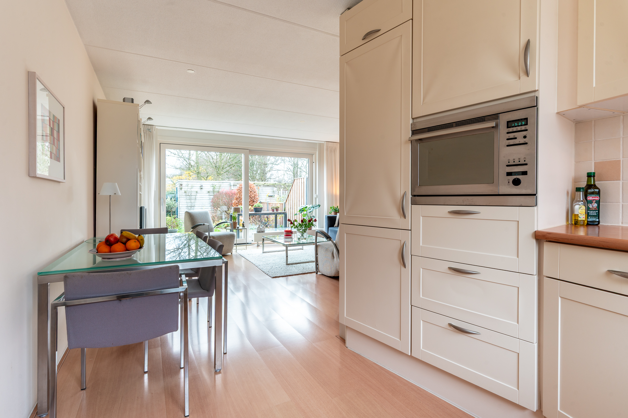 Vrijwel de gehele begane grond verdieping is voorzien van een laminaat vloer.