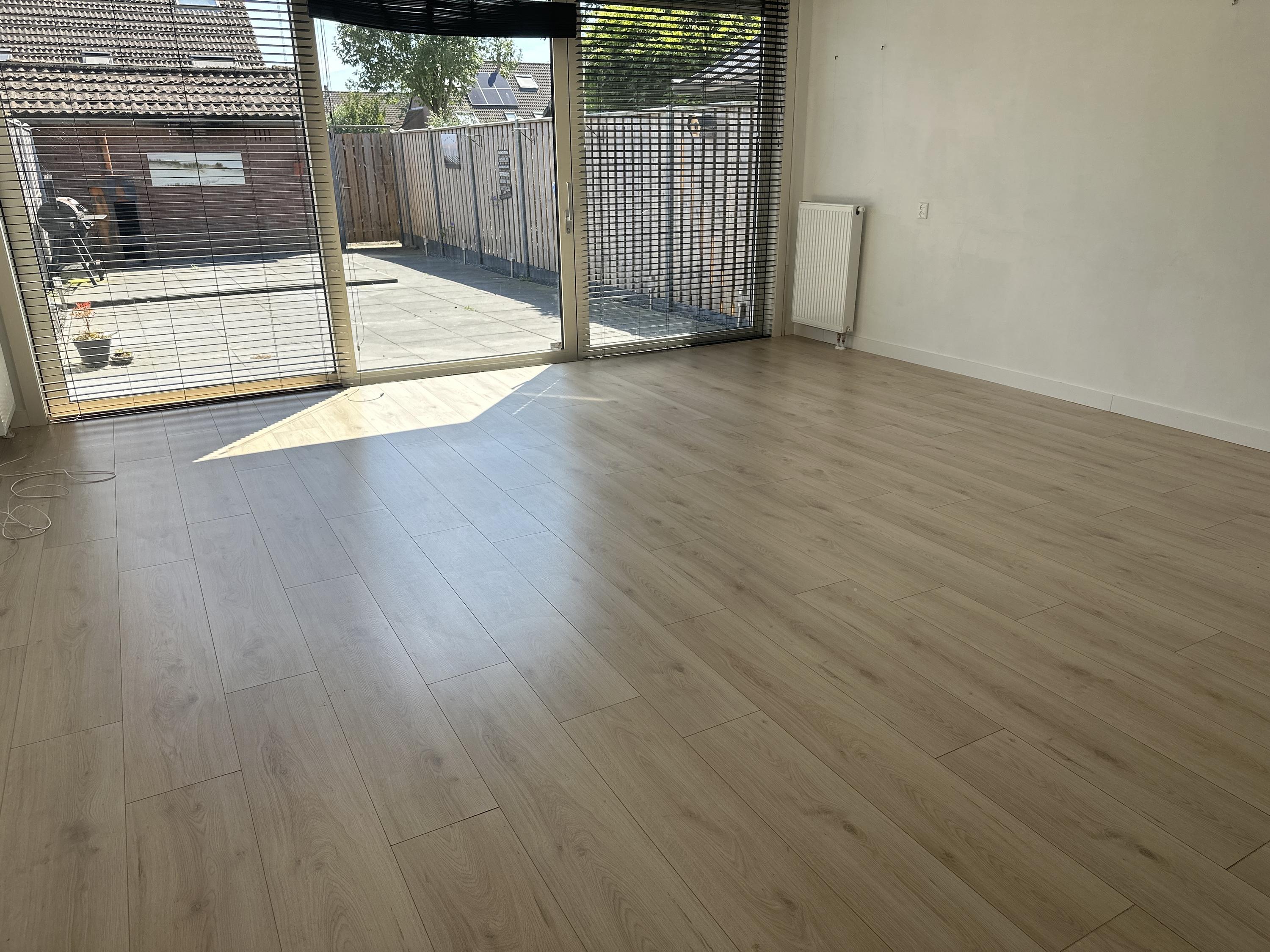 Begane grond: Entree, hal, vaste kast, toilet met fonteintje, moderne open keuken in L-opstelling welke is voorzien van ide navolgende nbouwapparatuur: koelkast, vrieskast, volledig geintegreerde vaatwasser, kookplaat, magnetron en een afzuigschouw; ruime en lichte tuingerichte woonkamer (ca. 29 m²) welke is voorzien van een trapkast en een grote schuifpui naar de achtertuin. De begane grond is vrijwel volledig voorzien van een laminaat vloer.