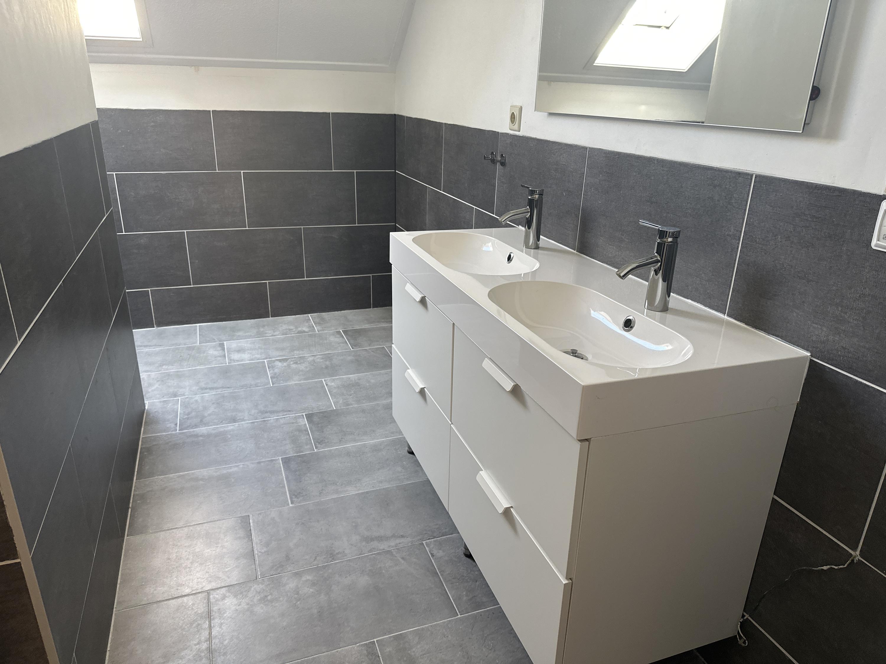 Eerste verdieping: Overloop, drie slaapkamers; ruime badkamer welke is voorzien van een tweede toilet, wastafelmeubel, een inloopdouche en een dakraam voor daglichttoetreding en natuurlijke ventilatie.
