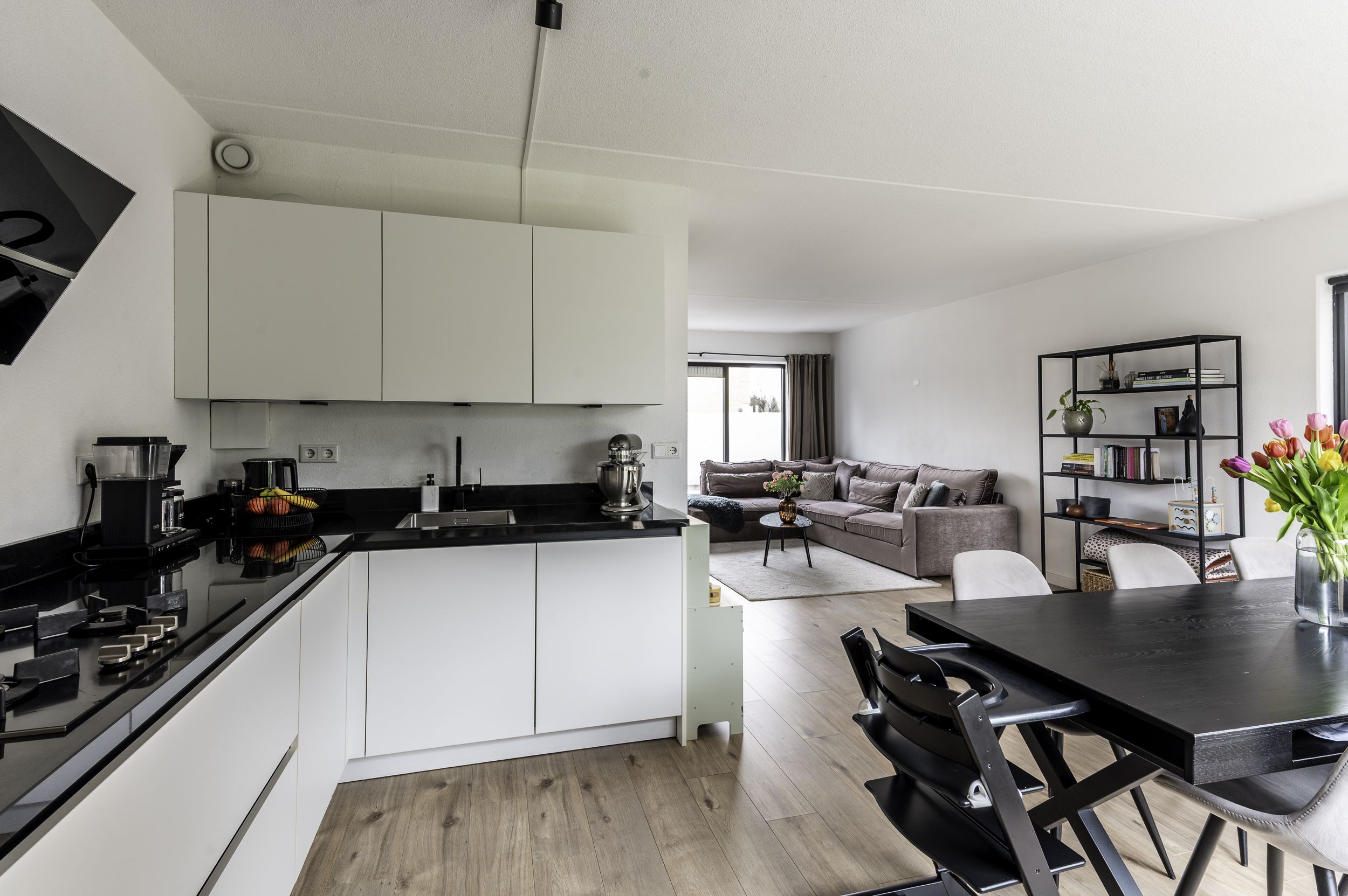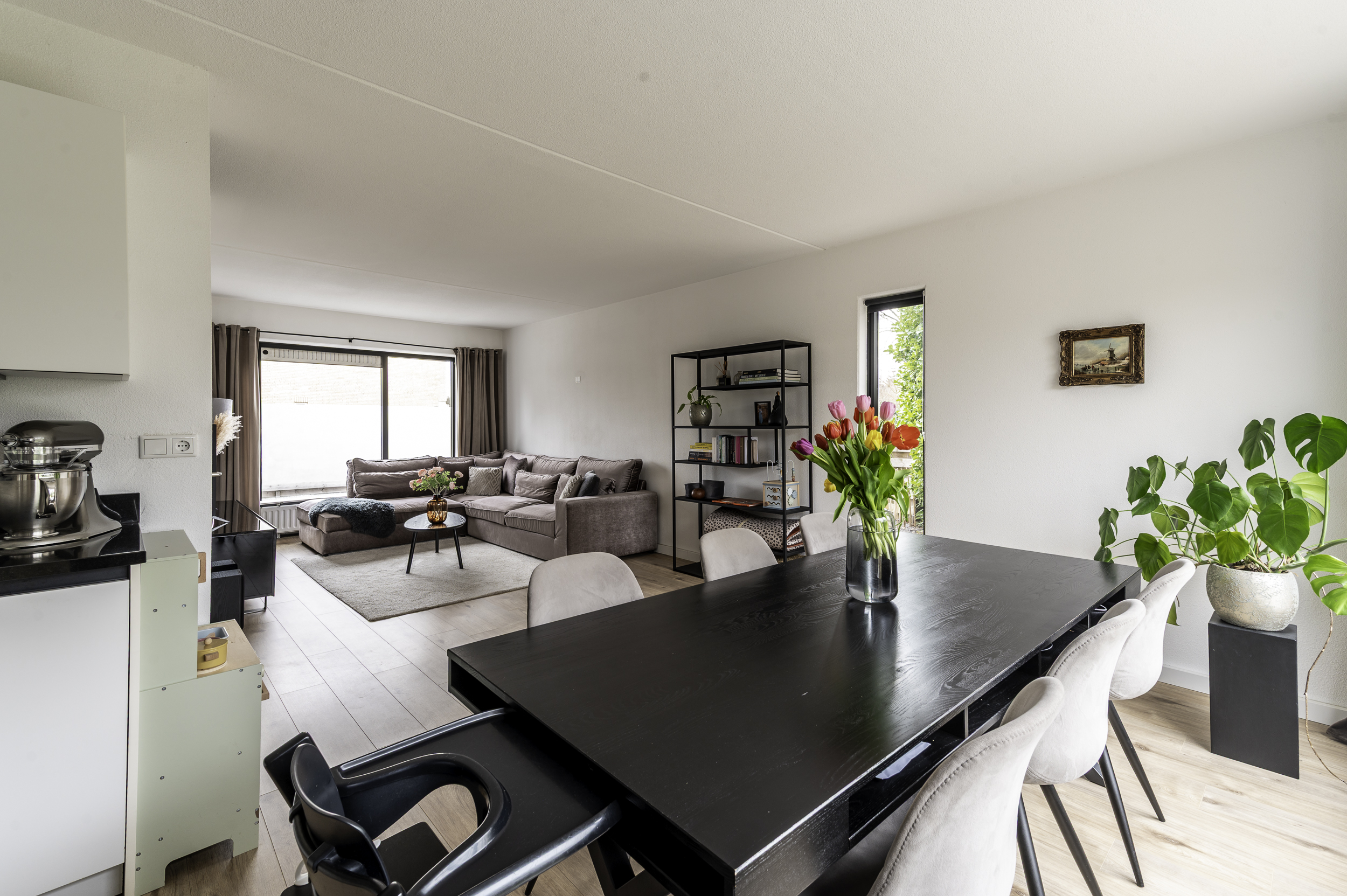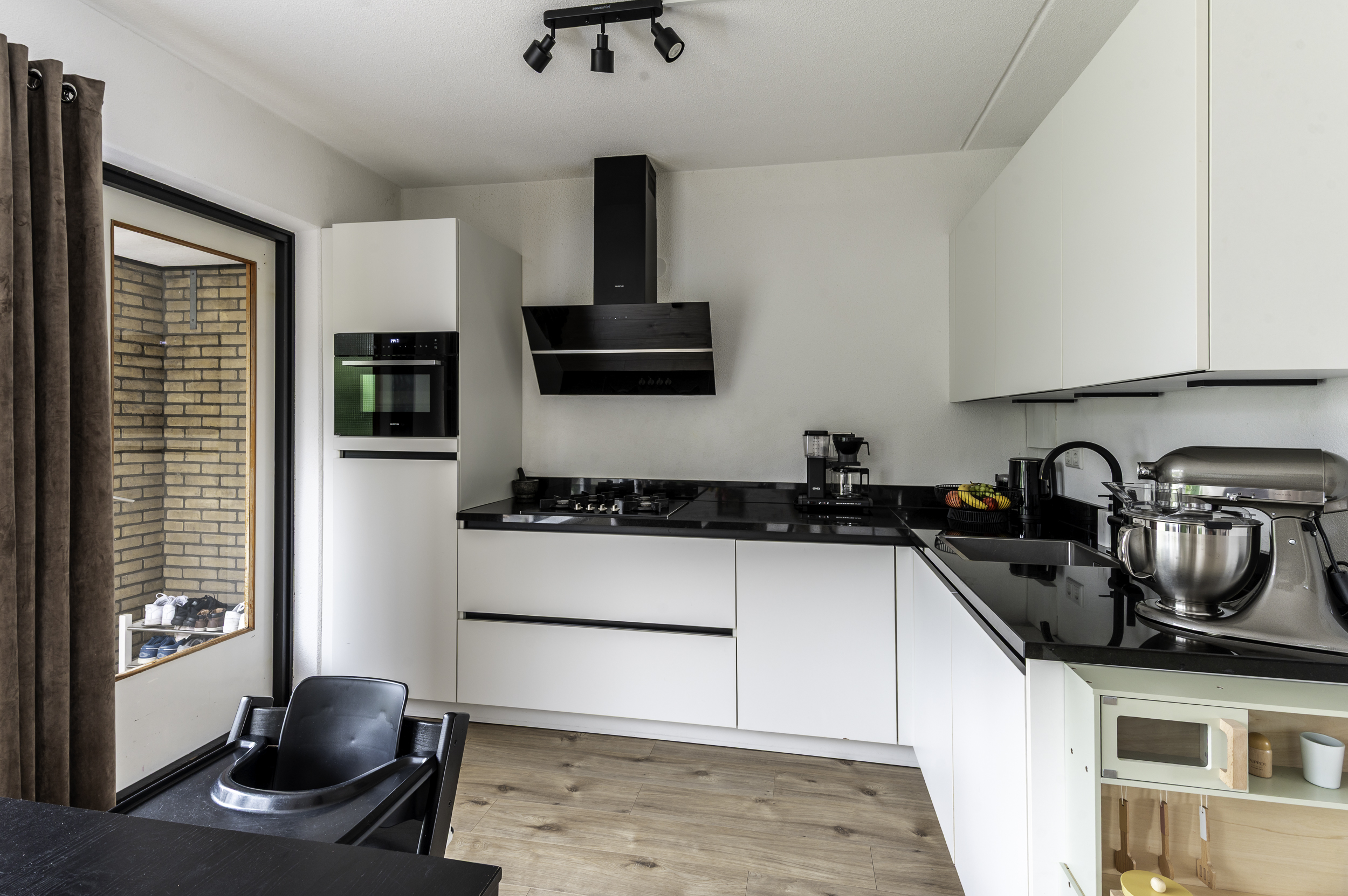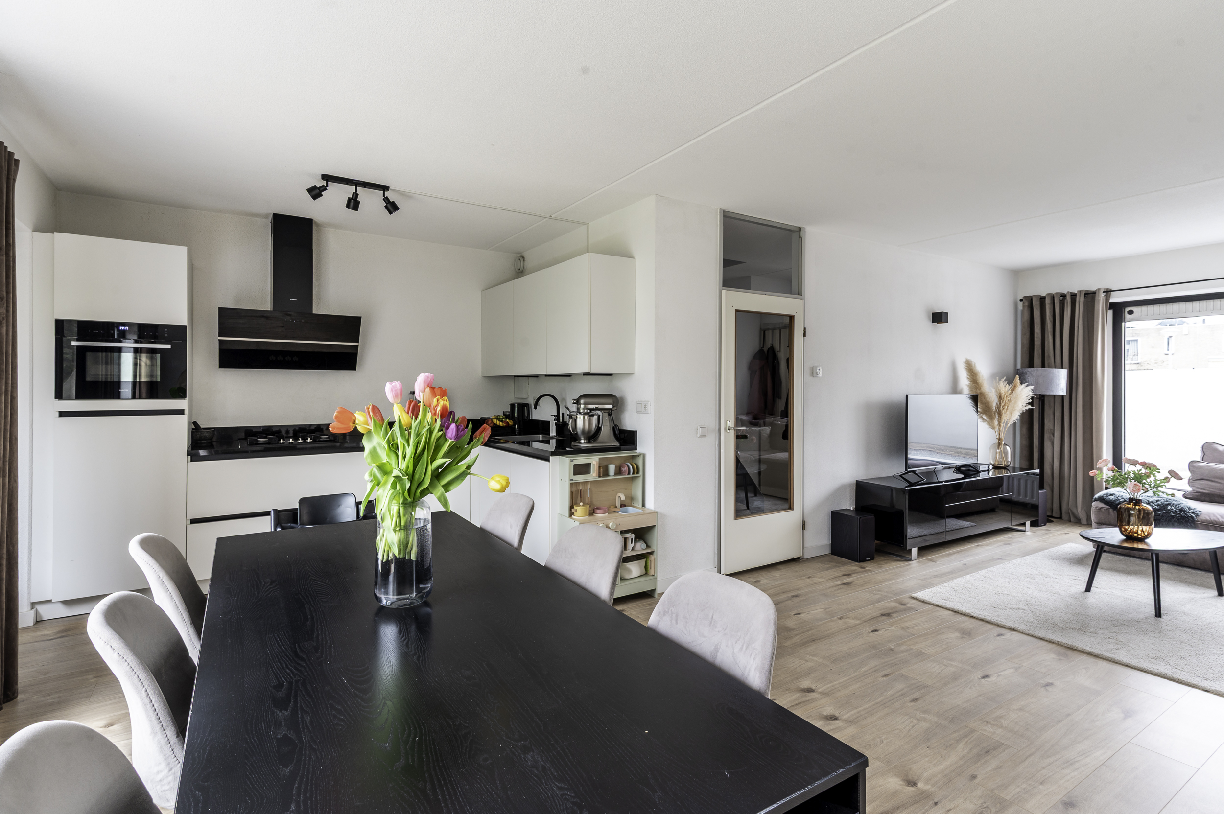 Begane grond: Entree; hal; hangend toilet (2021); trapopgang; vernieuwde meterkast (2021); lichte doorzon woonkamer van 29m² met ruime opstel mogelijkheid voor uw eettafel; open keuken (2021) in hoekopstelling welke is voorzien van ondermeer een design afzuigkap, een keramische kookplaat, combi magnetron, koelkast alsmede een vaatwasser; tussenhal met toegang tot de aangebouwde stenen berging; vanuit de tussenhal en de berging is de tuin bereikbaar.