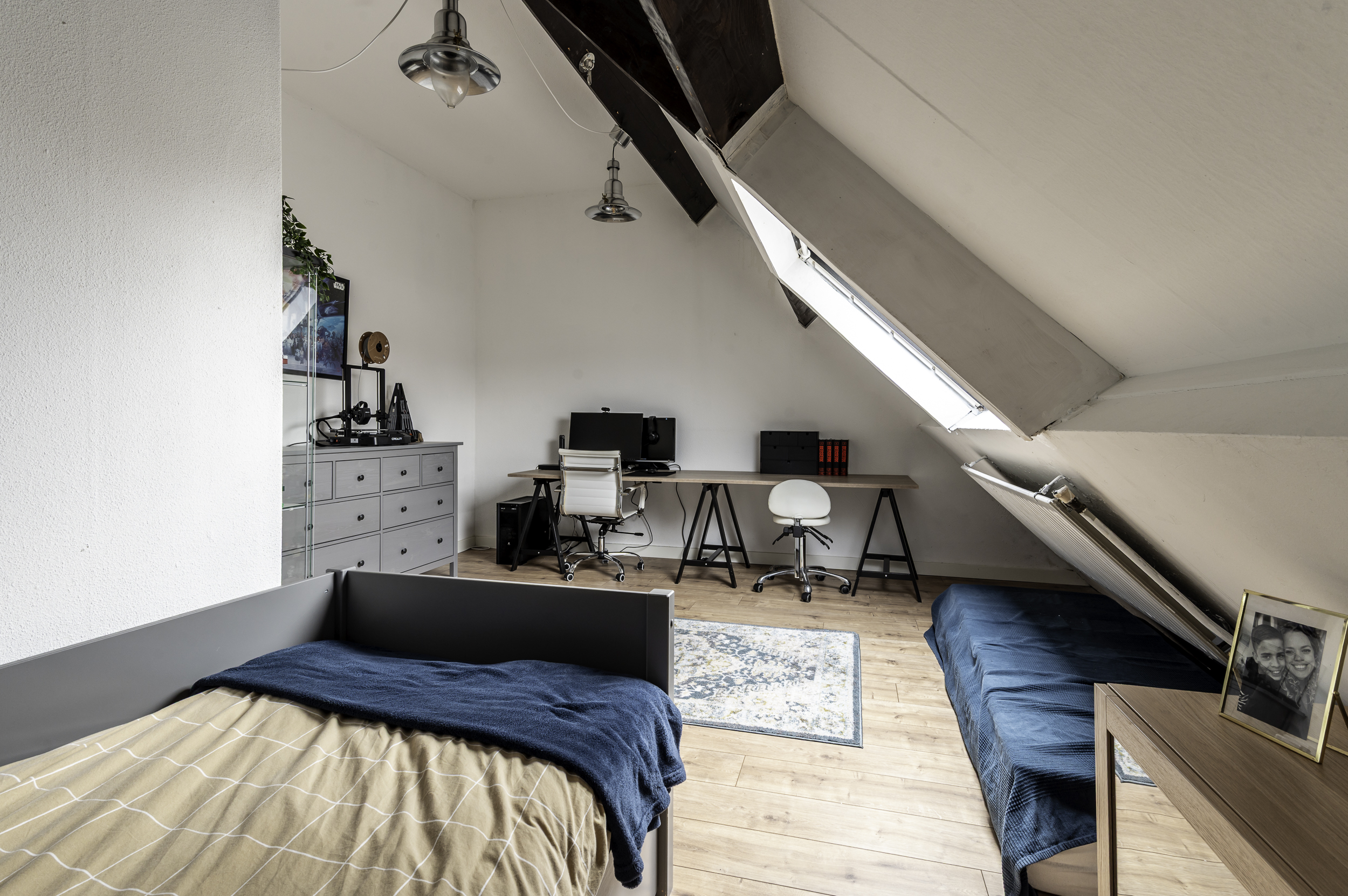 Tweede verdieping: Royale overloop met een dakraam, CV opstelling, witgoedaansluitingen en bergruimte; ruime VIERDE slaapkamer met dakraam.
