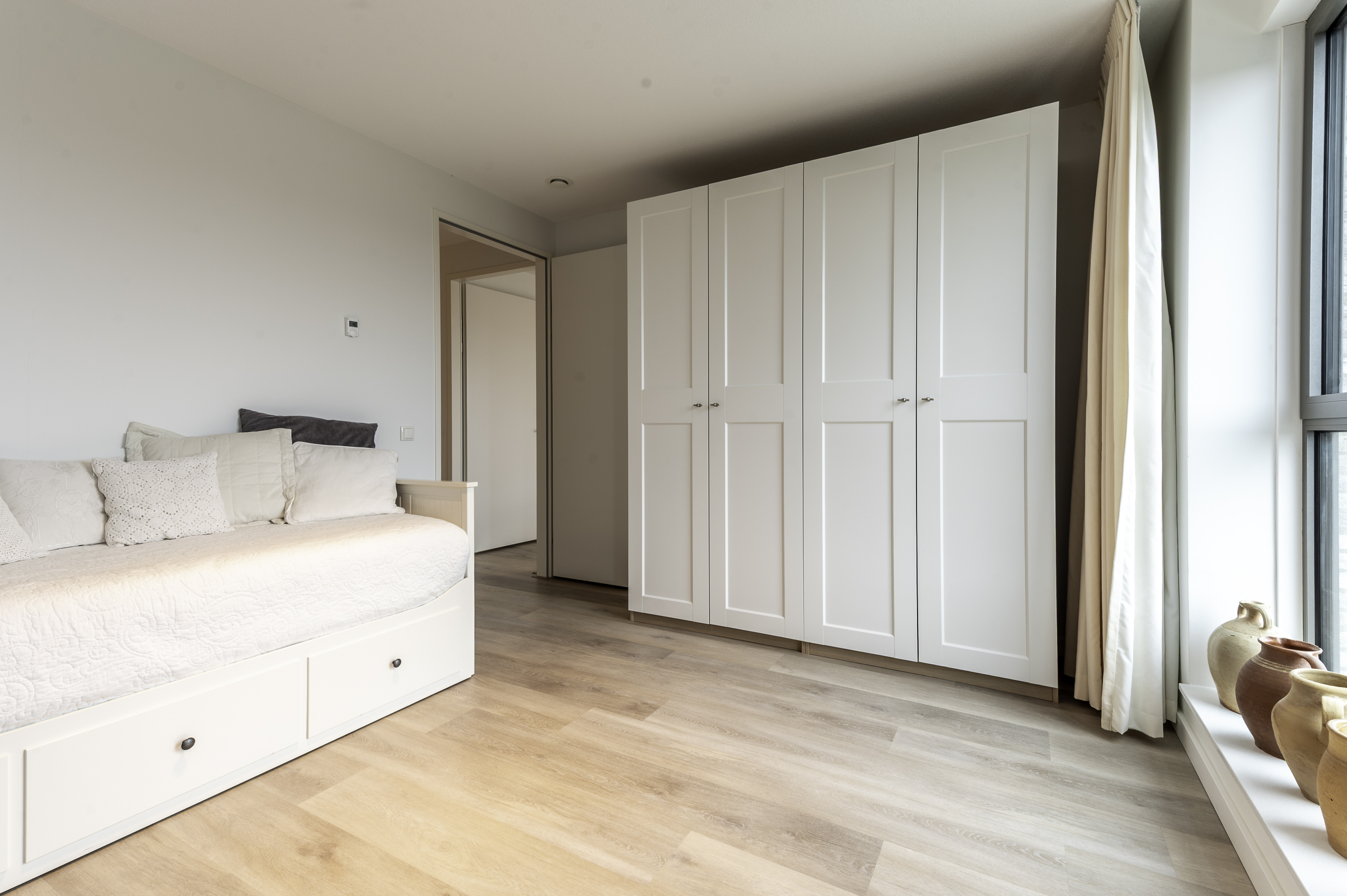 Het appartement is voorzien van een PVC vloer met vloerverwarming en in elk vertrek een eigen thermostaat.