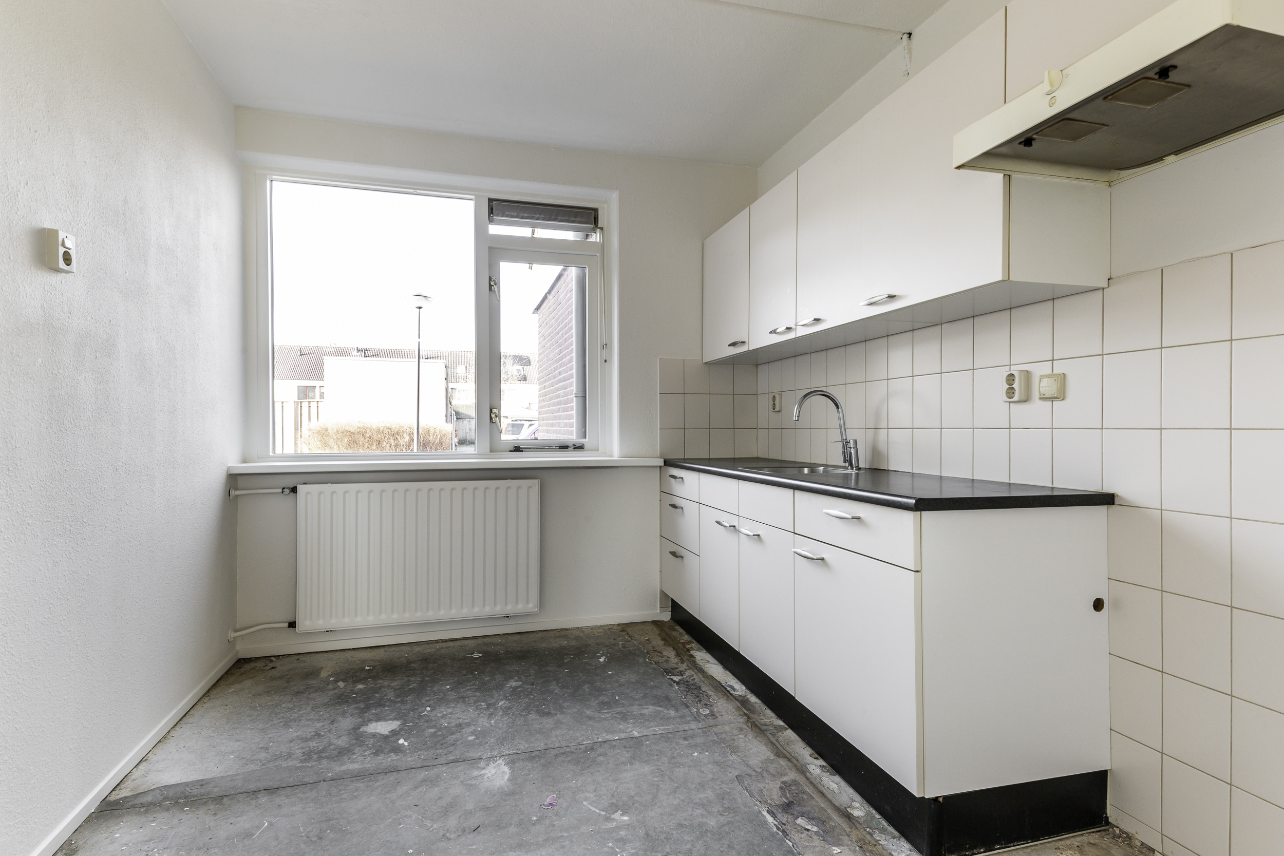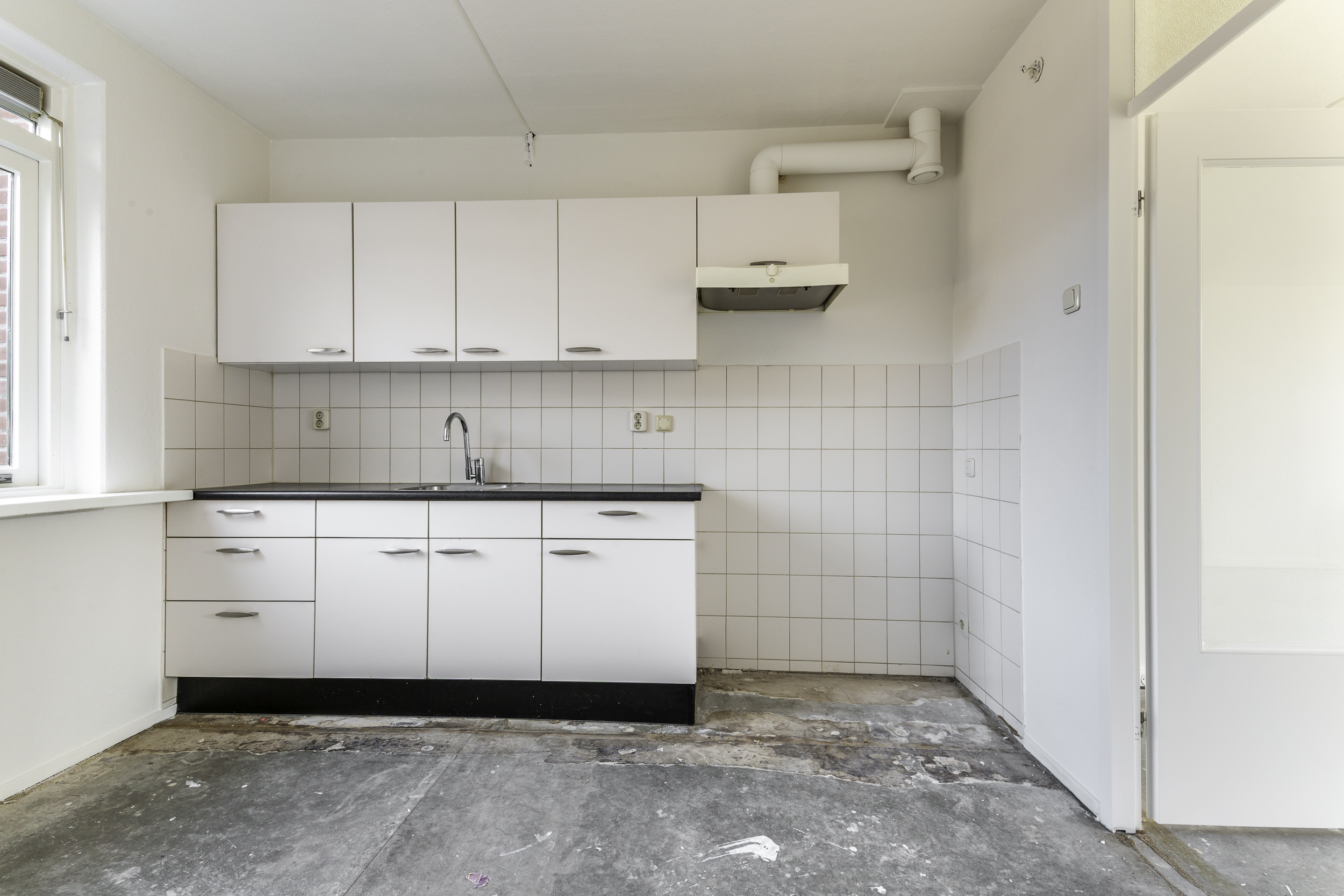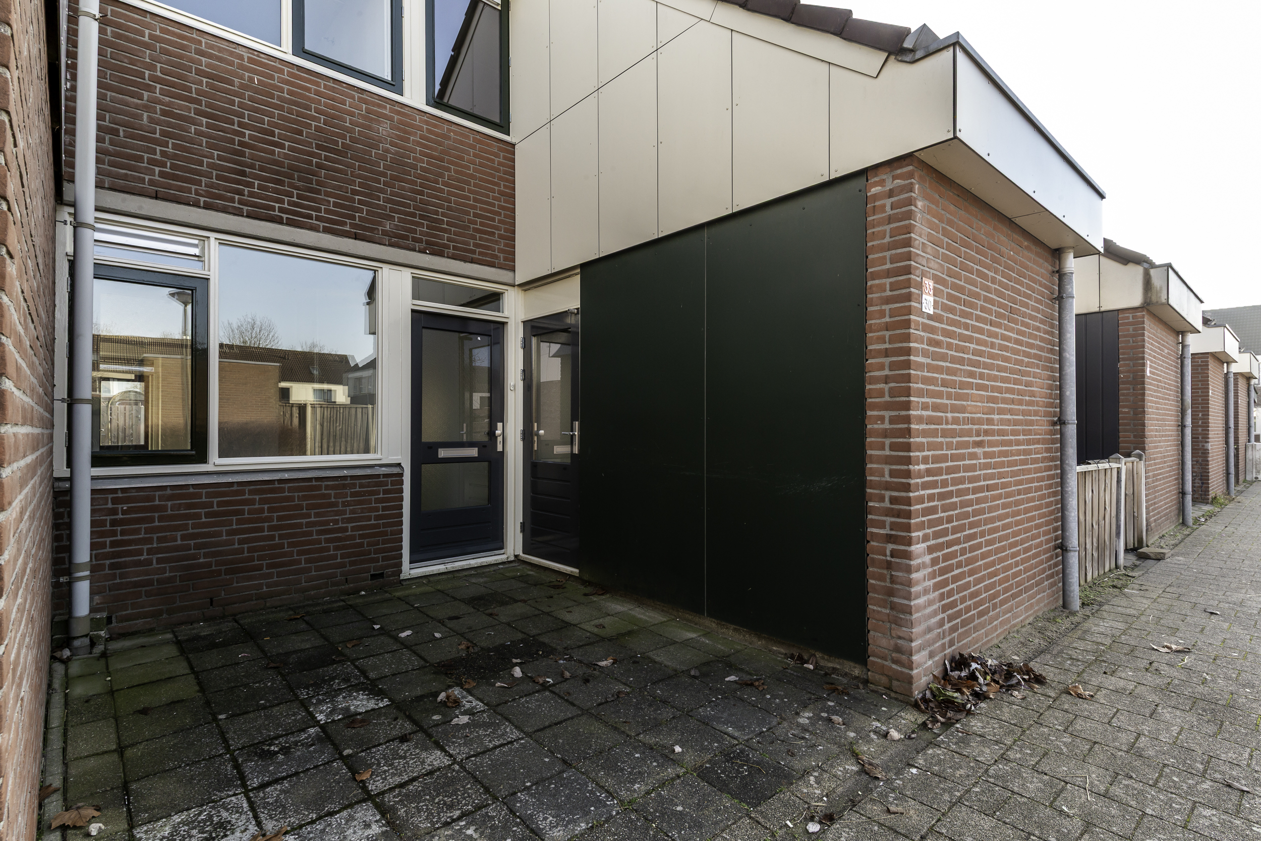 Begane grond: Entree; hal met meterkast, toilet met fonteintje, trapopgang naar de verdieping en toegang tot de woonkamer en keuken alsmede de aangebouwde stenen berging met eigen deur naar buiten; tuingerichte woonkamer van ongeveer 26m² met trapkast en toegang tot de achtertuin; afsluitbare keuken welke is voorzien van een eenvoudig keukenblok en een afzuigkap.