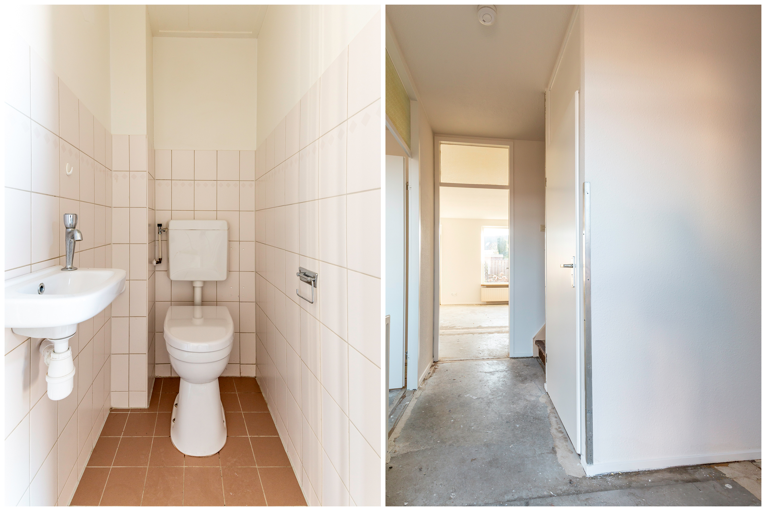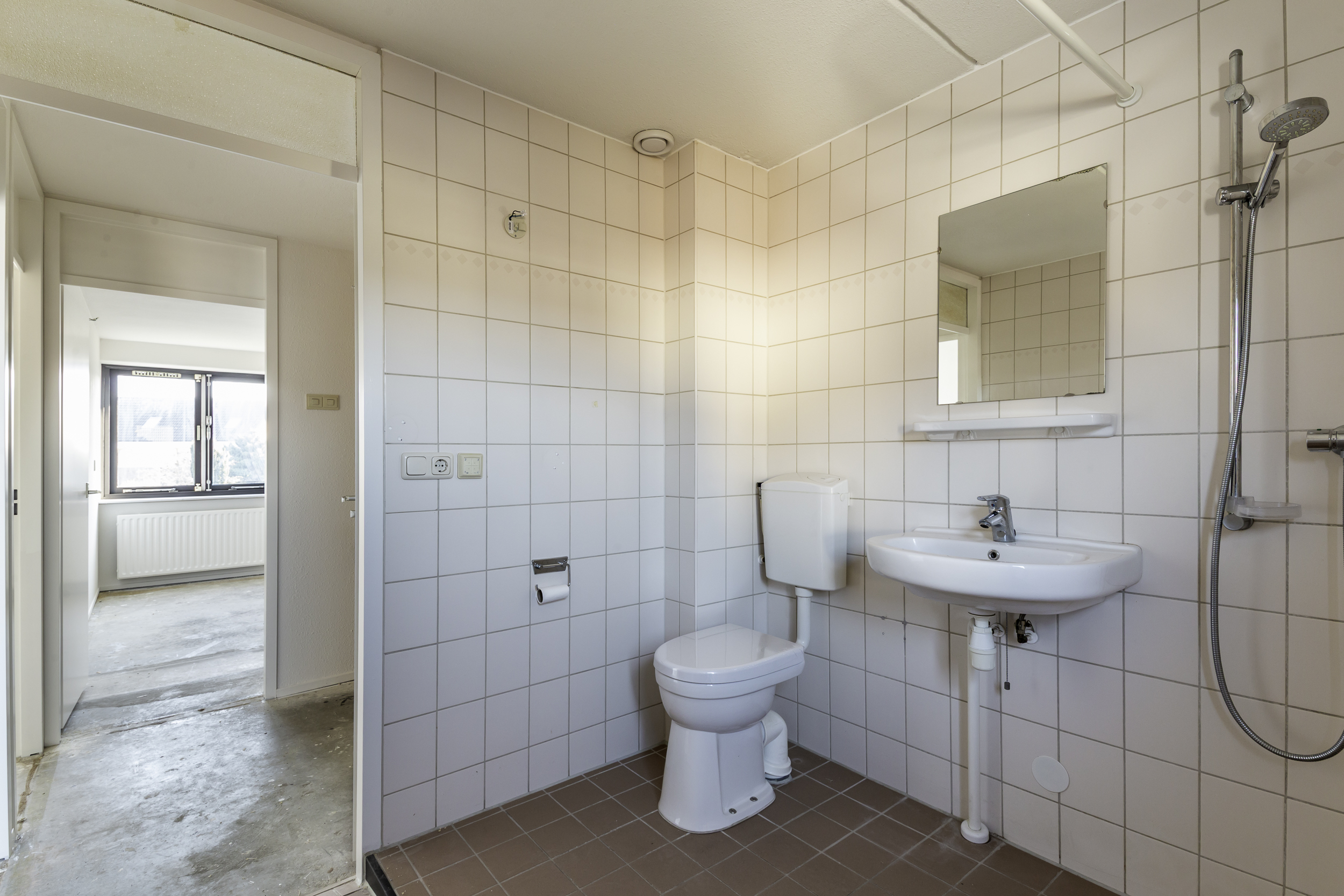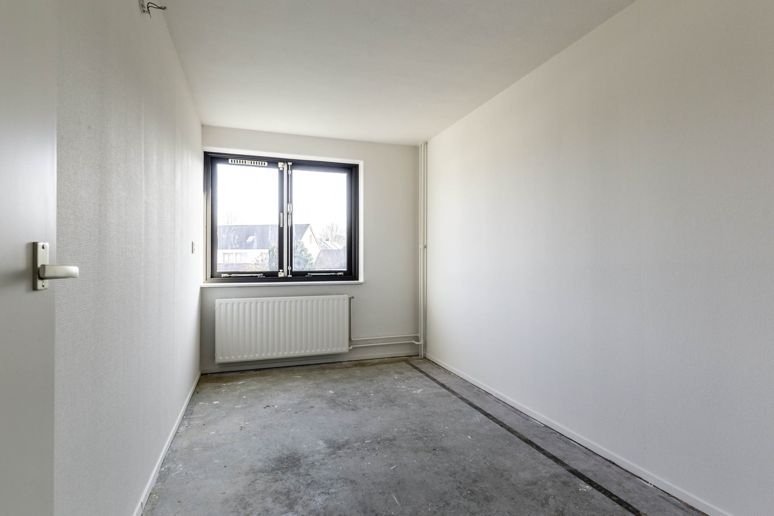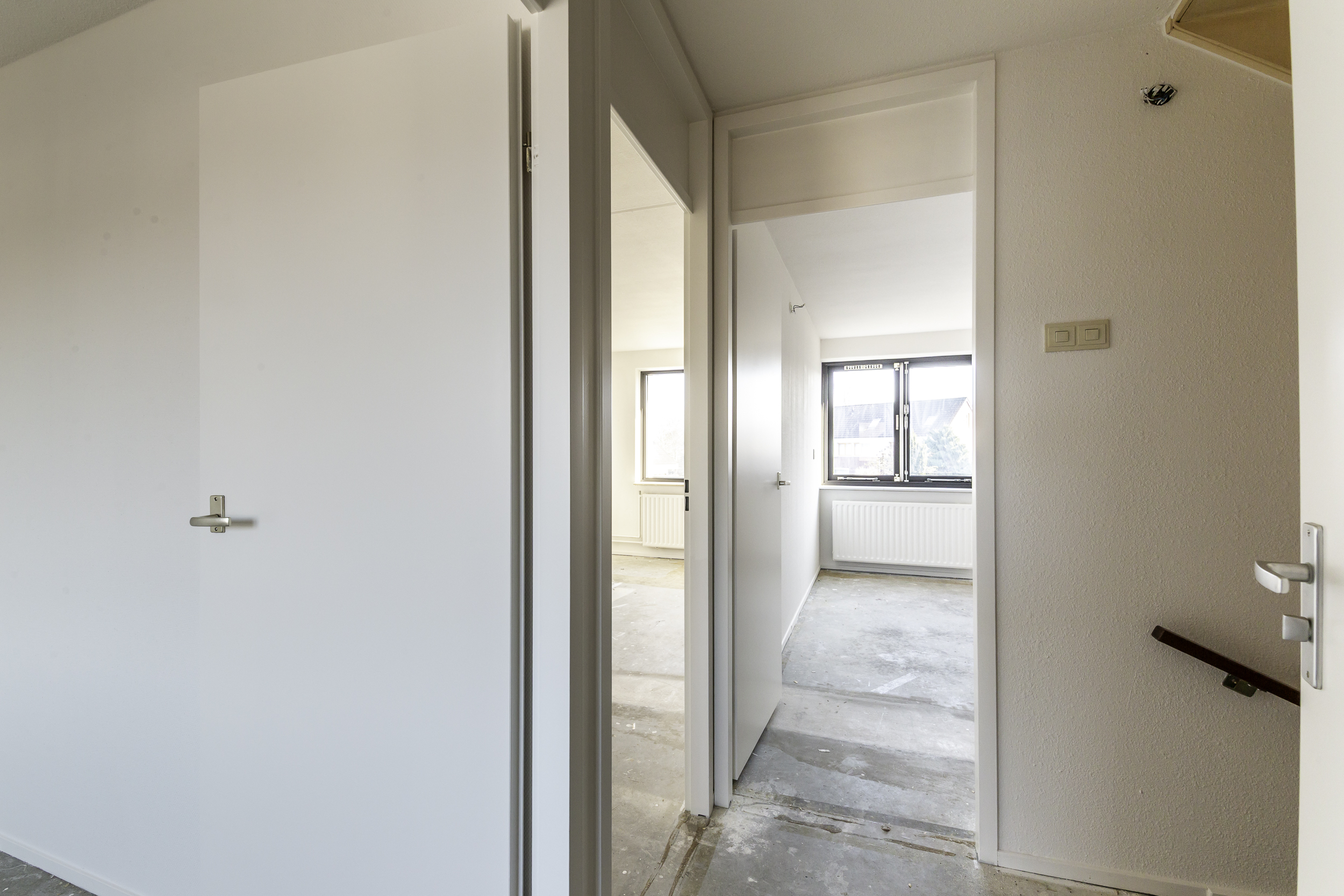 Eerste verdieping: Overloop; drie slaapkamers van respectievelijk 9,2-, 9,6- en 14,3m²; volledig betegelde badkamer welke is voorzien van een wasmachineaansluiting, een douche, tweede toilet, wastafel, een radiator en een raam voor de natuurlijke ventilatie en daglichttoetreding.