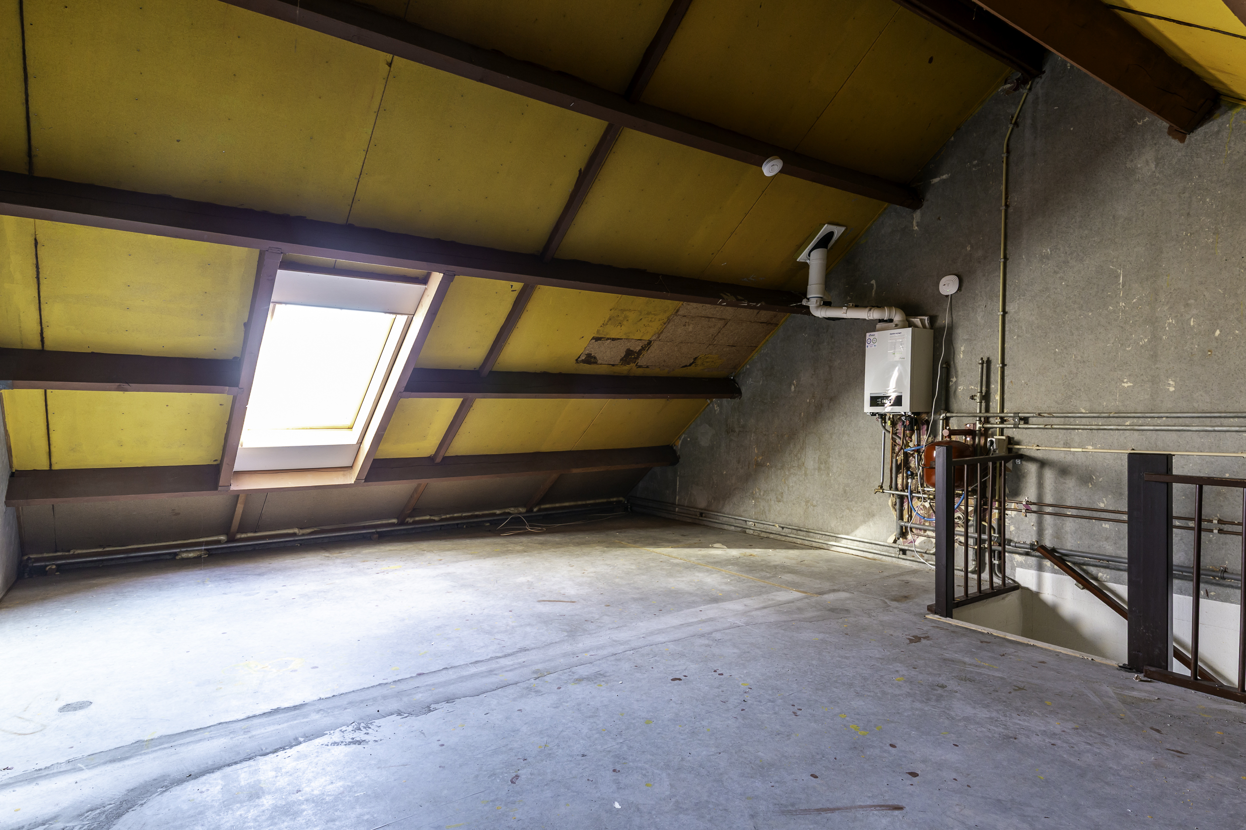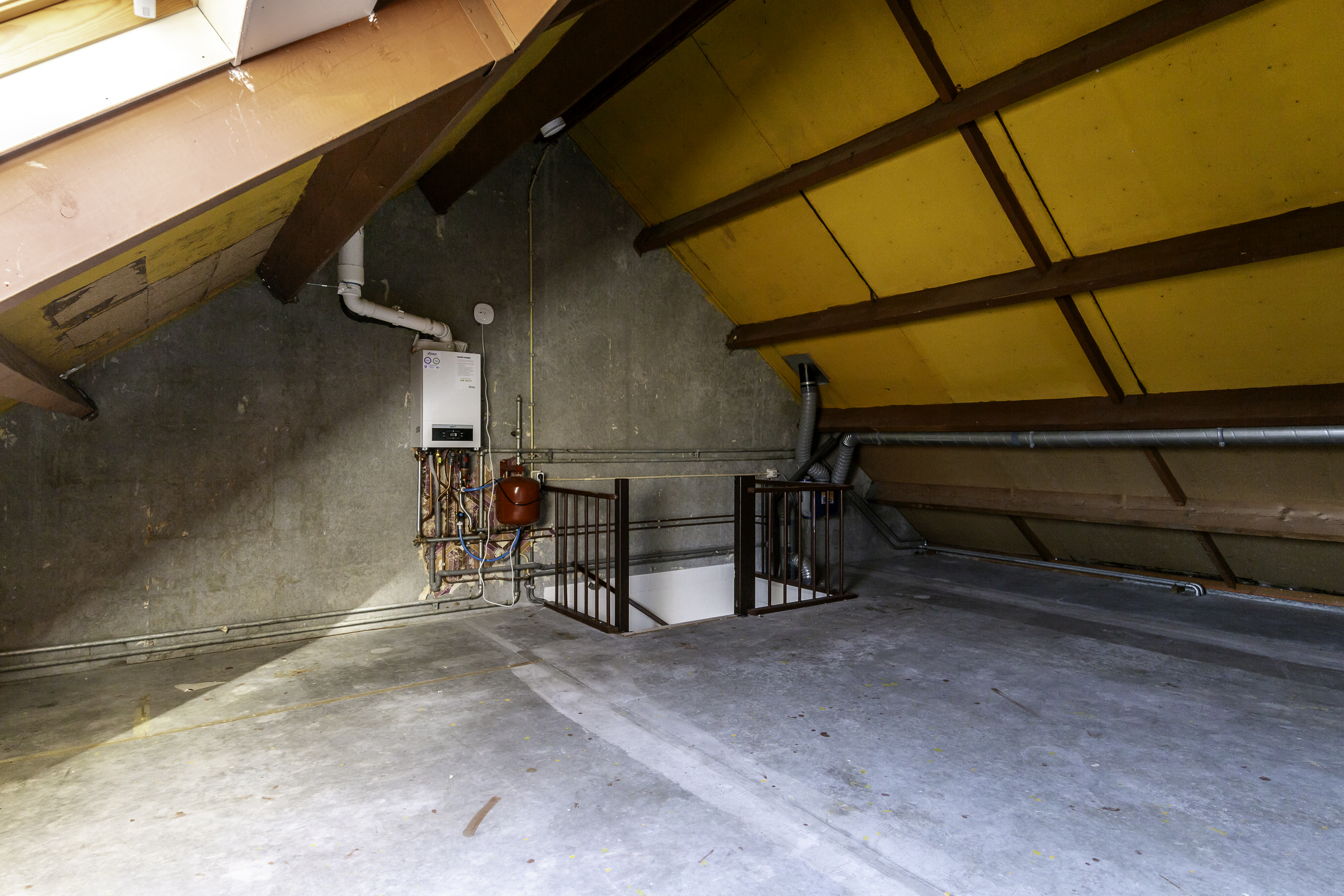 Tweede verdieping: Via een vaste trap bereikt u de open zolder van ruim 25,7m² met een dakraam en de opstelling van de CV-ketel. Deze ruimte is prima te gebruiken als vierde slaapkamer.