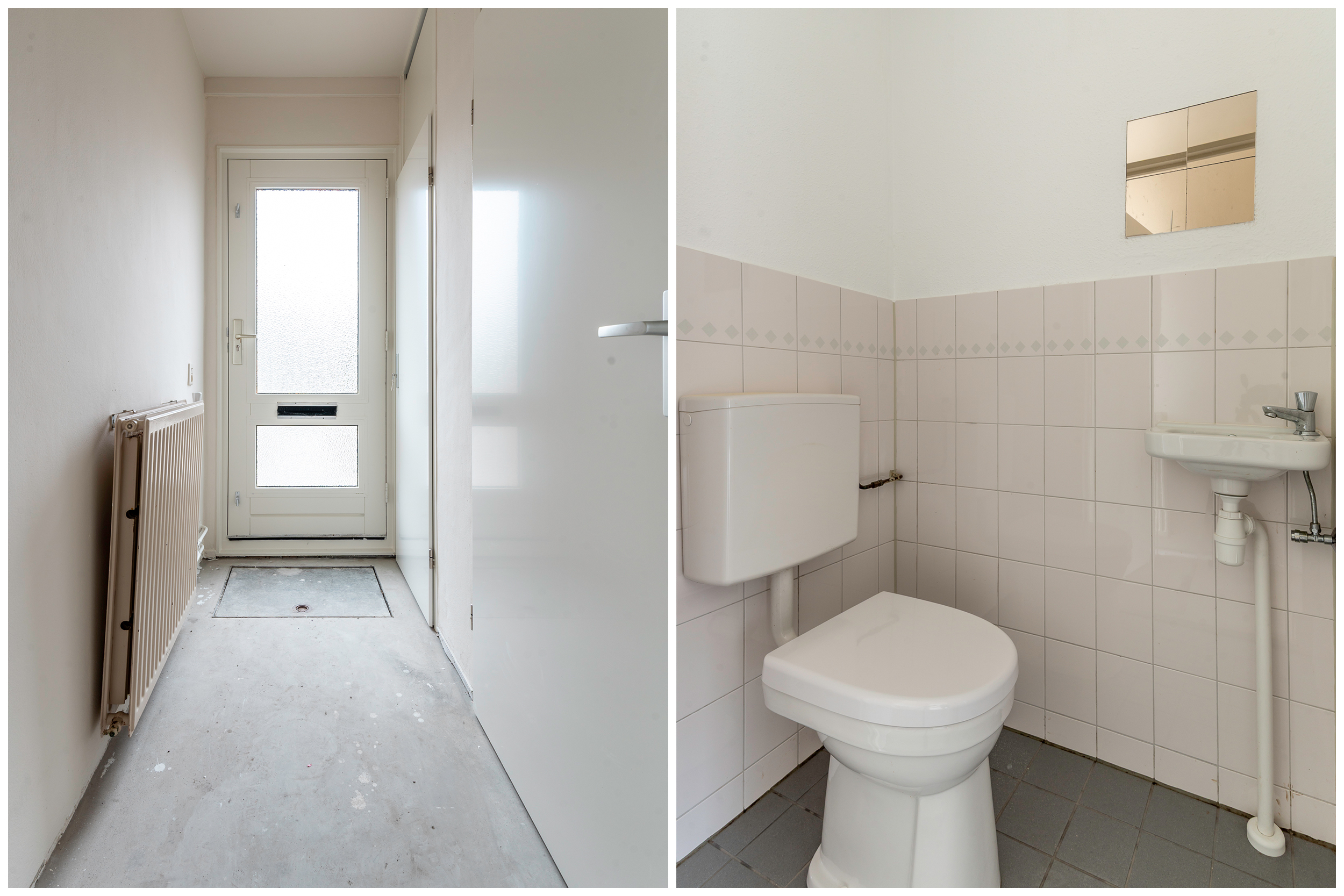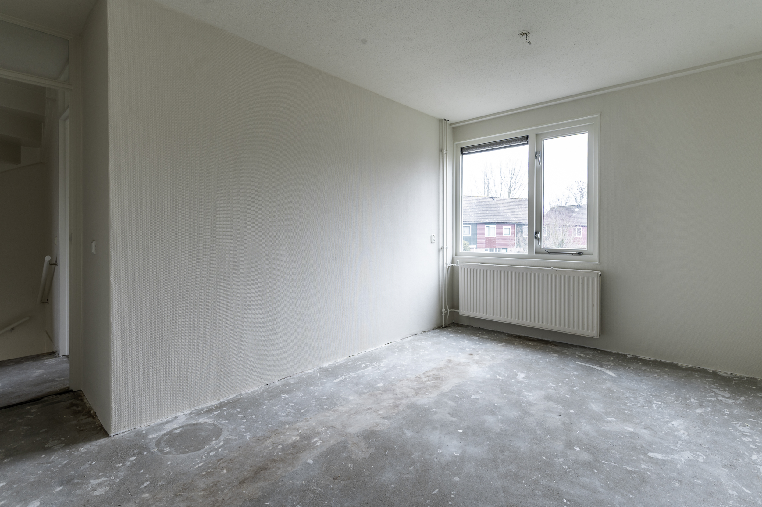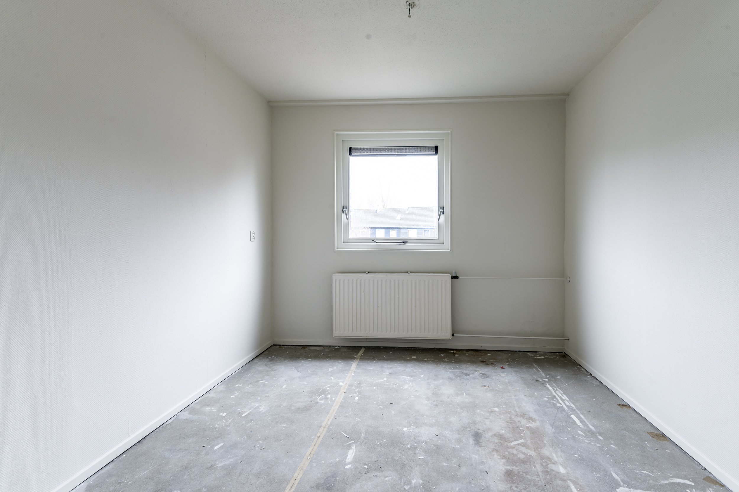 Eerste verdieping: Overloop; drie slaapkamers van respectievelijk 9,4-, 12,3- en 13,2m²; volledig betegelde badkamer welke is voorzien van een wasmachineaansluiting, een douche, tweede toilet, wastafel, een radiator en een raam voor de natuurlijke ventilatie en daglichttoetreding.
