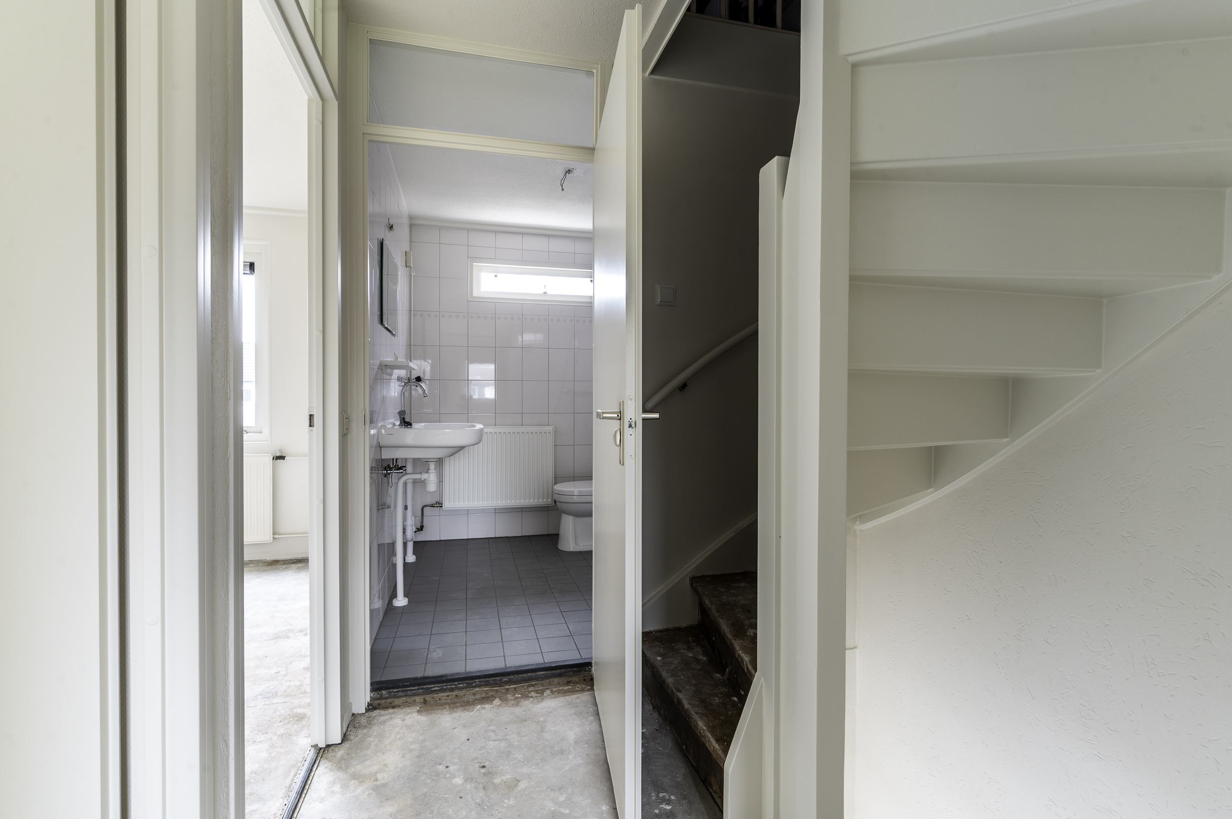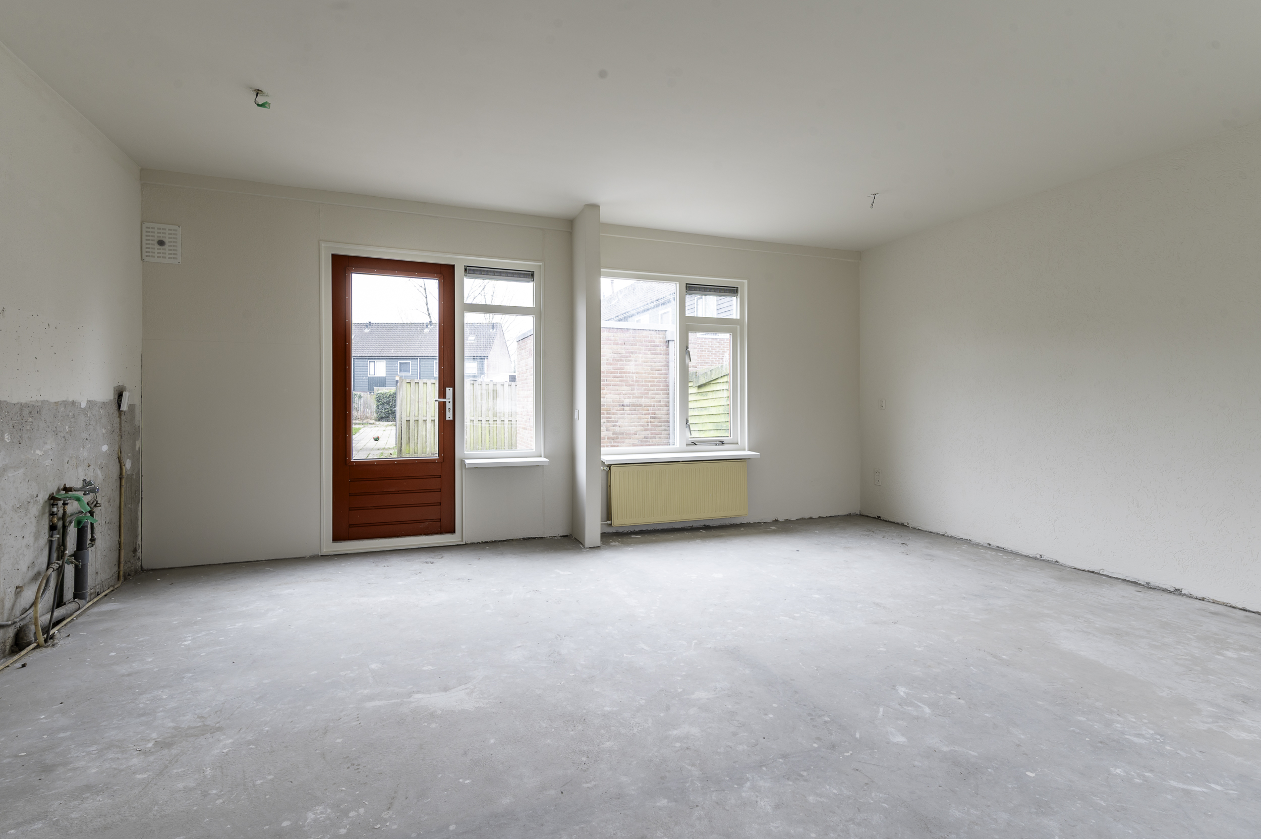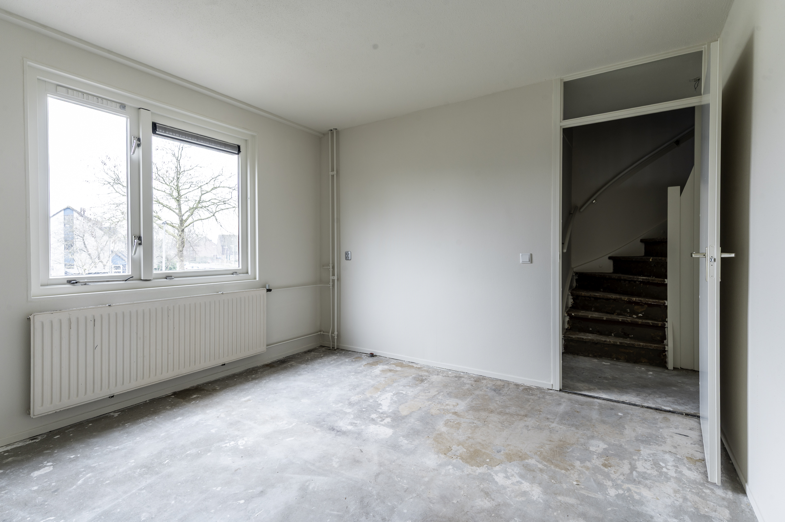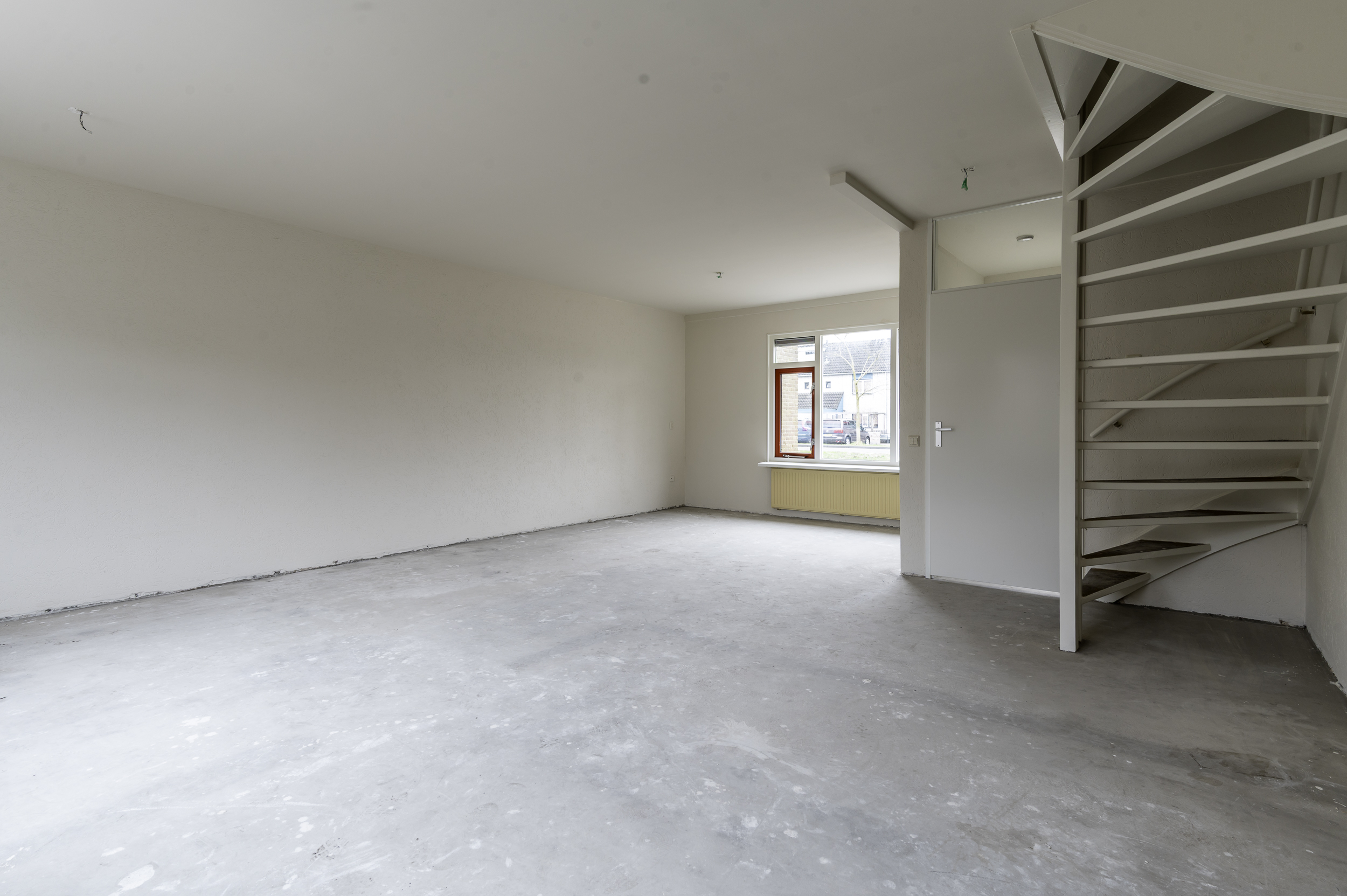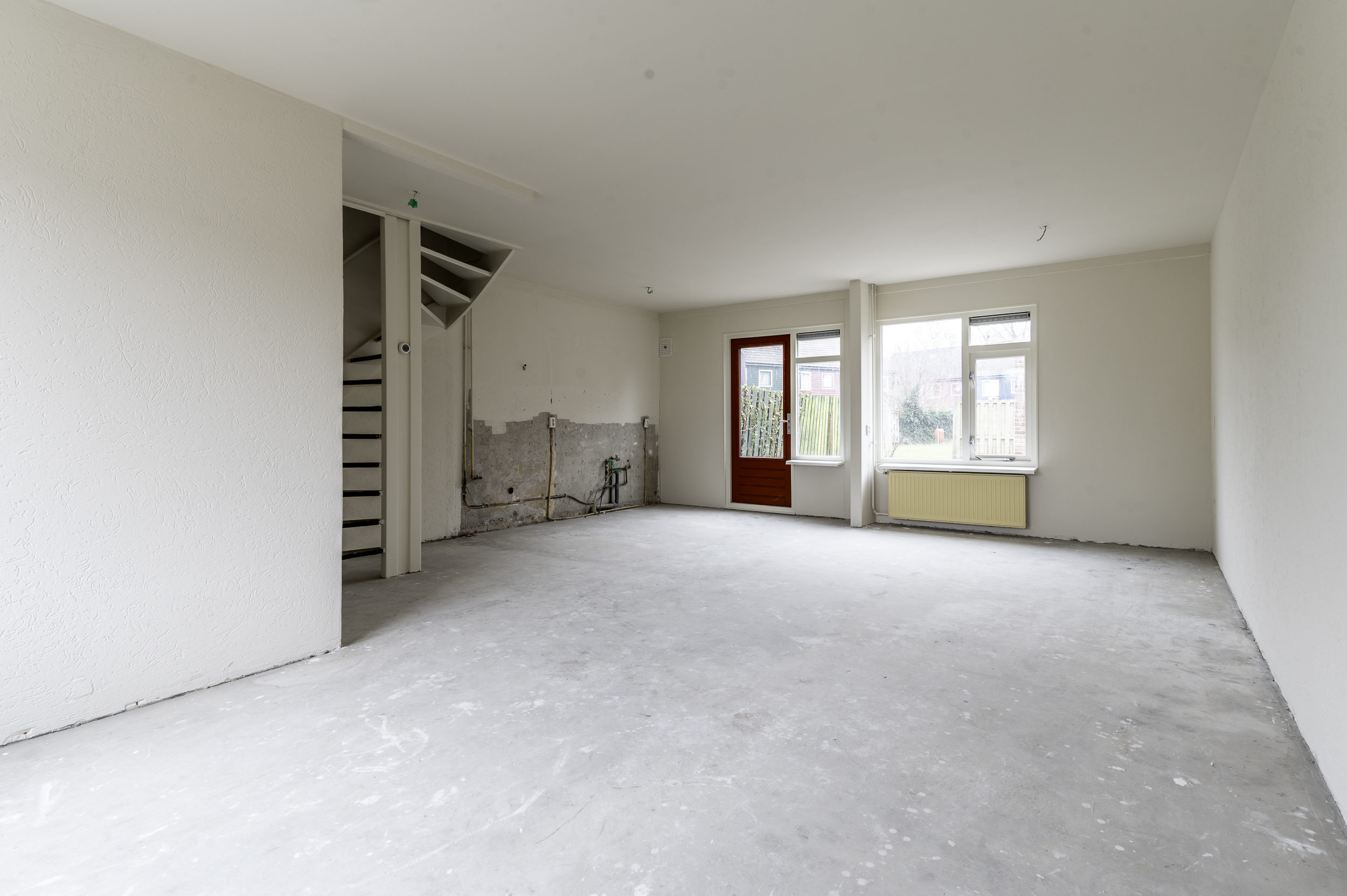 Begane grond: Entree; hal met meterkast, toilet met fonteintje en toegang tot de woonkamer en keuken alsmede de trapopgang naar de verdieping; aan de voorzijde gesitueerde woonkamer van ongeveer 26m²; de woning wordt verkocht zonder keuken, waardoor de koper de mogelijkheid heeft om geheel naar eigen smaak een keuken te plaatsen.