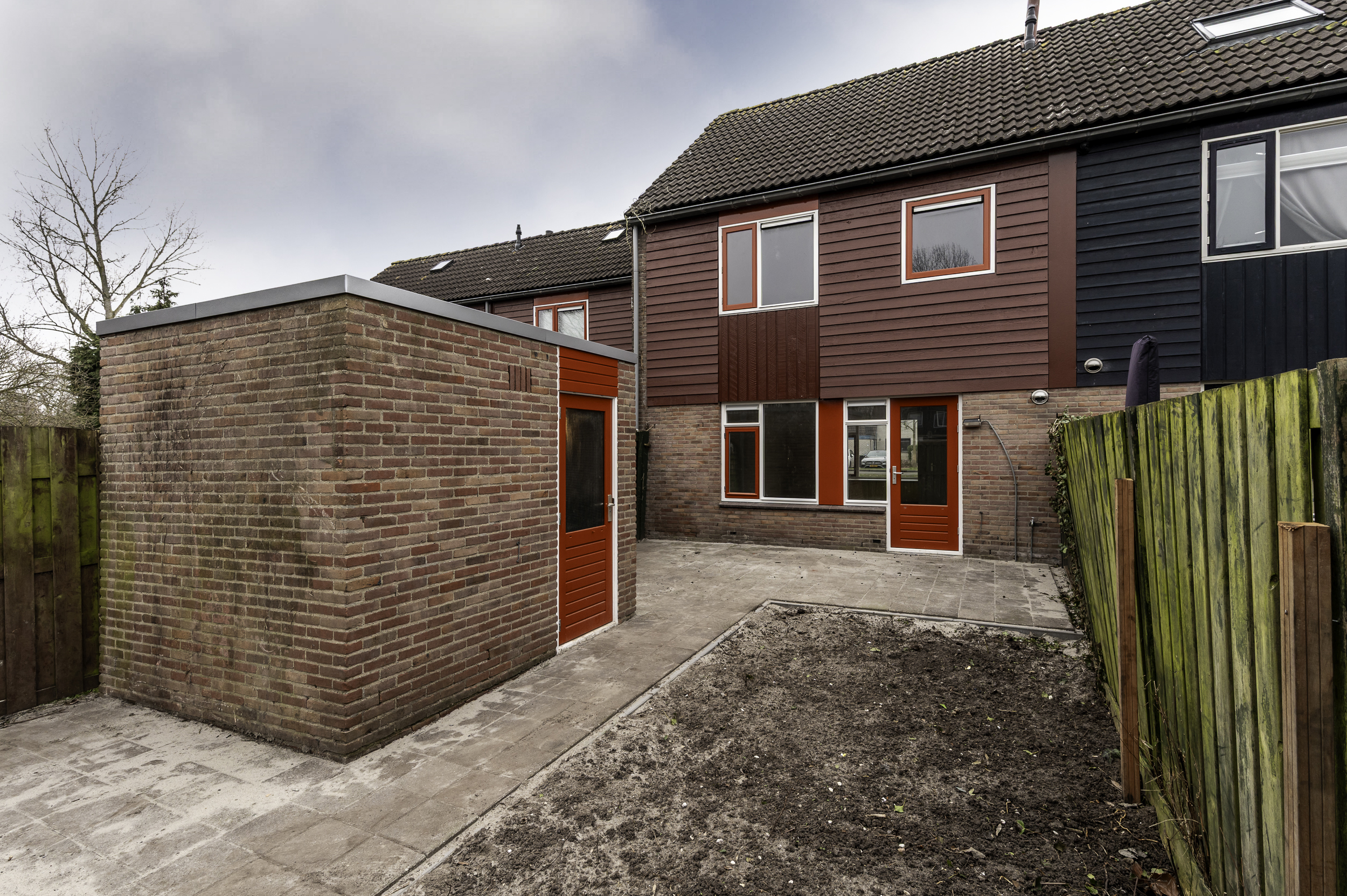 Tuin: Aan de voorzijde is de tuin voorzien van bestrating. Aan de achterzijde is de tuin voorzien van een vrijstaande stenen berging, bestrating en grotendeels een erfafscheiding. De achtertuin meet circa 8,5 meter diep en 6 meter breed en is gelegen op het oosten.