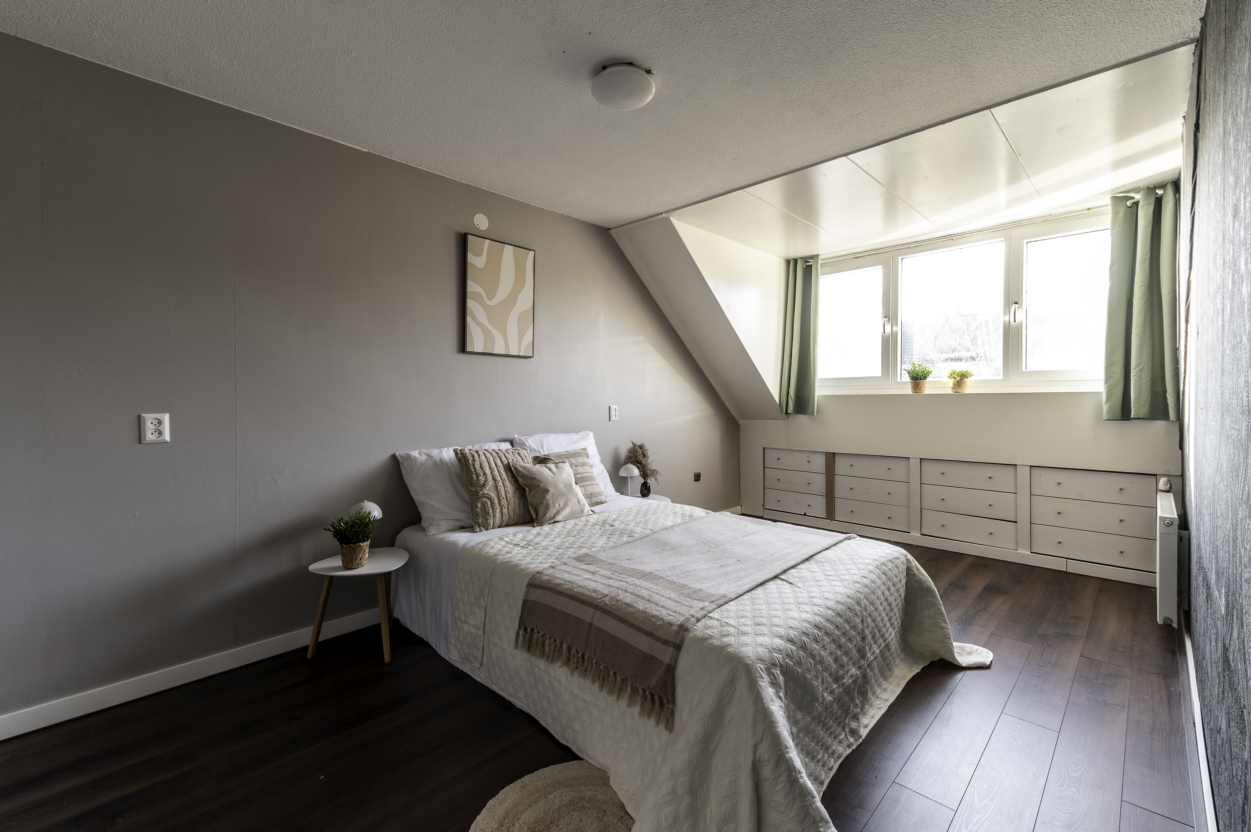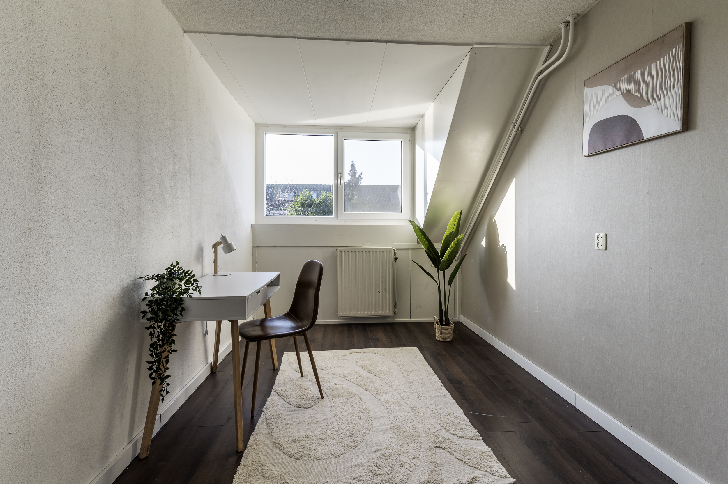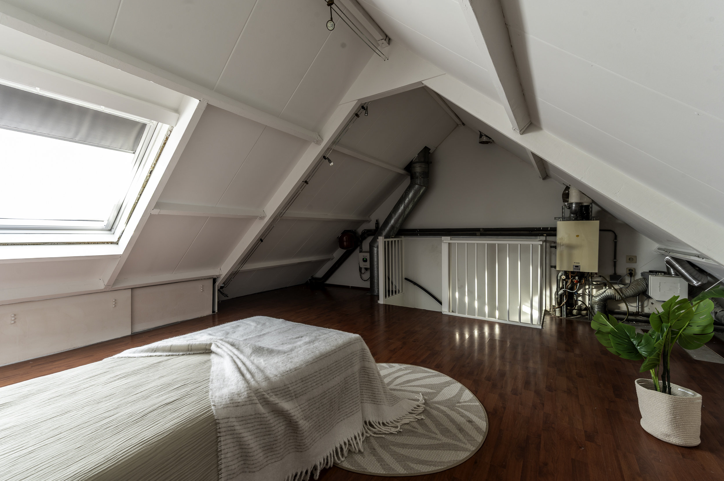 Tweede verdieping: Via vaste trap te bereiken verdieping, welke momenteel is ingericht als vierde slaapkamer. Tevens bevindt zich hier de opstelling van de cv-ketel, de mechanische ventilatie en de omvormer voor de zonnepanelen (2023).