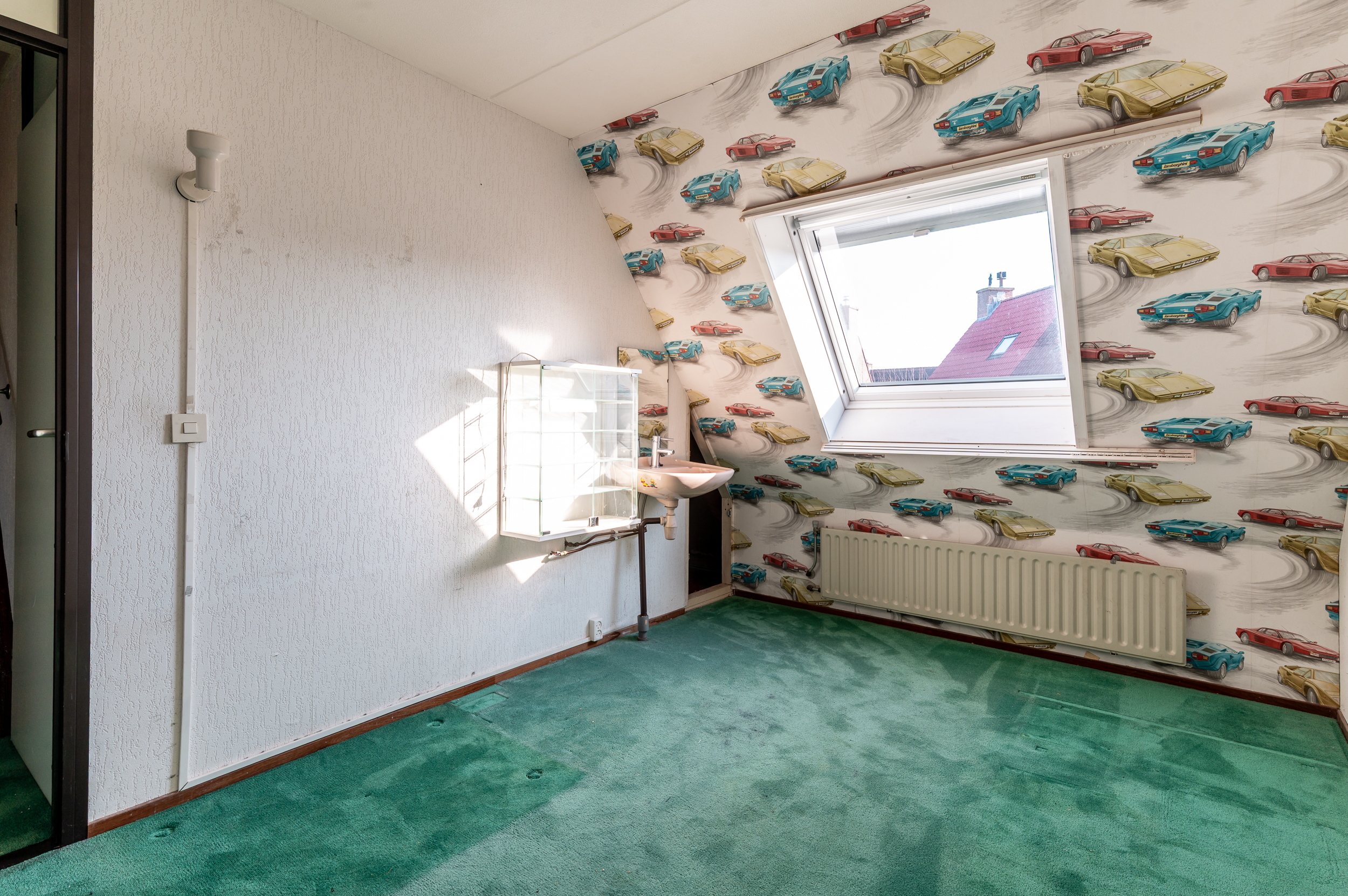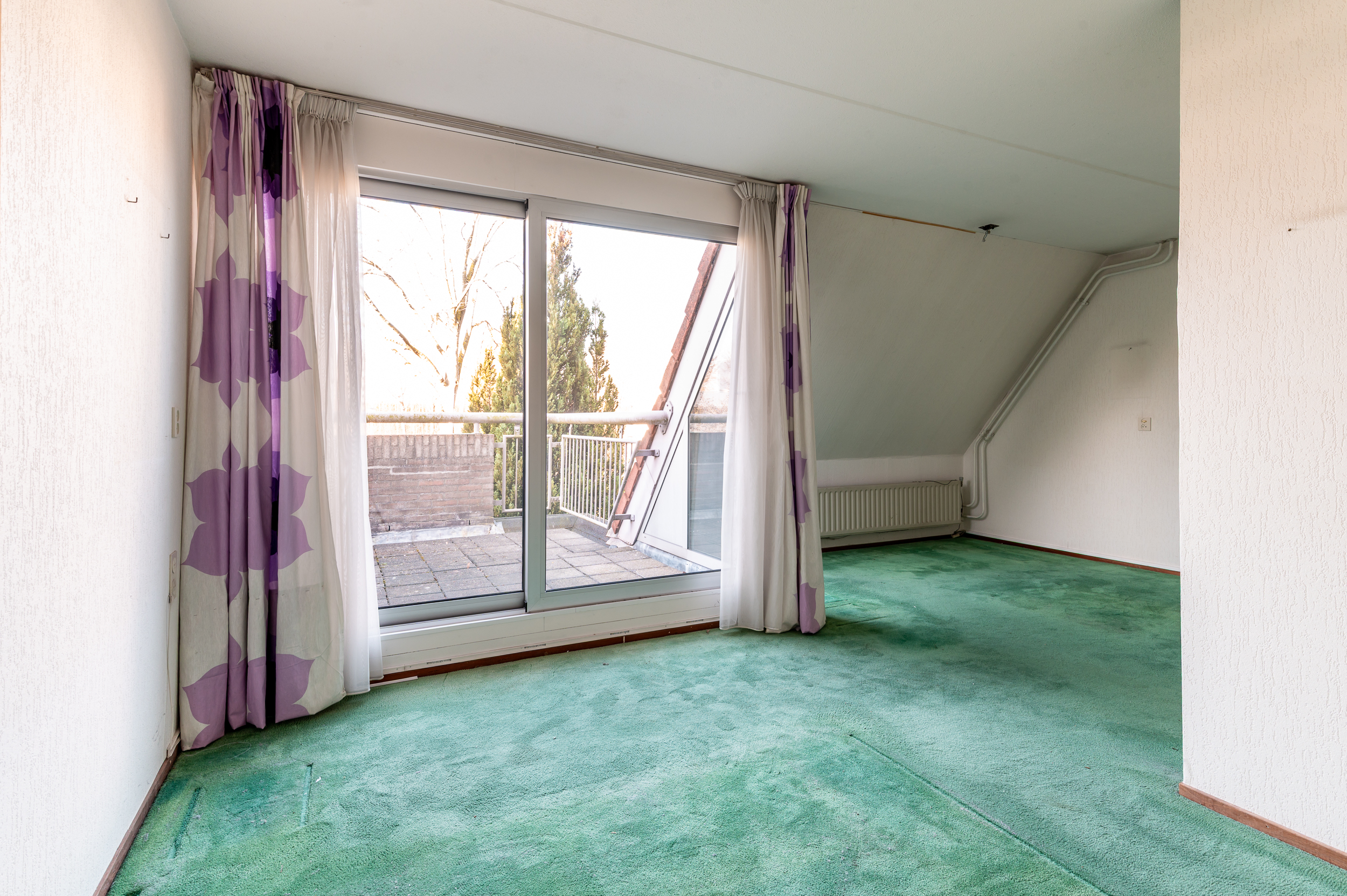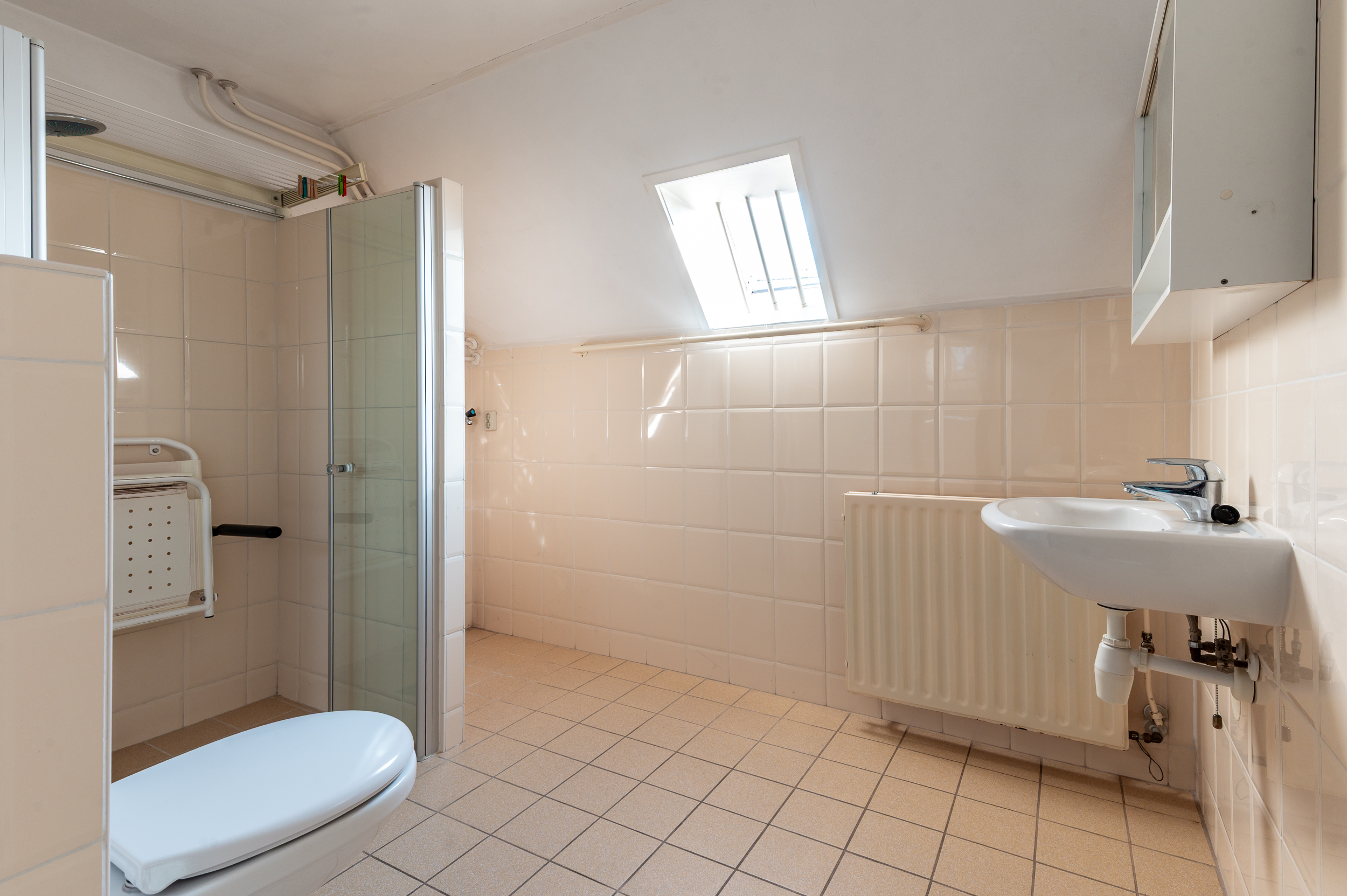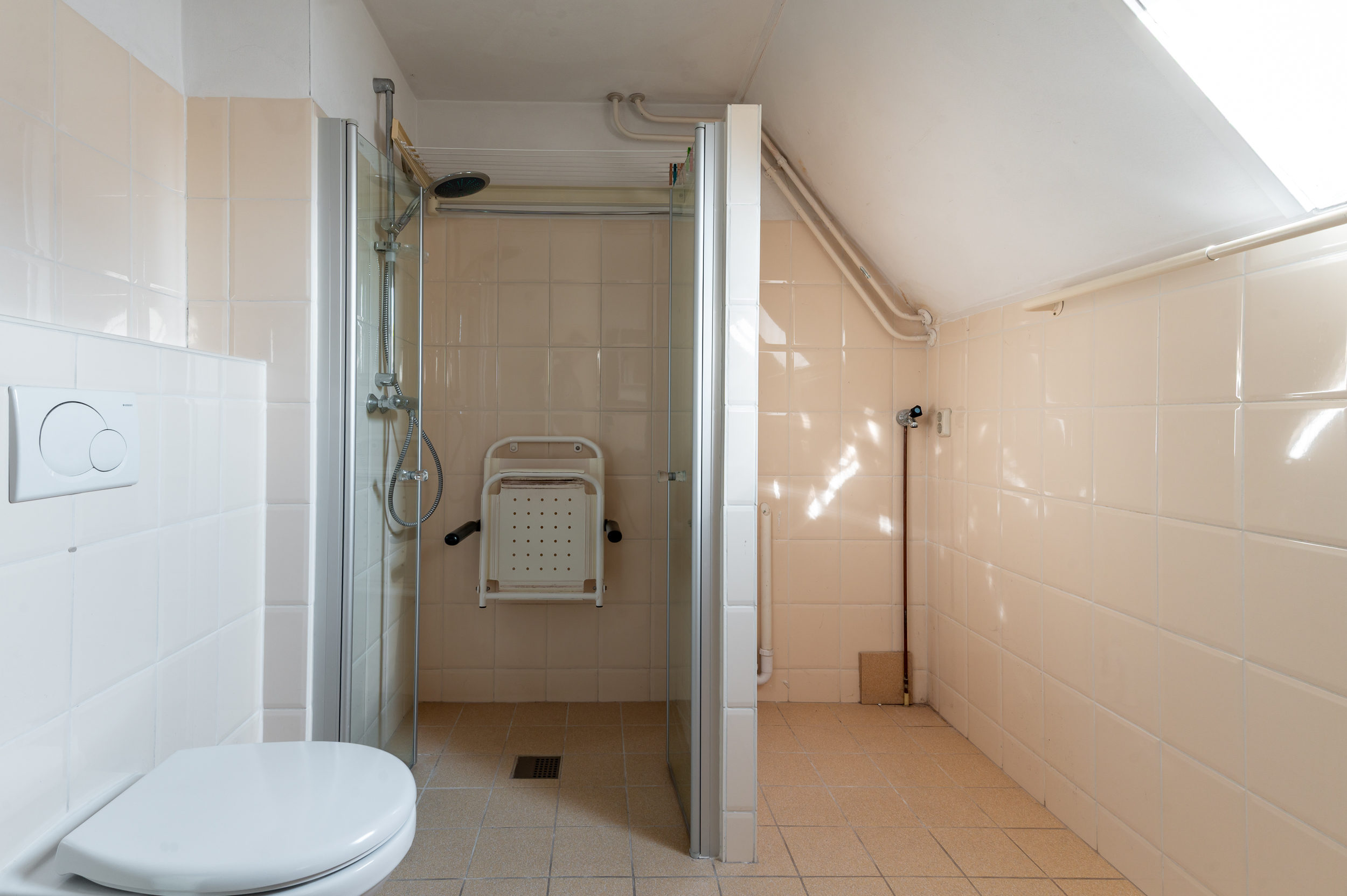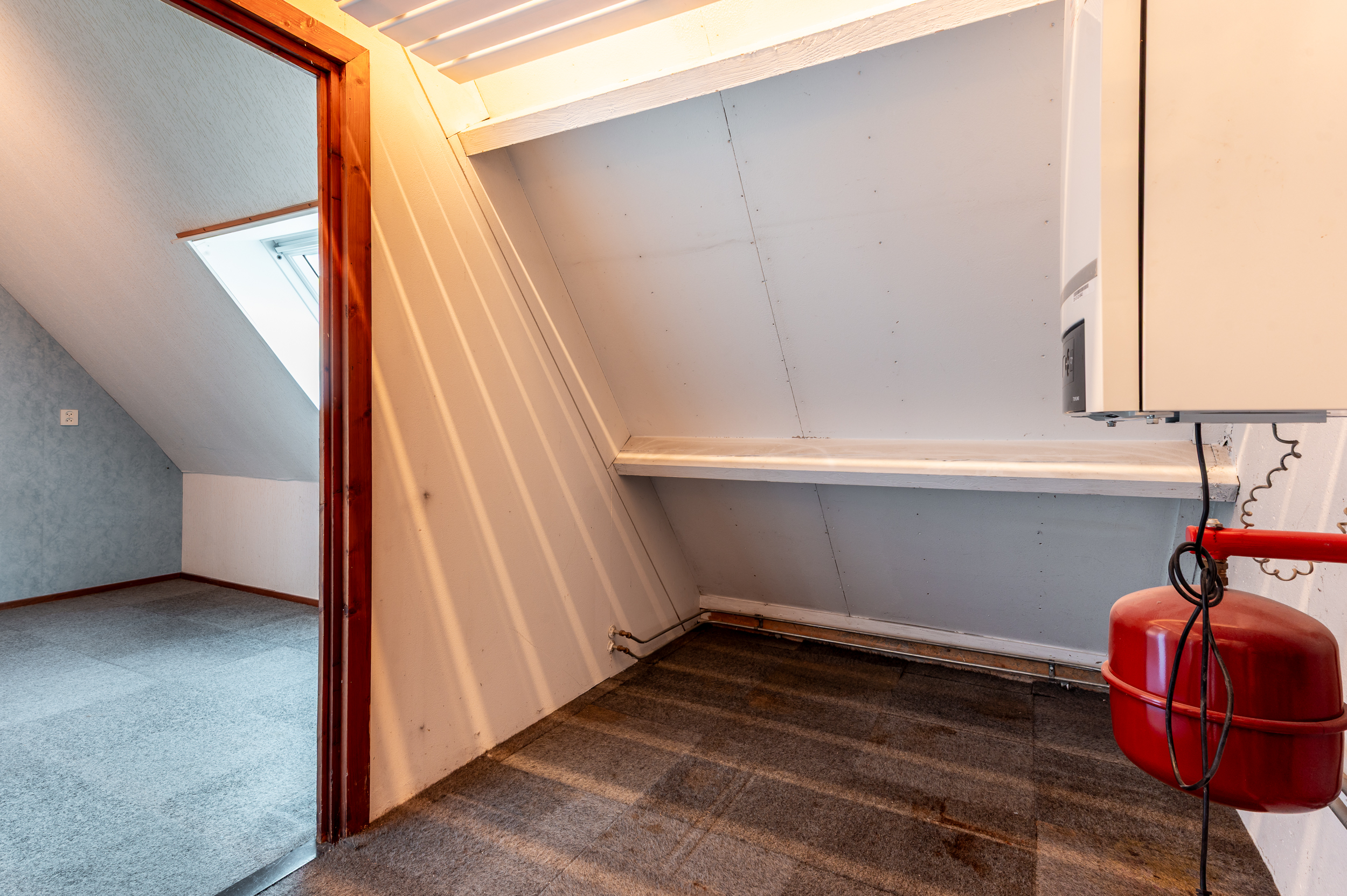 Tweede verdieping: Voorzolder met cv-ketel opstelling (Nefit Topline, hr-combi uit 2007) en bergruimte; derde slaapkamer van 13m² met dakraam.