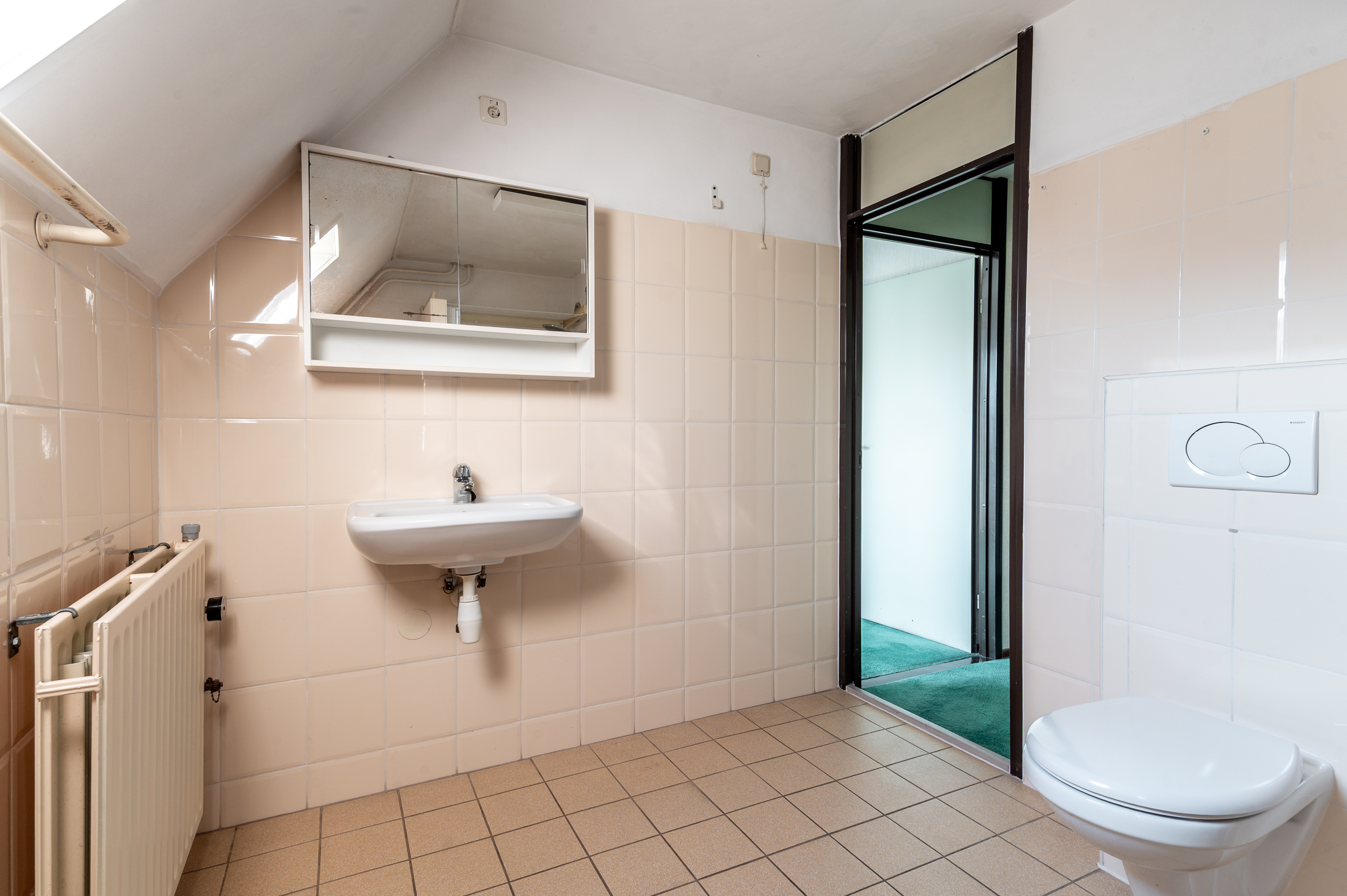 Eerste verdieping: Overloop; twee slaapkamers van een flink formaat (respectievelijk 10,8- en 19,4m²), waarvan de grootste kamer ook nog eens toegang heeft tot een dakterras/ balkon; badkamer voorzien van douche, toilet en wastafel.