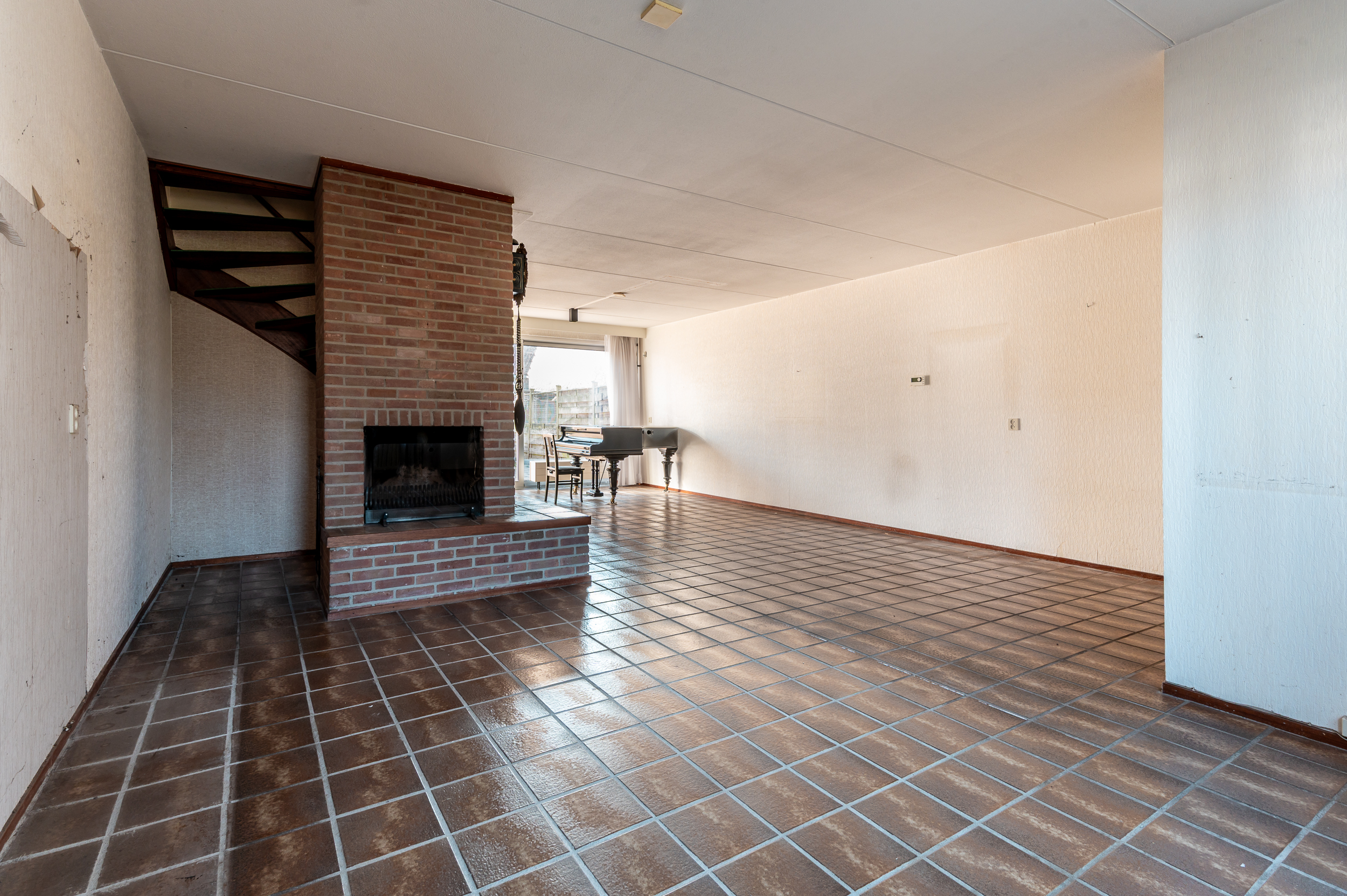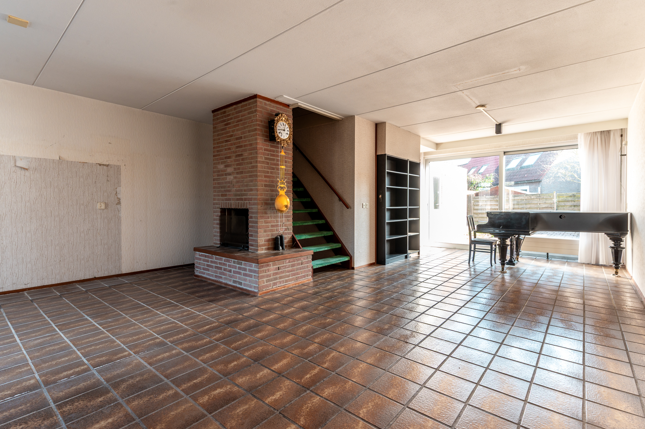 Begane grond: Entree; hal met meterkast en toilet; ruime woonkamer van 38m² met open haard en een prettige lichtinval en voldoende ruimte voor zowel een zit- als eetgedeelte; half-open keuken gesitueerd aan de achterzijde van de woning; de inpandige berging/ bijkeuken is vanuit de keuken bereikbaar, ideaal voor opslag of de witgoedaansluitingen; de tuin is zowel via de woonkamer middels een schuifpui, of een deur in de berging / bijkeuken bereikbaar.